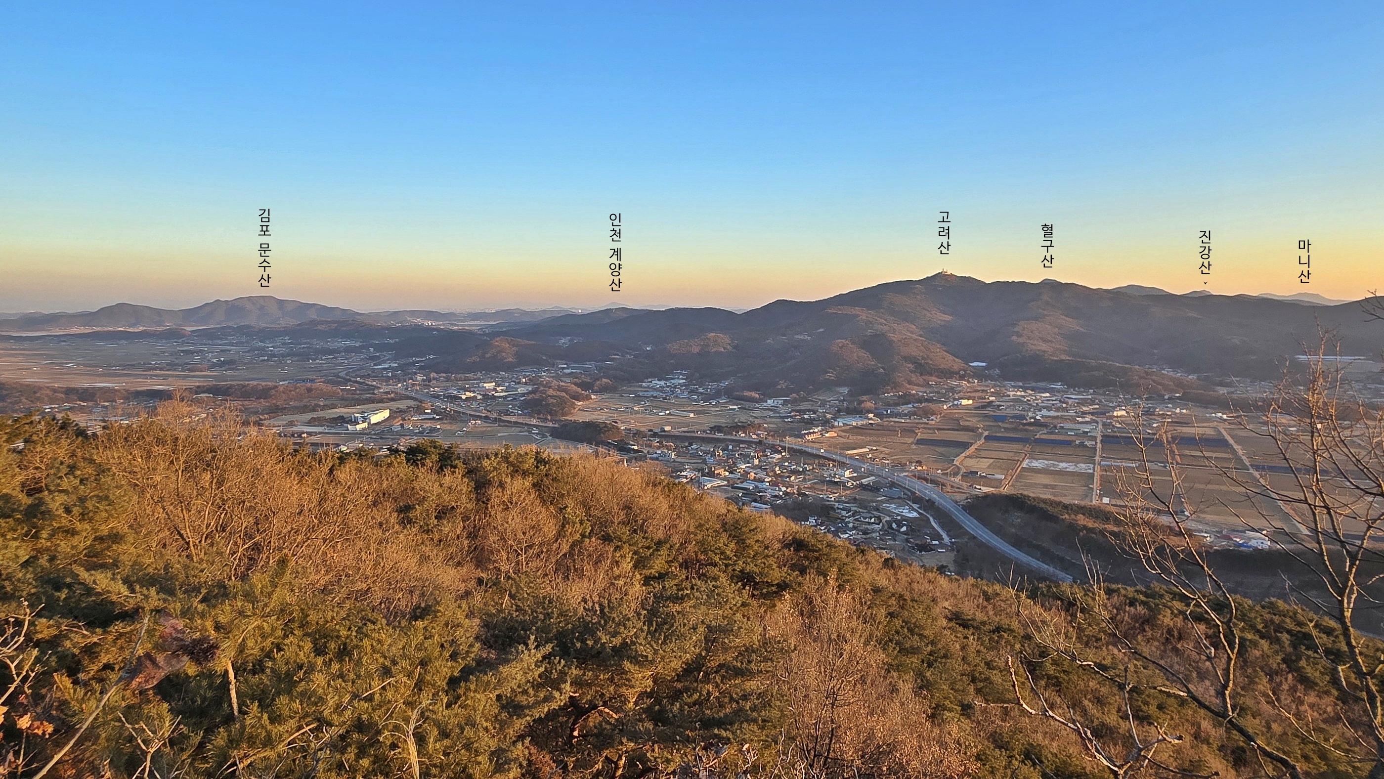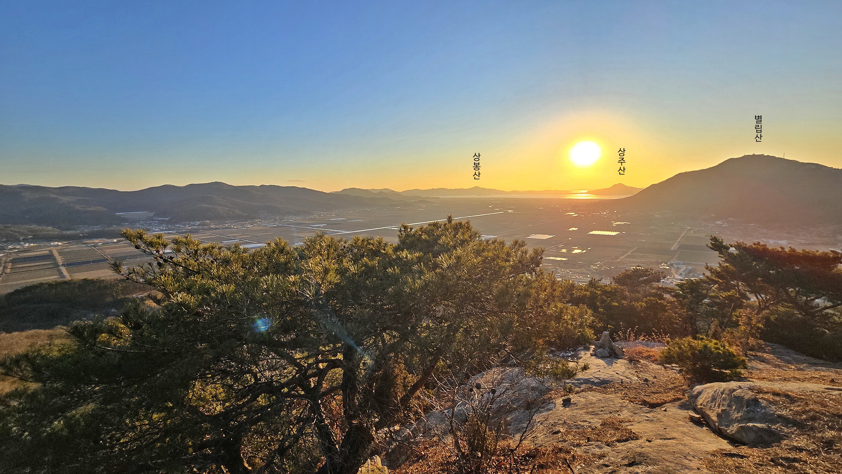 ▼ 일몰 : 좌 상주산, 우 별립산
