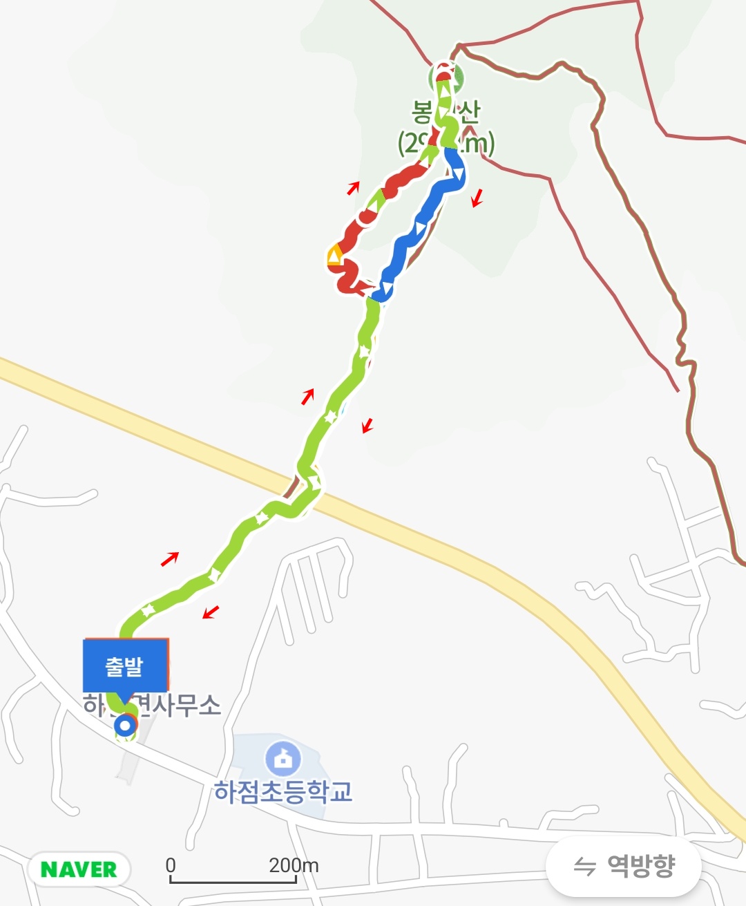 4. 코스 : 하점면사무소~능선코스~ 봉천산~계곡코스~하점면사무소