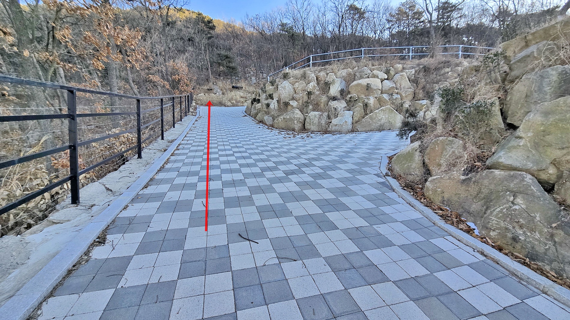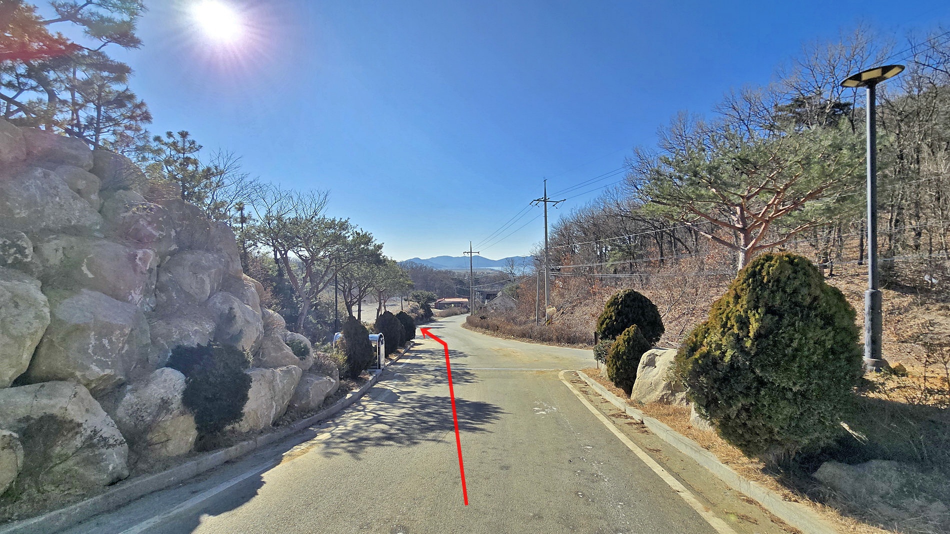 ▼ 신화유스호스텔 정문으로 진입 시 진행하게 되는 길에 합류하여 숲으로