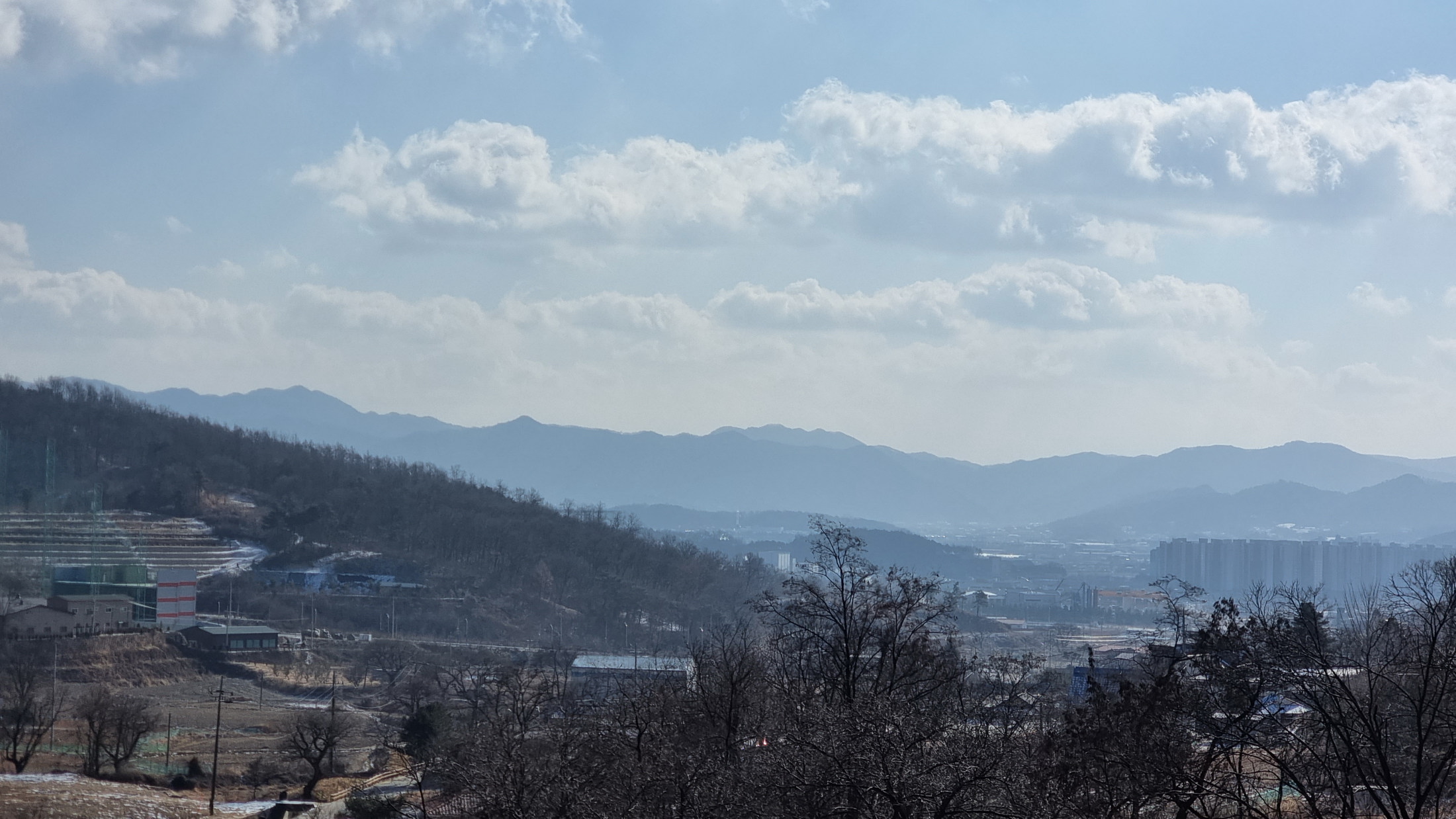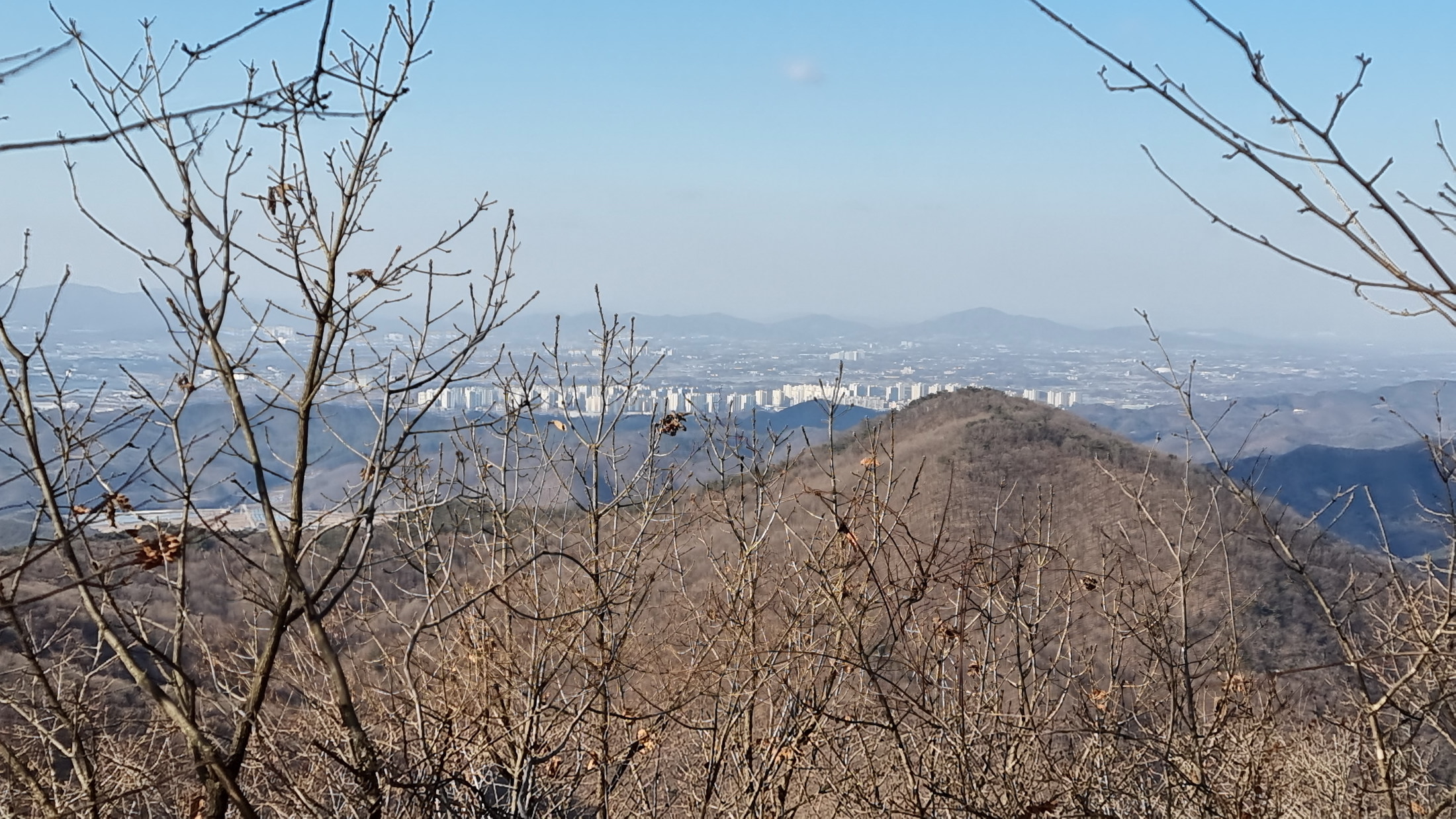 ▼ 나무가지 사이로 충북혁신도시 방면