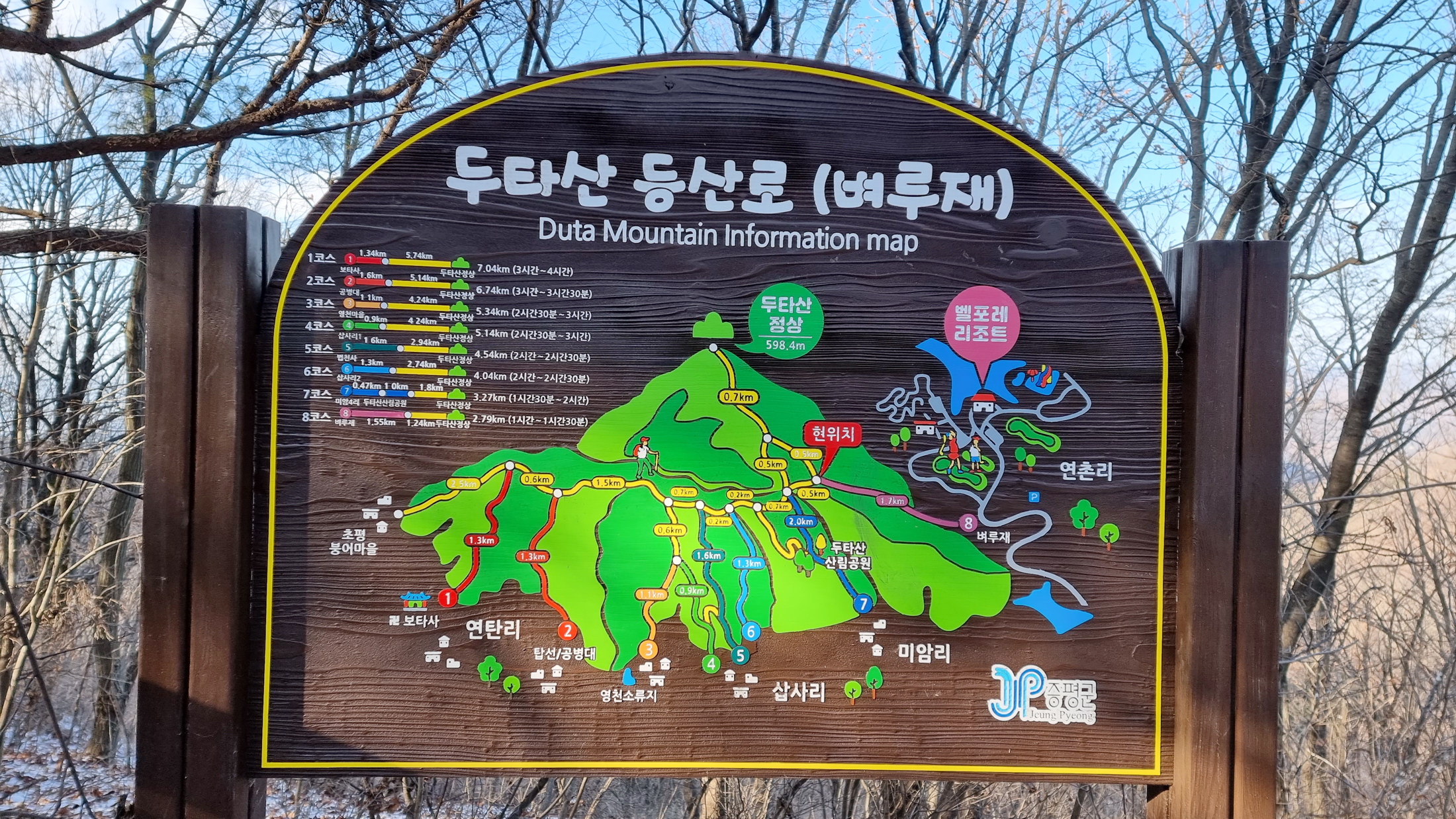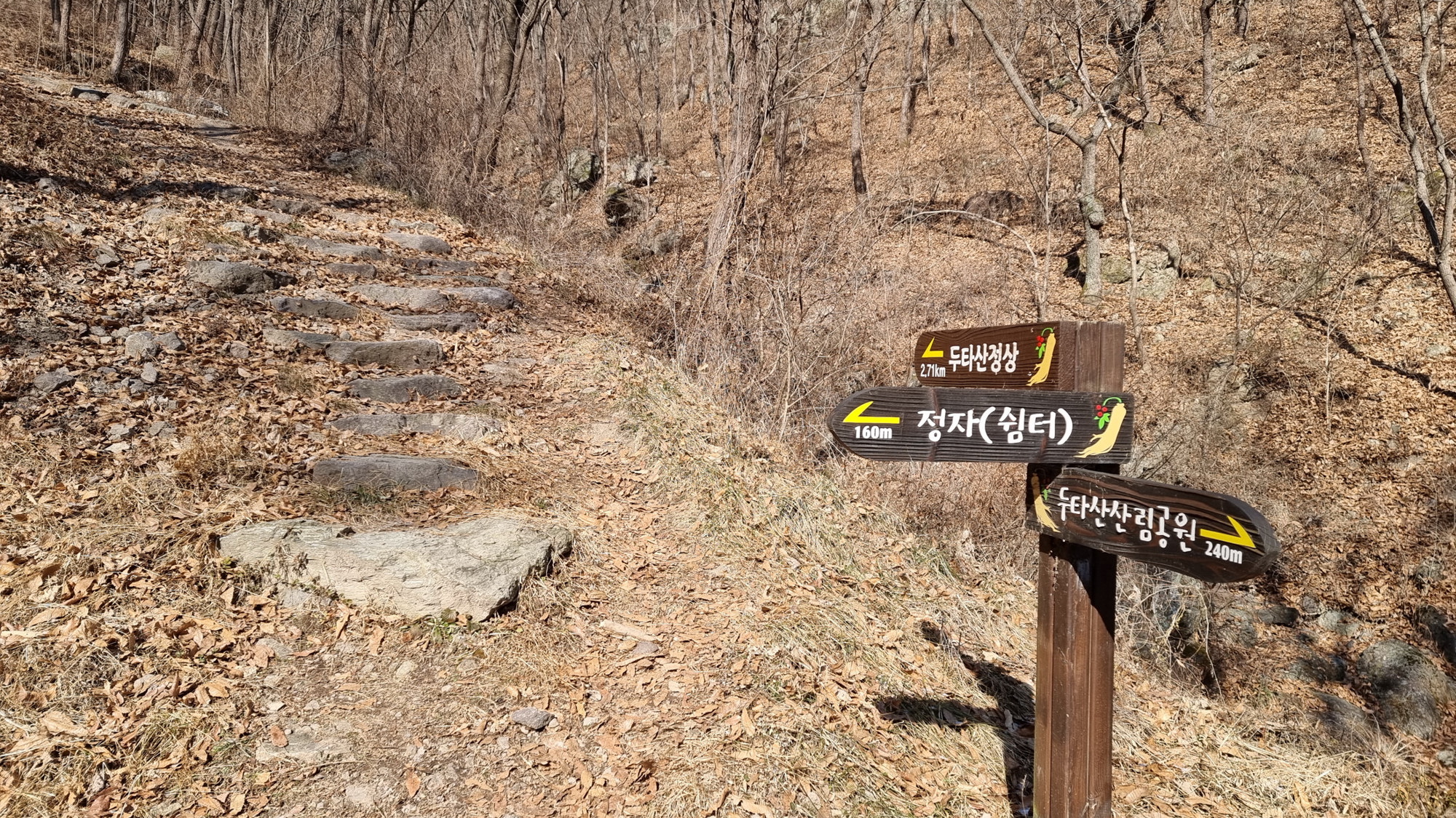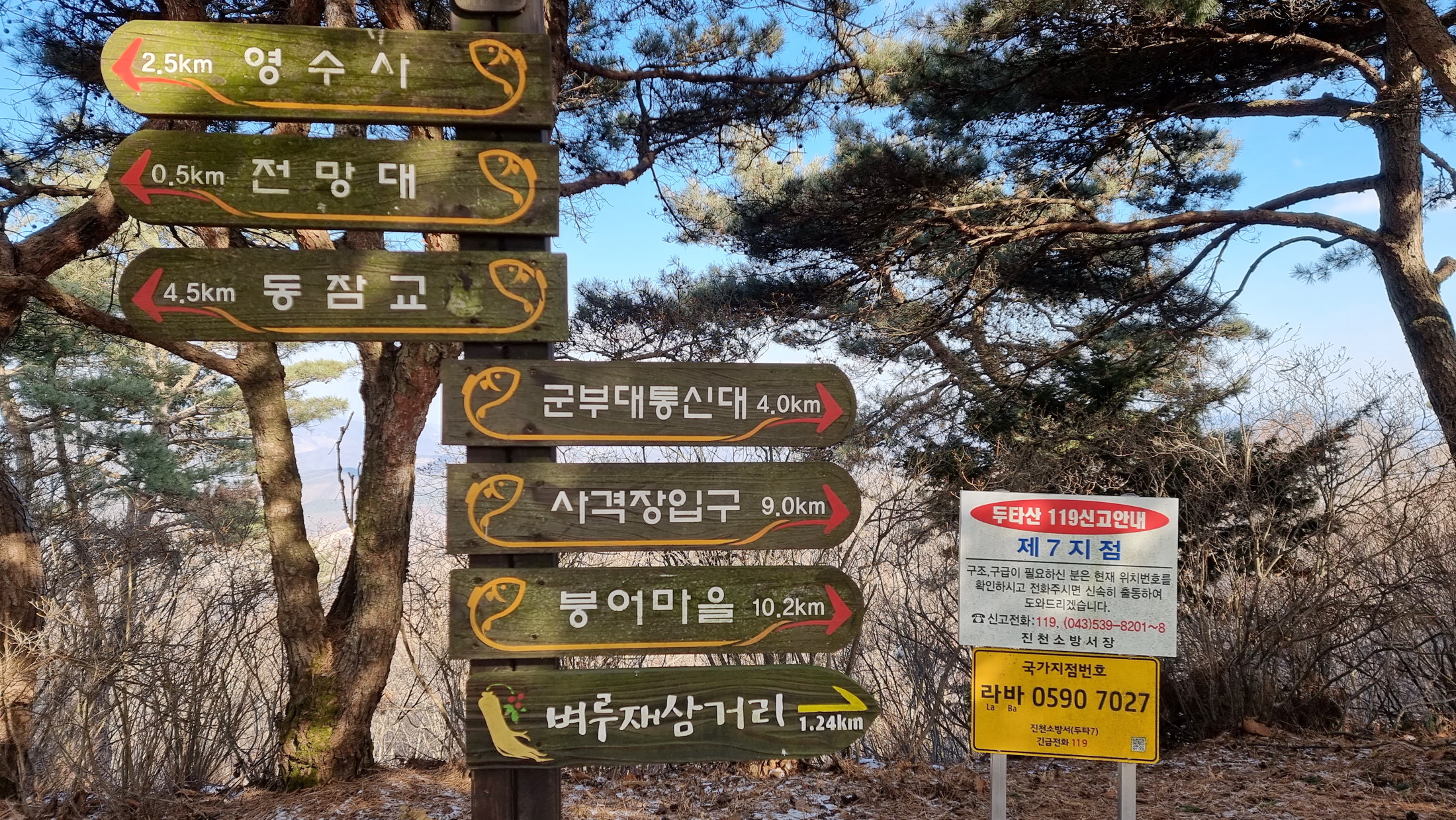 4. 코스 : 미암리 920(팔각, 사각 정자 등)~산림공원~사각정자(쉼터)~미암재~두타산~벼루재삼거리~돌탑삼거리~돌탑봉 왕복~미암재~두타산산림공원~미암리 920(팔각, 사각 정자 등)