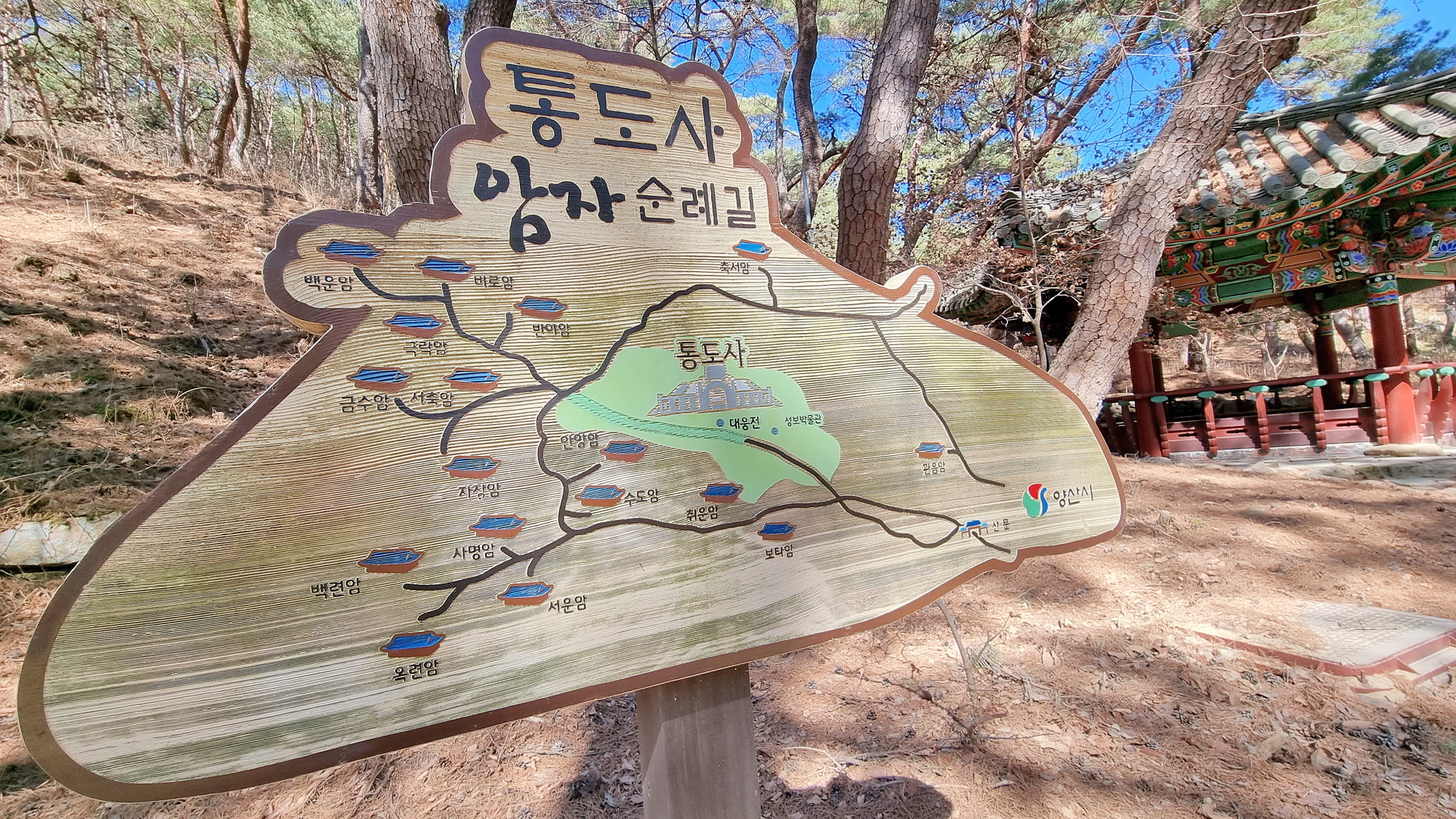 4. 코스 : 통도사산문주차장~영모정~합장바위~봉화봉~늪재봉~서운암~안양암~통도사~매표소~통도사산문주차장