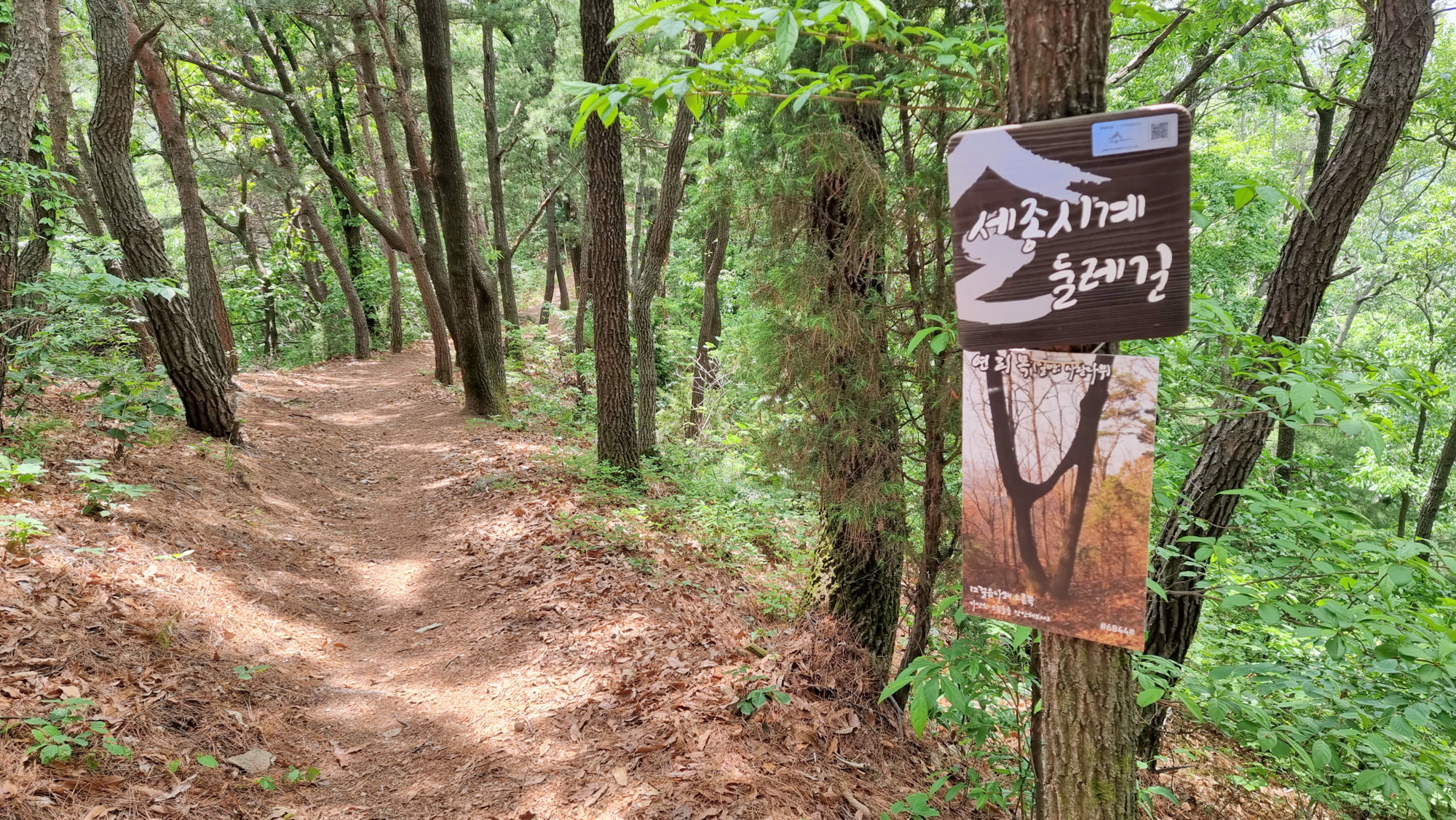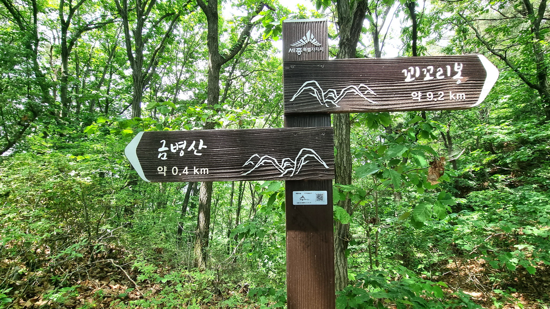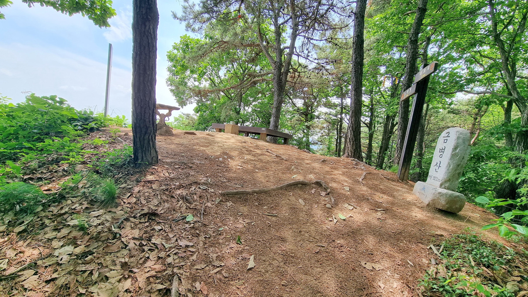 세종특별자치시 금남면과 대전광역시 유성구에 걸쳐있는 해발 372m 높이의 금병산은 창덕봉이라고도 불리는 불리는 노루봉을 비롯해 옥련봉과 도덕봉 등 저마다의 이야기를 품은 12개의 봉우리가 병풍처럼 펼쳐진 산이다. 대전 쪽 산 아래 세워진 유래비에 따르면 금병산은 신라시대에는 금평산, 고려시대에는 만인산이라 불렸다고 한다. 그러다 조선 창업의 뜻을 품고 팔도 명산을 찾아 기도를 하던 태조 이성계가 ‘비단 병풍을 갖추고 치성하라’는 현몽을 꾼 뒤 이곳을 ‘비단 병풍’을 뜻하는 금병산이라 이름 붙이고 산천 기도를 했다고 전해진다. 이번 코스는 비학산에서 금병산까지 약 9㎞에 걸쳐 조성된 ‘비학산~금병산 누리길’ 가운데 지난 4월에 소개하지 못한 구간이다. 국토교통부 환경문화 공모사업을 통해 조성된 길은 곳곳에 계단과 야자매트, 전망대와 정자가 설치되어 있어 쾌적하게 걸을 수 있다.