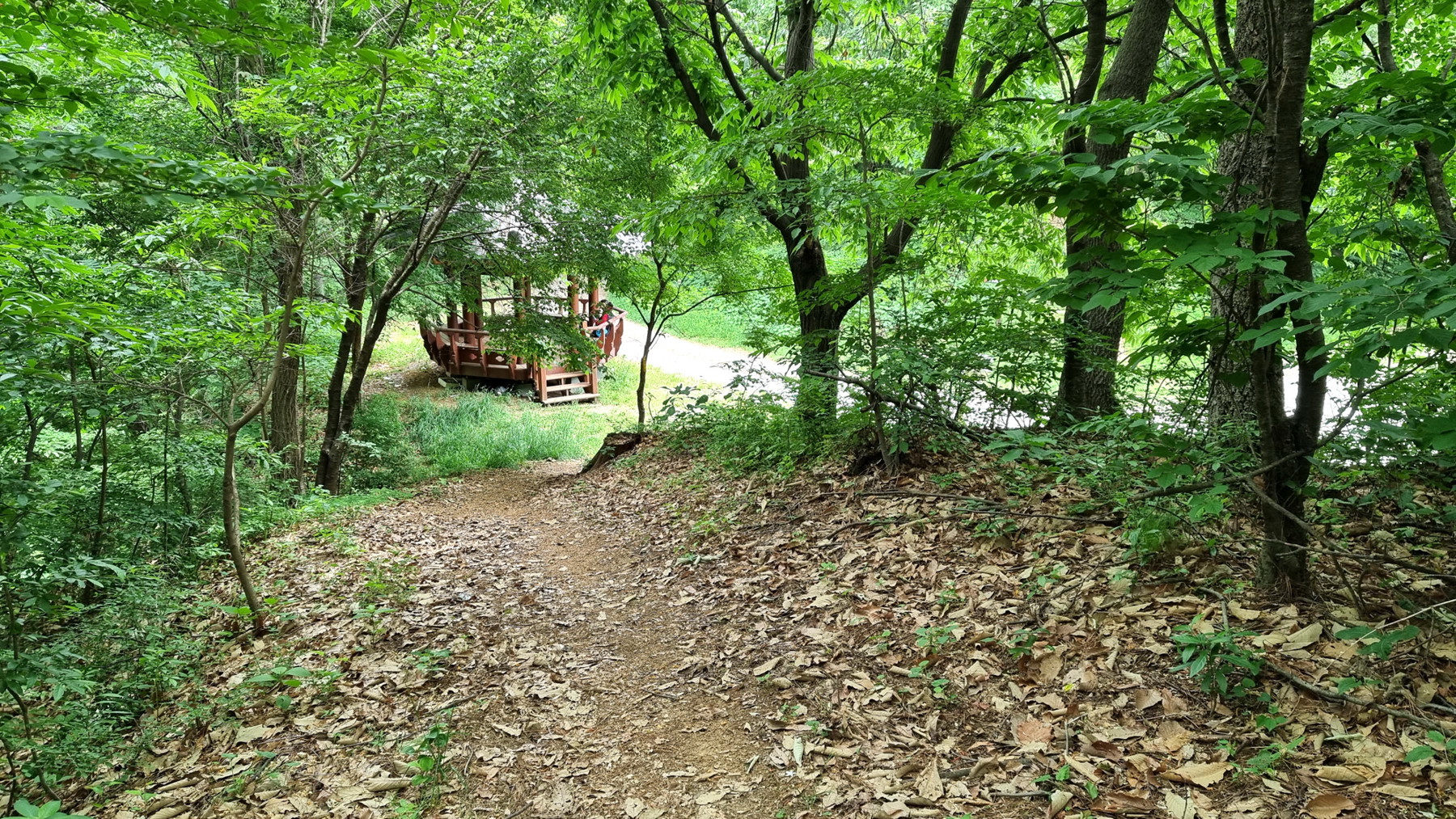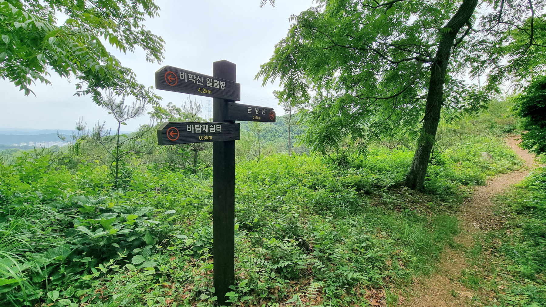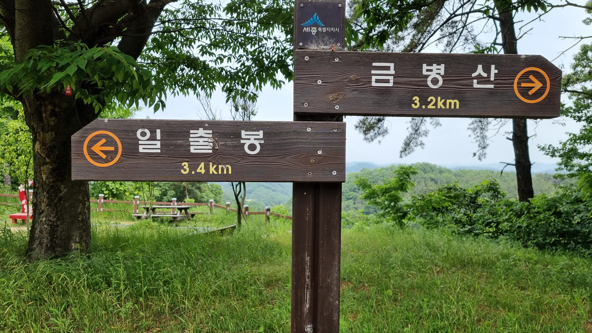 세종특별자치시 금남면과 대전광역시 유성구에 걸쳐있는 해발 372m 높이의 금병산은 창덕봉이라고도 불리는 불리는 노루봉을 비롯해 옥련봉과 도덕봉 등 저마다의 이야기를 품은 12개의 봉우리가 병풍처럼 펼쳐진 산이다. 대전 쪽 산 아래 세워진 유래비에 따르면 금병산은 신라시대에는 금평산, 고려시대에는 만인산이라 불렸다고 한다. 그러다 조선 창업의 뜻을 품고 팔도 명산을 찾아 기도를 하던 태조 이성계가 ‘비단 병풍을 갖추고 치성하라’는 현몽을 꾼 뒤 이곳을 ‘비단 병풍’을 뜻하는 금병산이라 이름 붙이고 산천 기도를 했다고 전해진다. 이번 코스는 비학산에서 금병산까지 약 9㎞에 걸쳐 조성된 ‘비학산~금병산 누리길’ 가운데 지난 4월에 소개하지 못한 구간이다. 국토교통부 환경문화 공모사업을 통해 조성된 길은 곳곳에 계단과 야자매트, 전망대와 정자가 설치되어 있어 쾌적하게 걸을 수 있다.