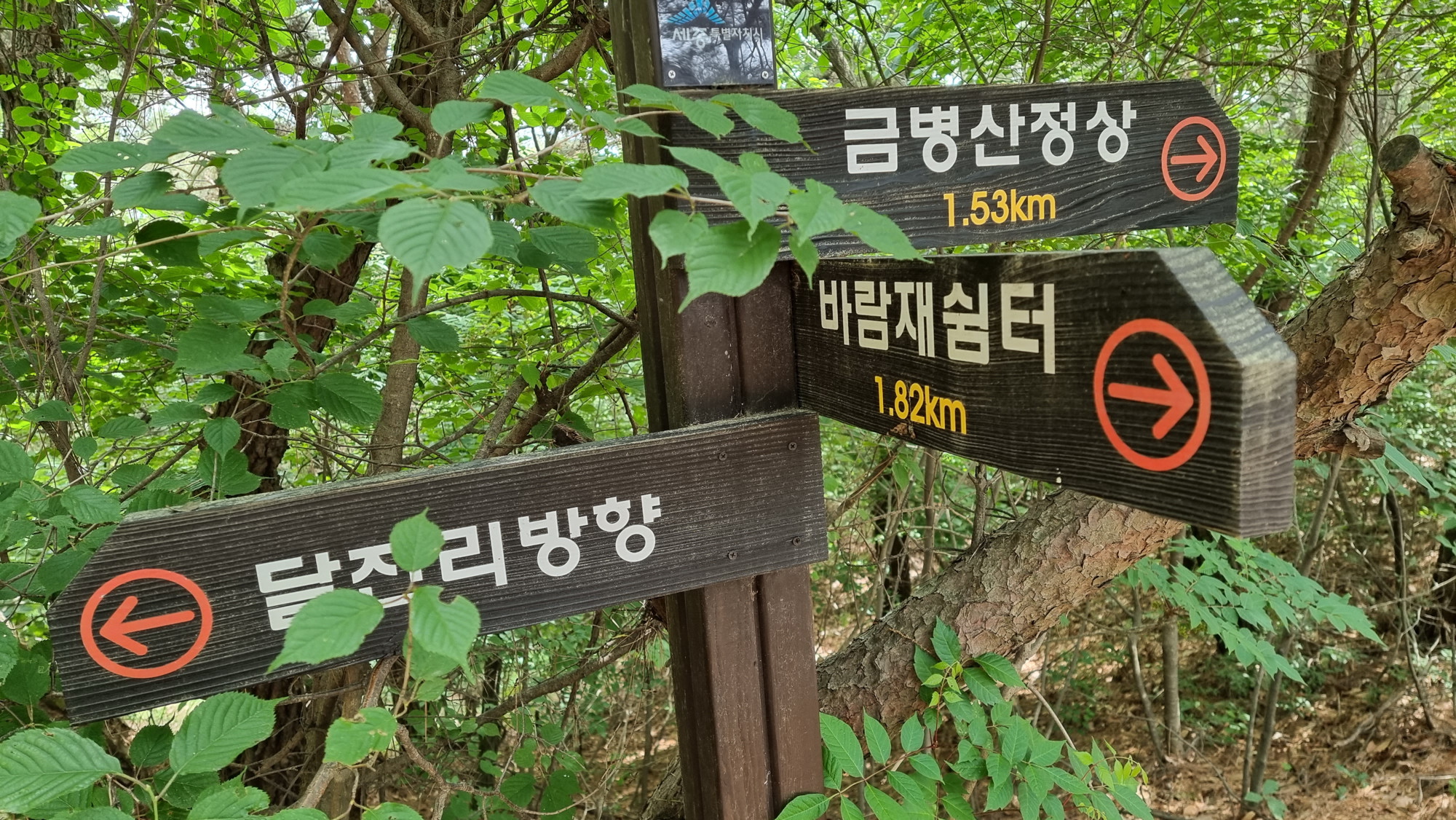 길을 따라 걷다보면 갑자기 시야가 트이는 곳에 쉼터가 있다. 이곳에 서면 부강면과 멀리 청주시의 풍경이 발아래 펼쳐진다. 금병산 누리길은 숲이 깊어 주변의 탁 트인 풍경을 즐길 수 있는 곳이 적은 편이다. 정상이 멀지 않으니 잠시 숨을 돌리며 풍경을 즐겨보자. 쉼터를 뒤로 하고 조금 더 걸으면 갈림길이 나온다. 오른쪽은 금병산을 오르는 길이고, 왼쪽은 영대리와 달전리로 내려가는 길이다. 갈림길을 뒤로 하고 조금 더 길을 재촉하면 금병산 제5봉인 옥당봉이 금방이다. 이곳에서 금병산 누리길은 대전둘레산길과 합류한다. 능선을 따라 난 길 좌우로는 경사가 있지만 이곳에서 정작 등산로는 걷기 어렵지 않다. 6봉인 연화봉을 지나 7봉인 운수봉에 오르면 정상 표지석과 발아래 탁 트인 풍경이 반겨준다. 등산로를 따라 정상까지 올라왔다면 돌아가는 길에는 바람재쉼터까지 이어지는 임도를 이용해 여유있게 걷는 것도 좋다.(펌 : 세종특별자치시 홈페이지)