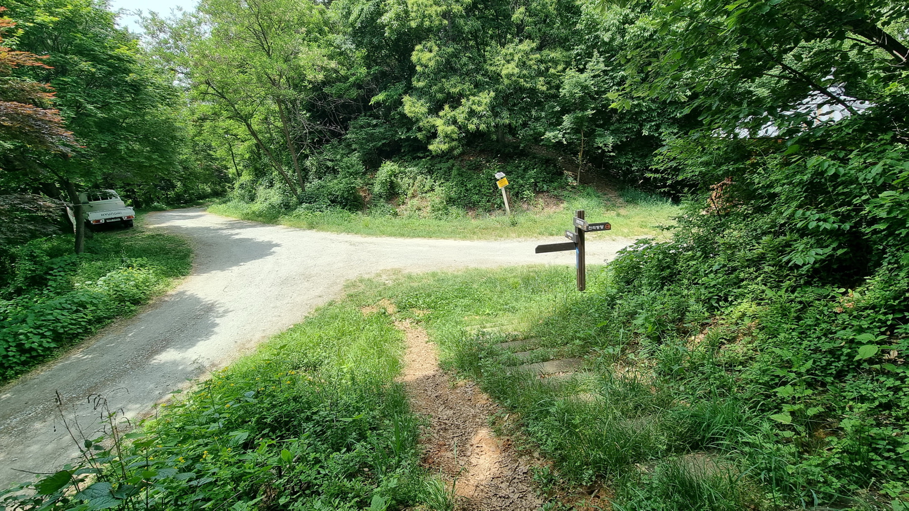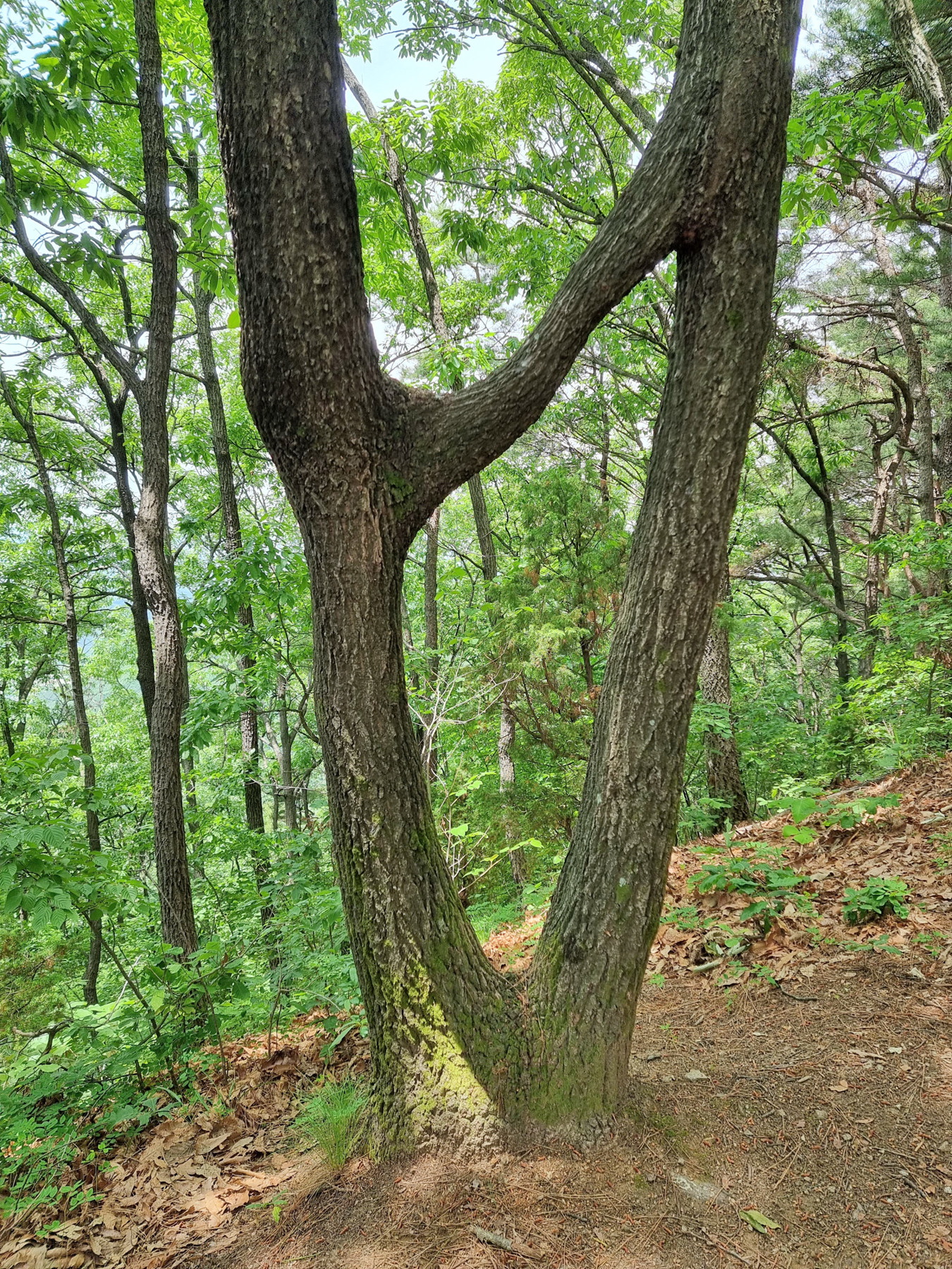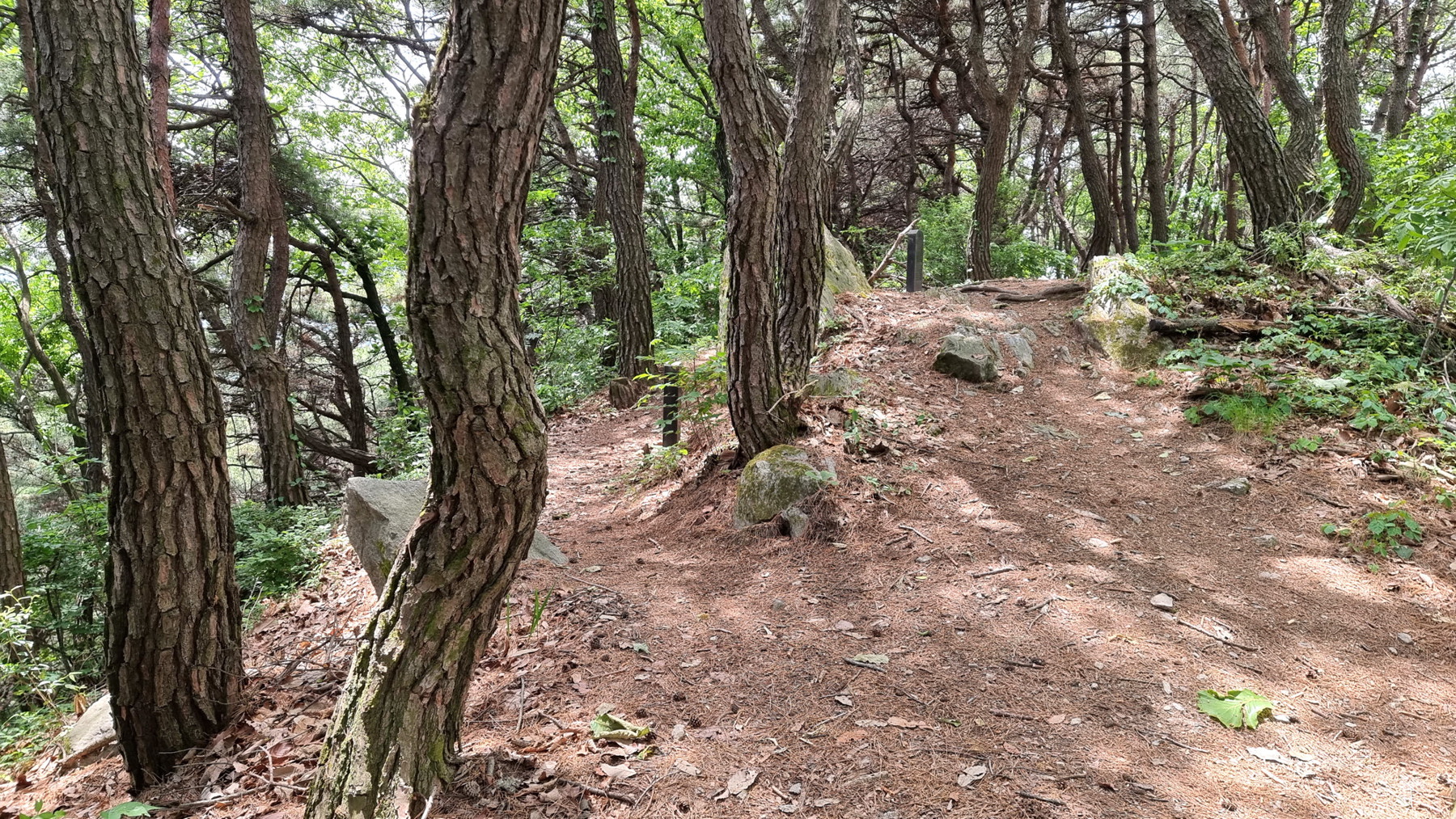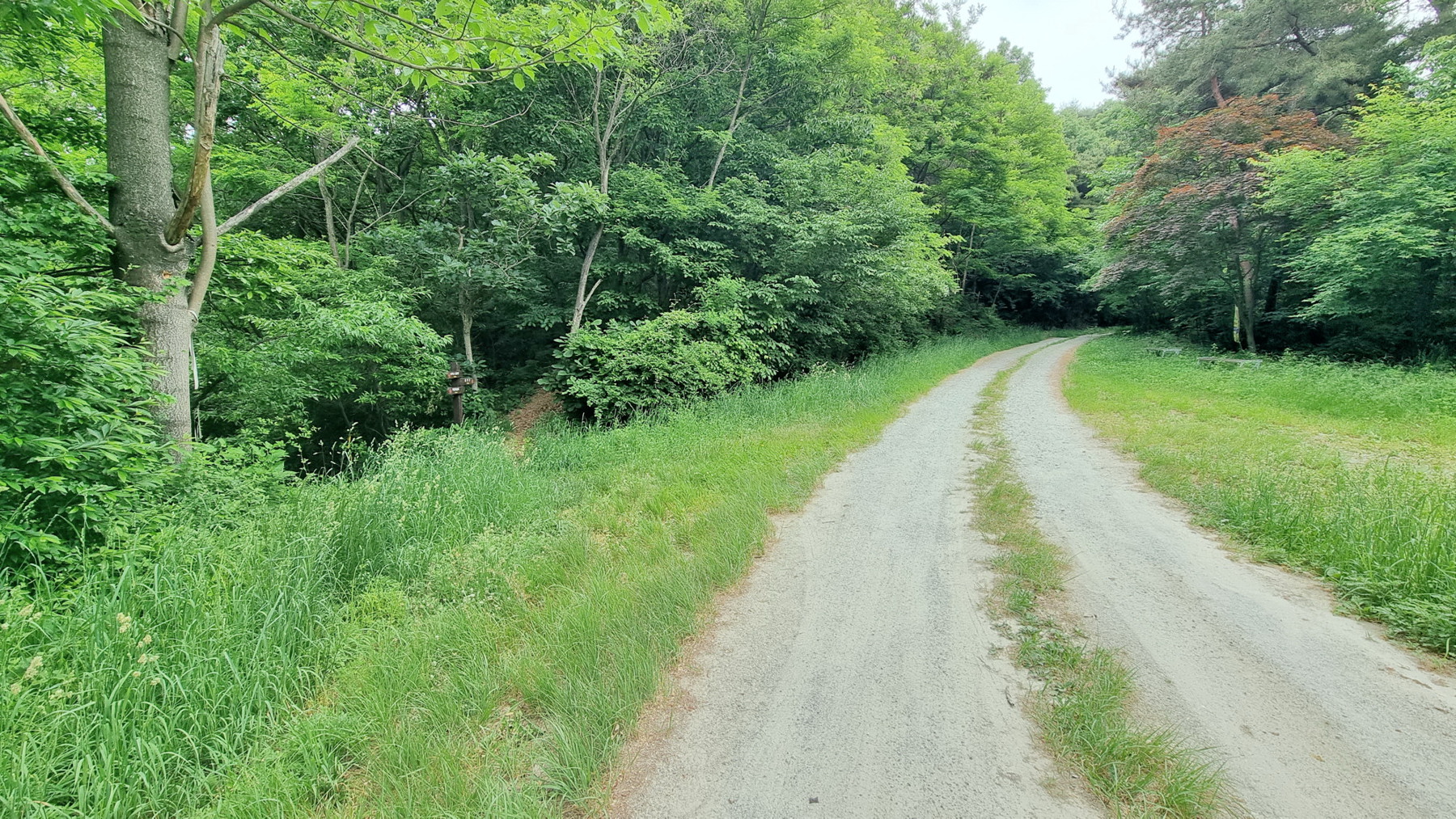 ▼ 이 지점에서 숲길로 오르지 않고 임도따라 바람재쉼터까지