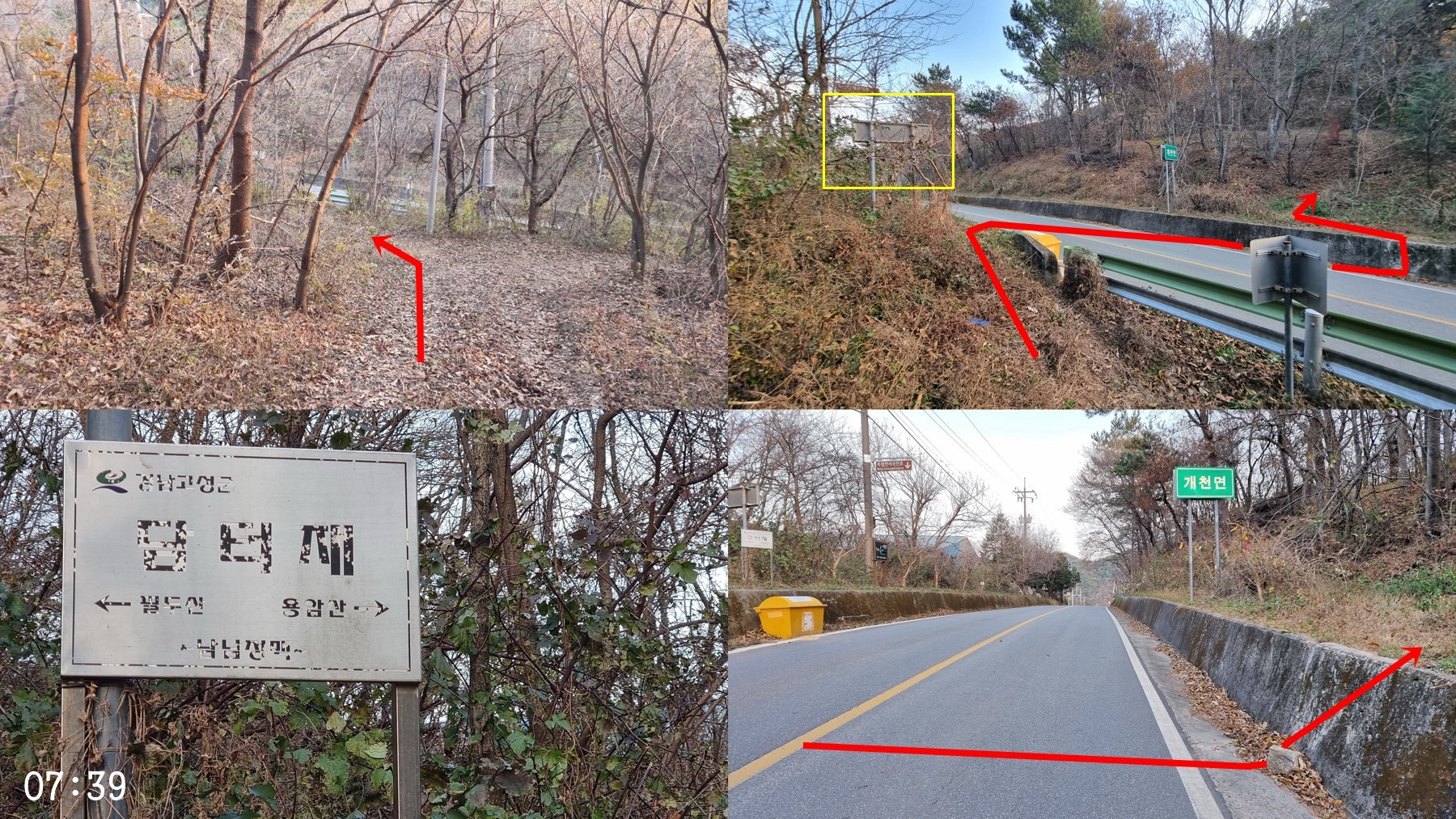 ▼ 담티재 : 개천면 청광리와 구만면 화림리를 이어주는 고개로 1002번 지방도가 지나고