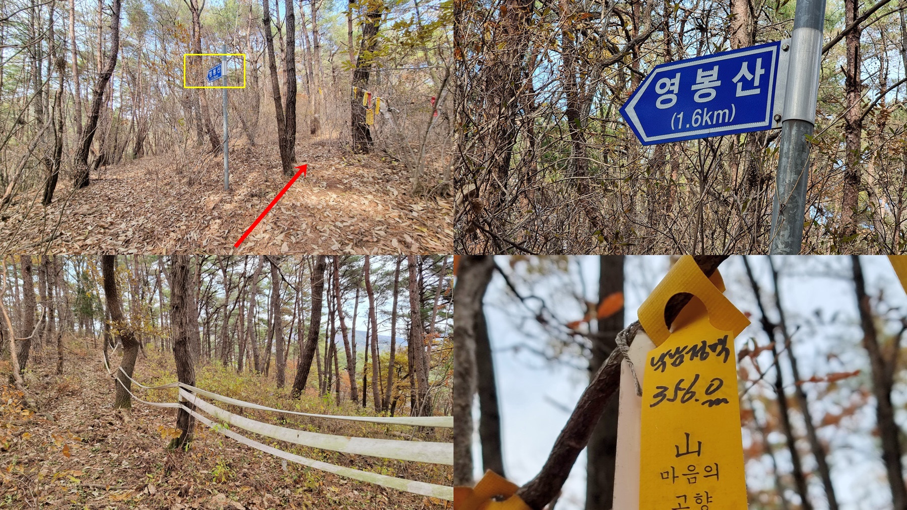 ▼ 영봉산 갈림에서 우틀 후 차단 띠 구간을 지나 356봉에 이르고