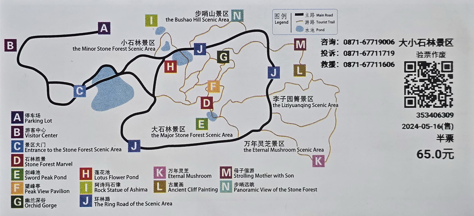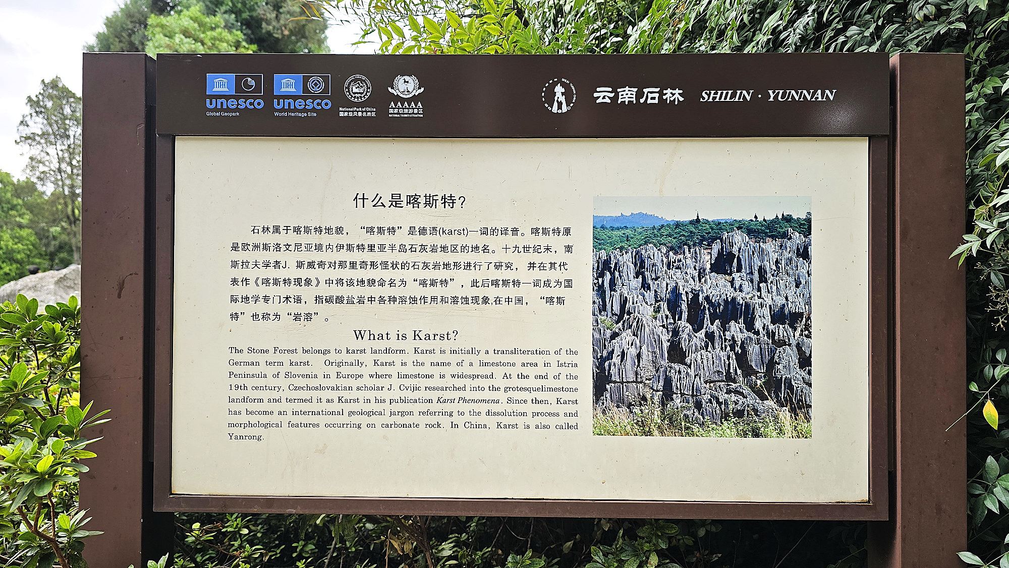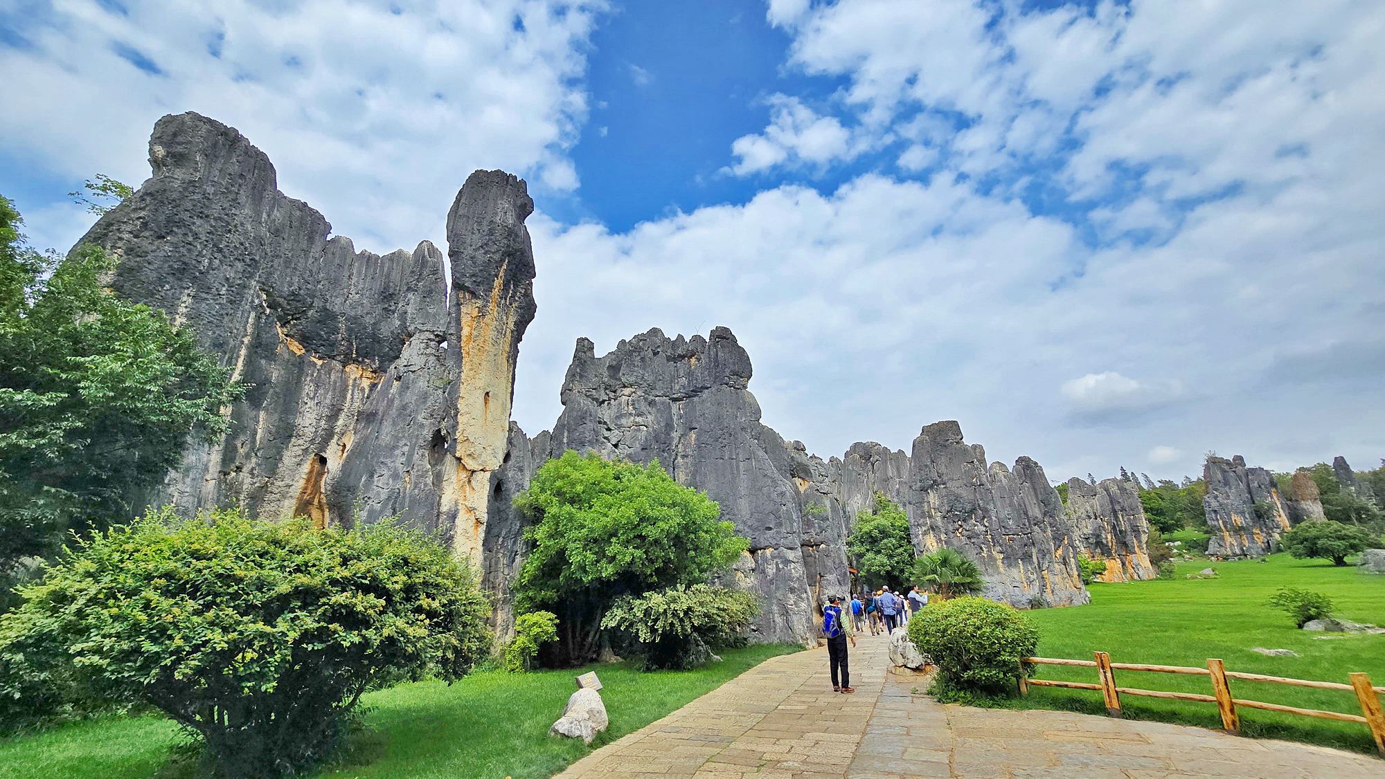 지금으로부터 약 2억 7천만 년 전 바닷속 절경이 지각 변동에 의해 지상으로 융기하고, 다시 오랜 세월에 걸쳐 물과 바람에 갈라지고 씻겨 내려 기이한 경관이 형성됐다. 세계적으로 유일하게 ‘아열대 고원에 펼쳐진 카르스트 지형’으로 꼽힌다. 높이 5~30m에 이르는 회색 바위들이 울창한 정글을 이뤘다. 현재 관광객에게 개방된 것은 전체 석림 면적의 5분의 1에 불과하다. 입장권에 포함된 석림 풍경구는 대석림(大石林), 소석림(小石林), 내고석림(乃古石林) 등 3곳으로 나뉘는데, 저마다 다른 개성이 있다.
