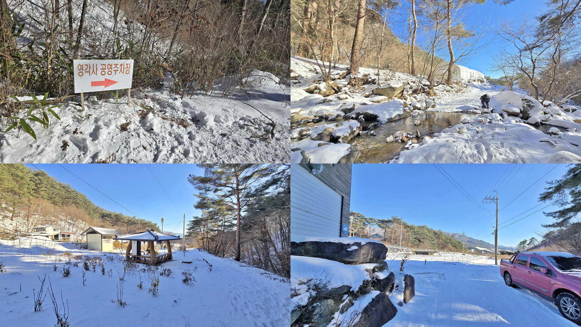 ▼ 주차장이 만차라 되돌아나와 갈림 부근 도로변에 주차 후 영각탐방지원센터 방향으로