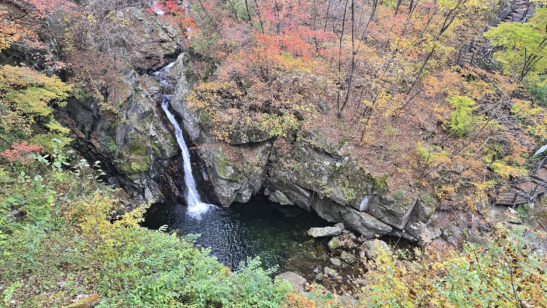 ▼ 하늘다리데크전망대에서 바라본 명지폭포