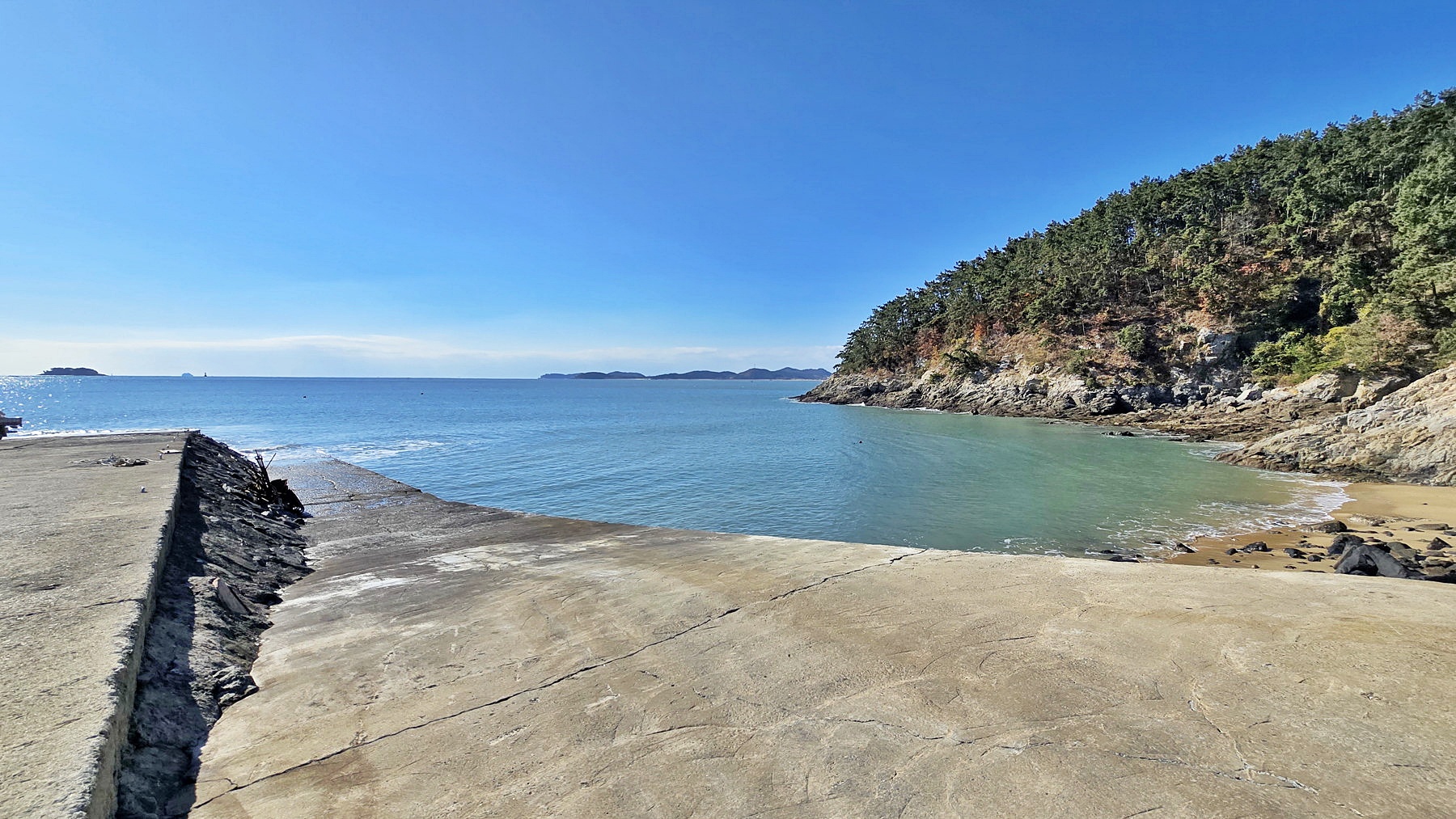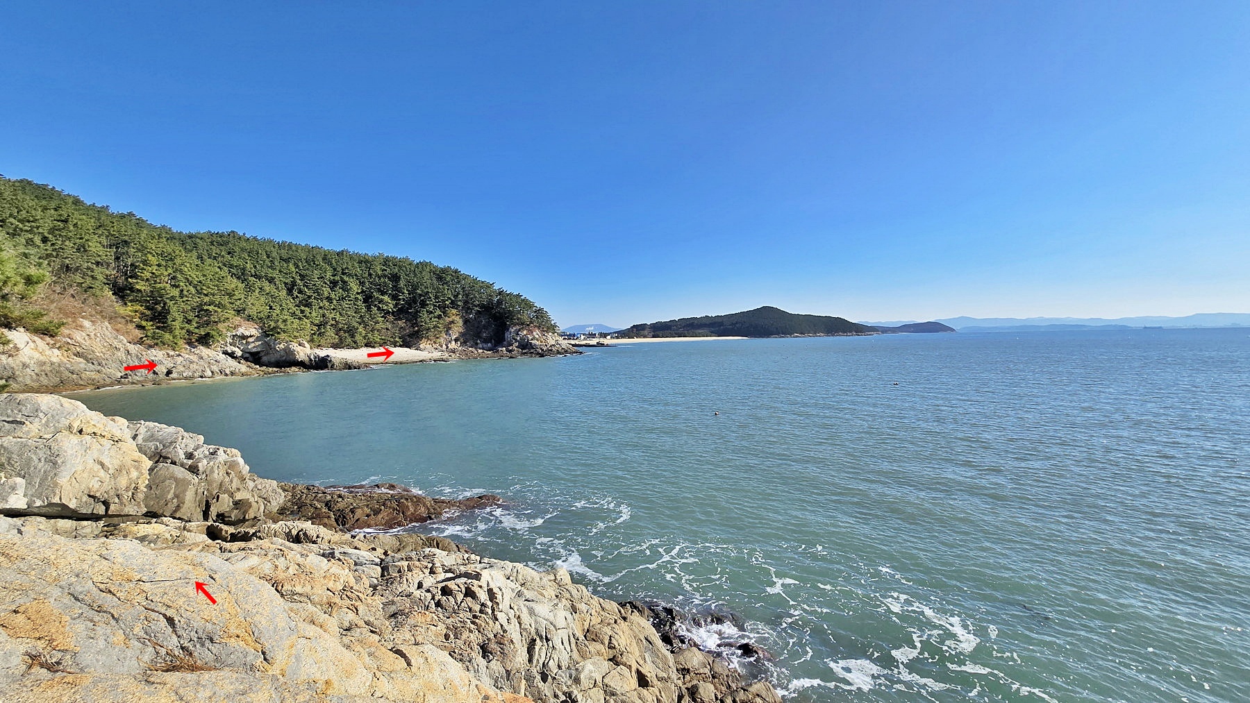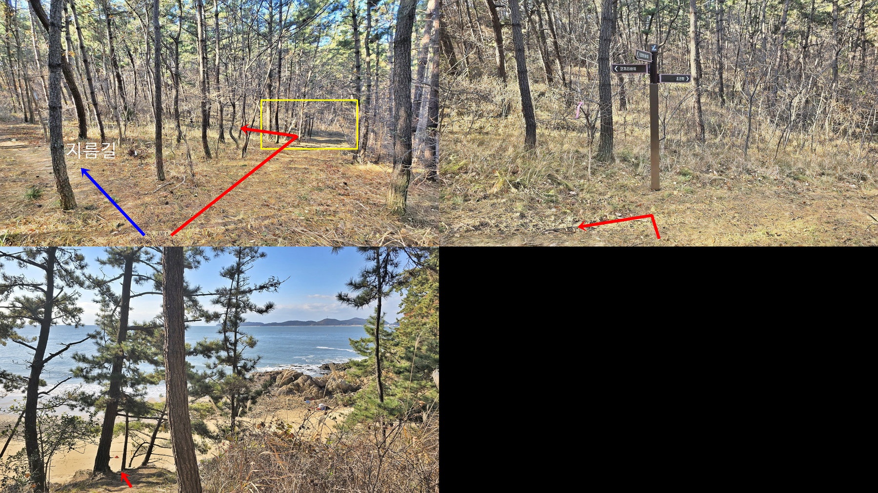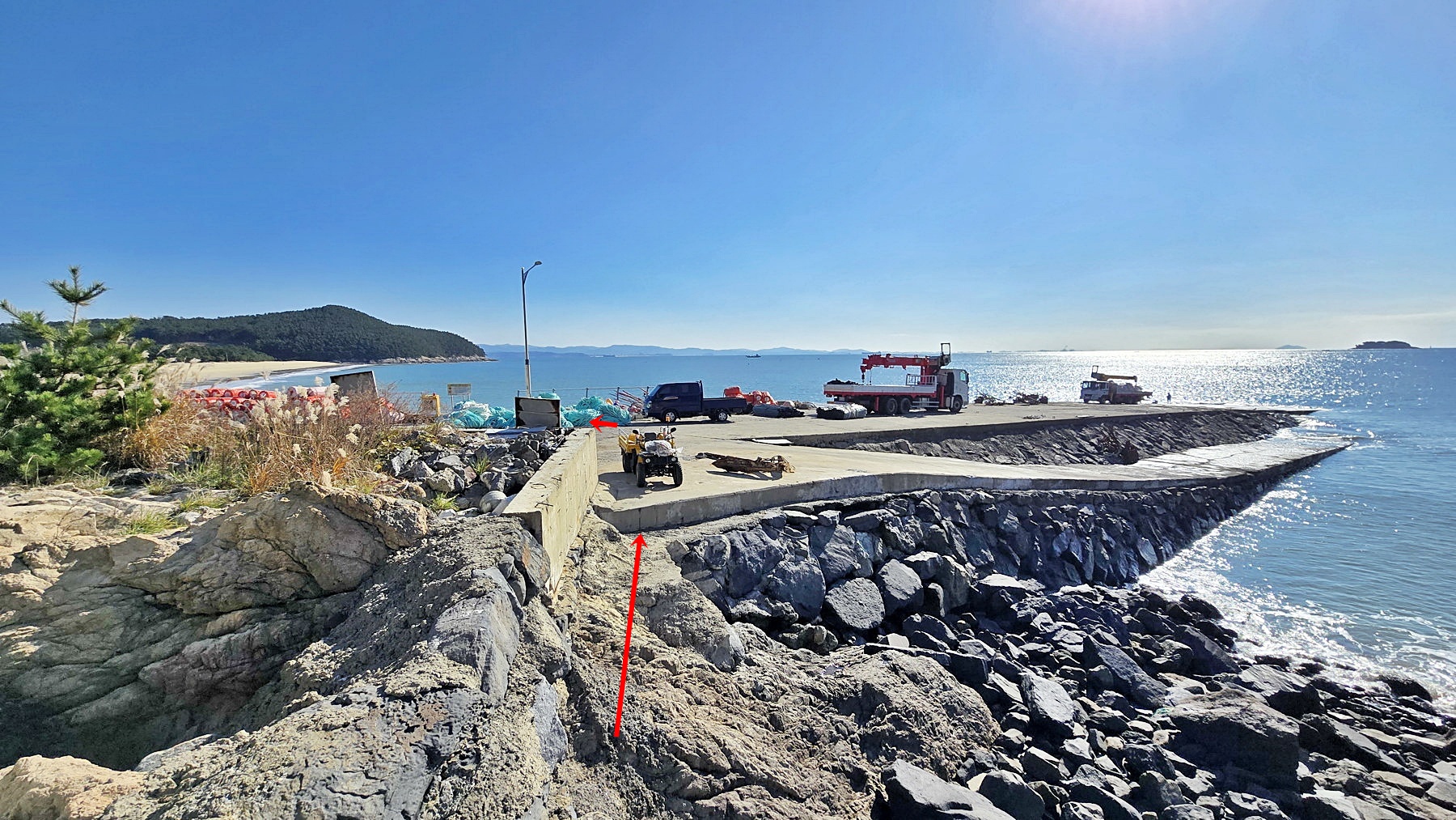 ▼ 방파제 직전 해변으로 진행하기에 다소 위험한 구간이 있어 잠시 산으로 올라 방파제로 하산
