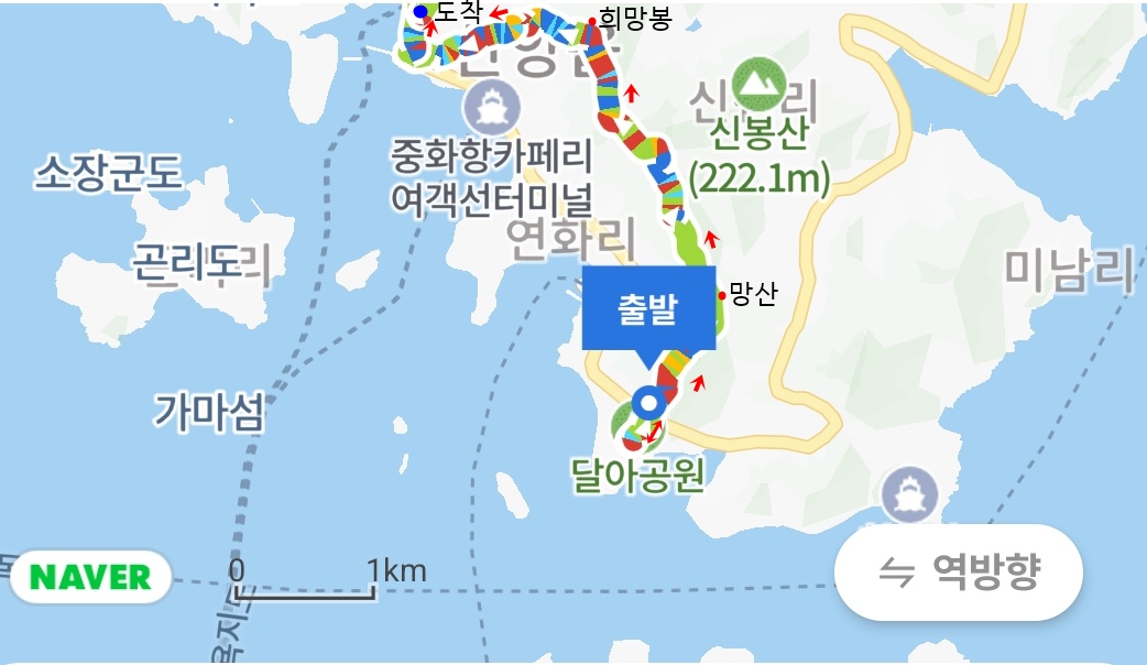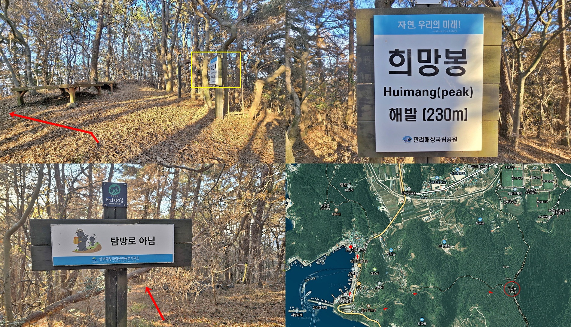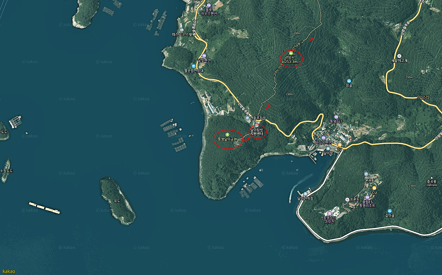 ▼ 당포항 원항마을 주차공터에 주차 후 카카오택시 호출하여 달아탐방지원센터로 이동하여 먼저 진행 방향의 반대편에 있는 달아전망대 왕복 후 망산 방향으로