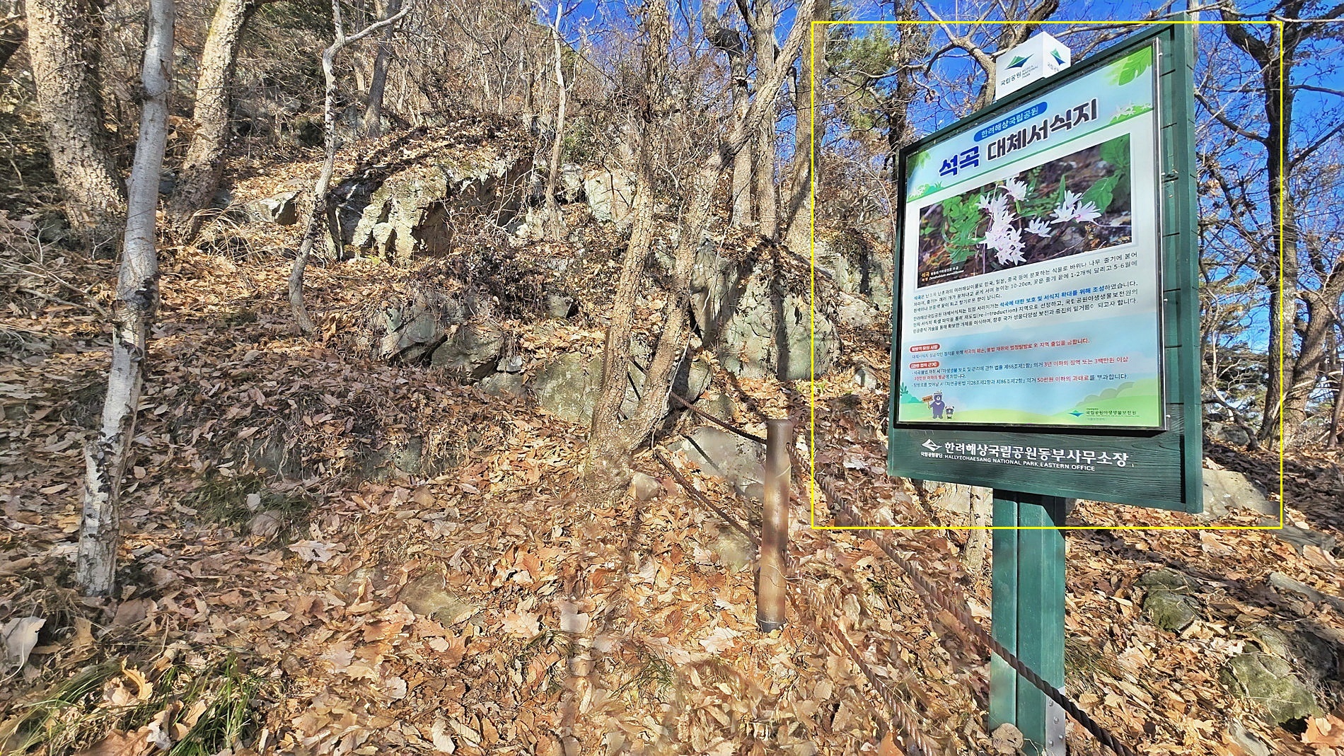 ▼ 망산에서부터 희망봉까지 이렇다 할 조망 없음. 희망봉에서 산양스포트파크 방향을 버리고 '탐방로아님' 방향으로 진행. 다음 지도에는 등산로가 보이나 실제 등산로가 없다고 해도 무방할 정도임.