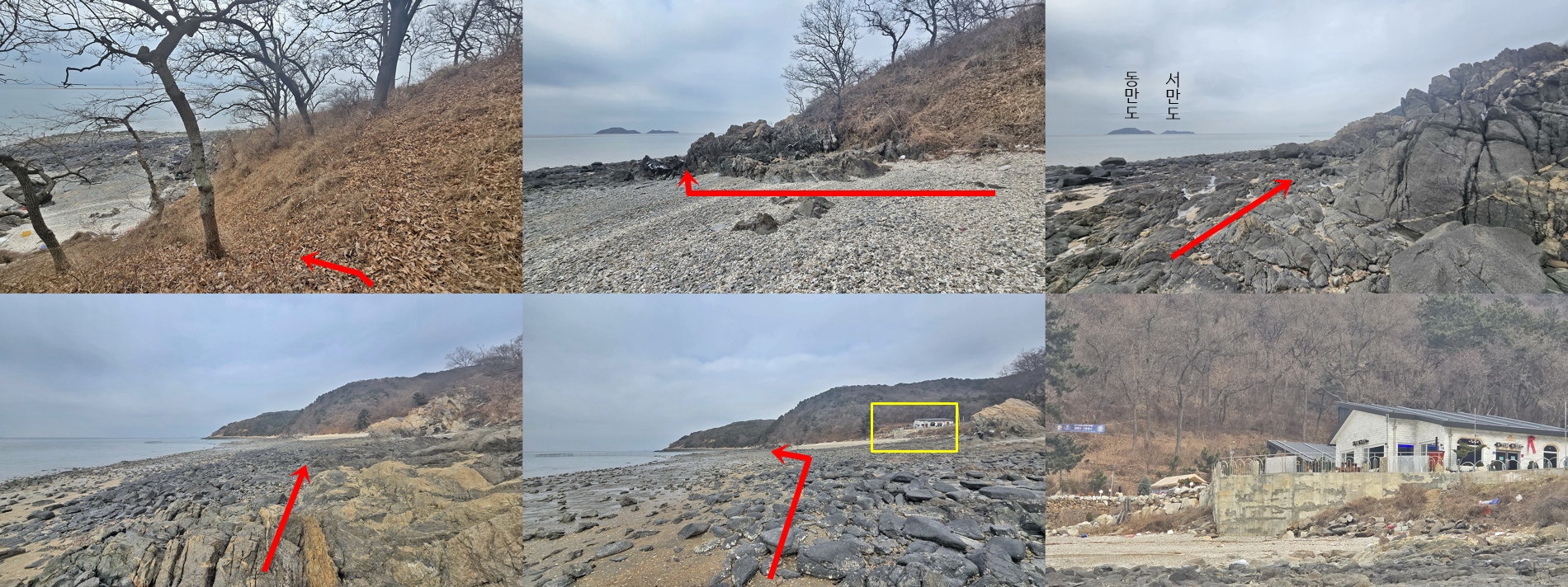 ▼ 쪽쪽골 해변과 윤옥골 해변을 뒤돌아 보고