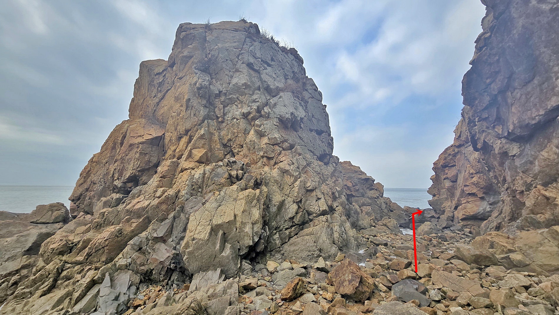 ▼ 건어장종점 : 방파제가 높아 해변으로 곧장 진입하기 어려운 상황. 숲길 진입로는 테잎으로 가로막아 놓았지만 마침 주변에 계신 주민 말씀으로는 위험지역이 있어 막아 놓은 것으로 조심해서 가면 될 듯 하다 하시고