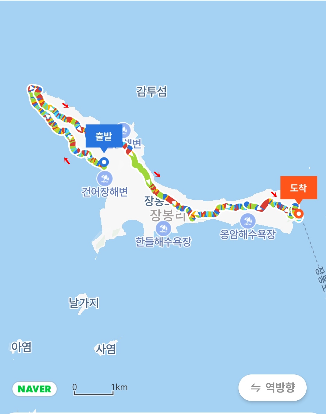 ▼ 상산봉에서 하산하여 장봉선착장에서 트레킹 종료
