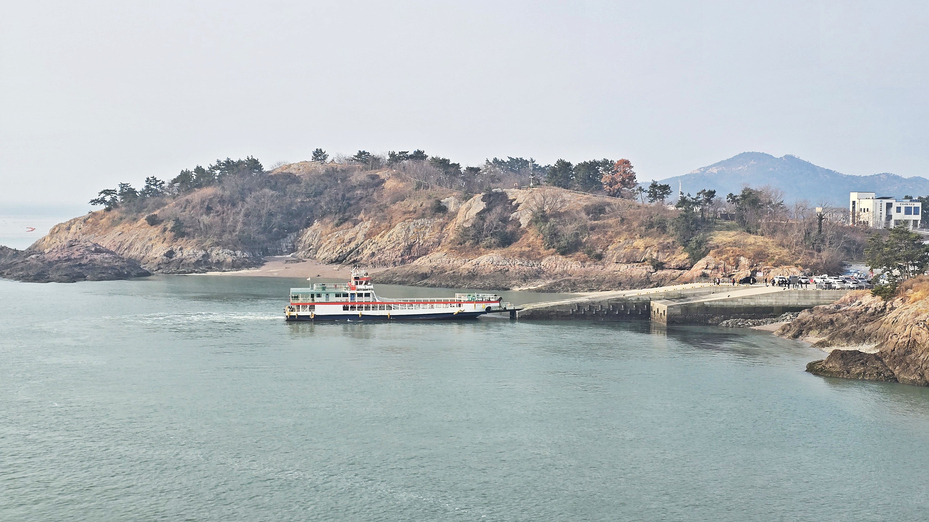 ▼ 장자도 선착장에 출항 대기 중인 여객선