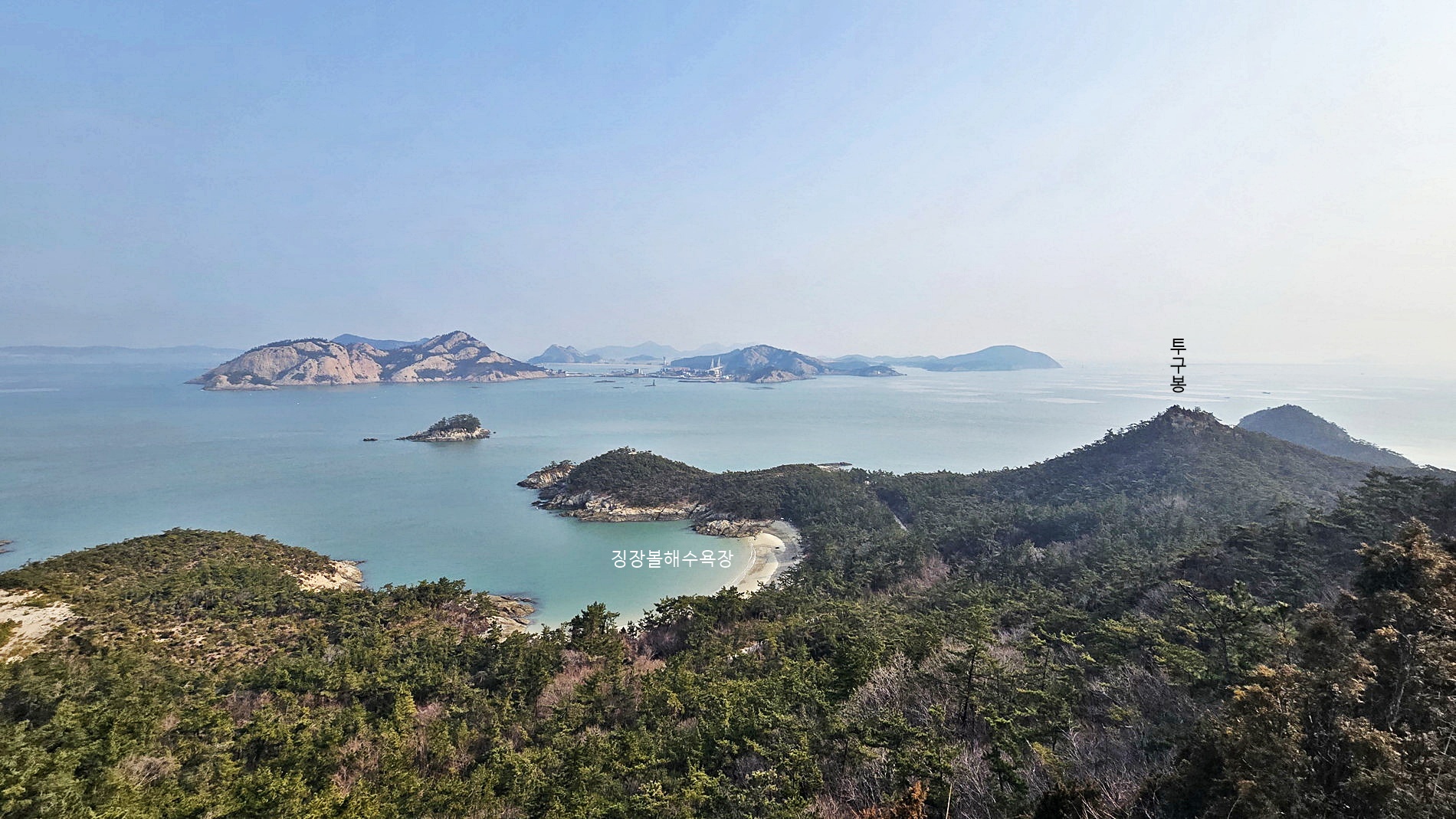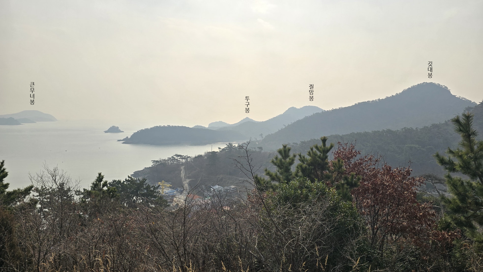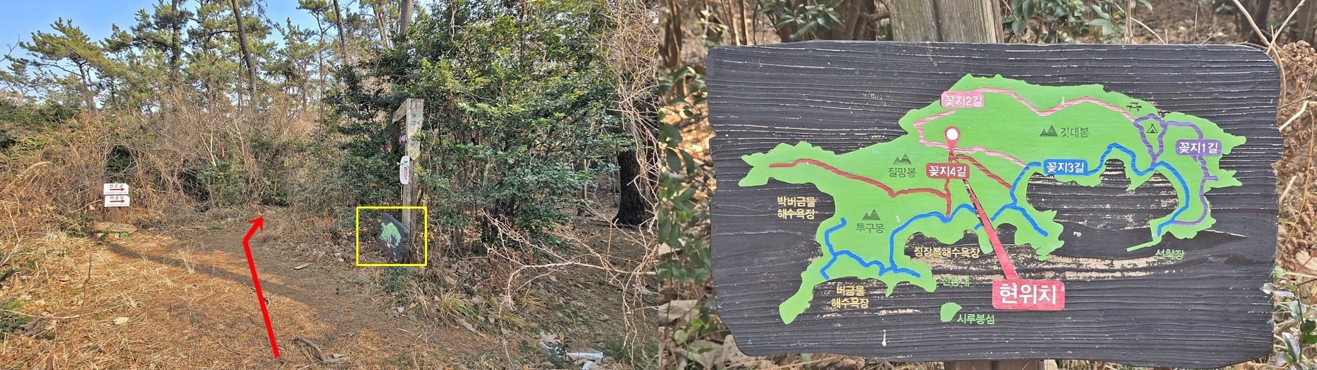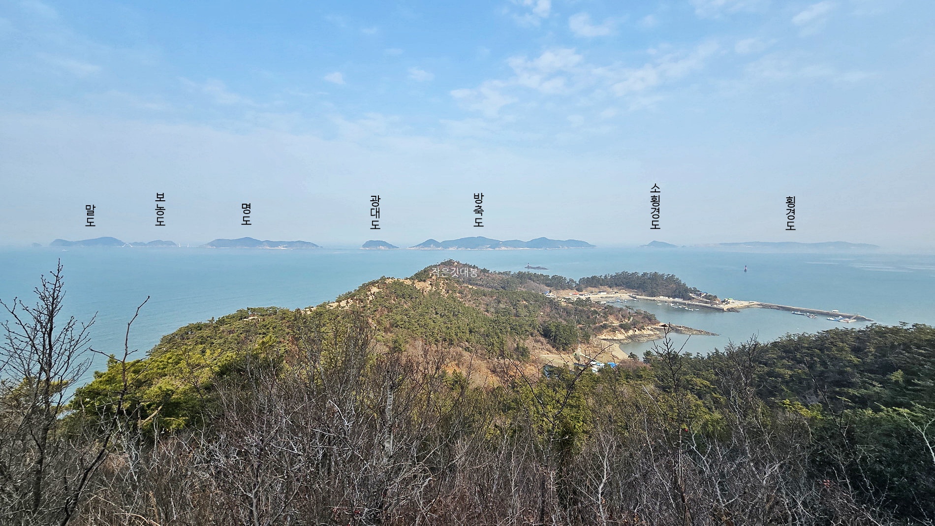 4. 코스 : 관리도선착장~발전소~작은깃대봉(전망데크)~낙조(팔각정)전망대~용바위/캠핑장~전망데크~깃대봉~갈림1~갈림2~질망봉(129봉), 쇠코바위(천공굴) 왕복~마을길~관리도선착장