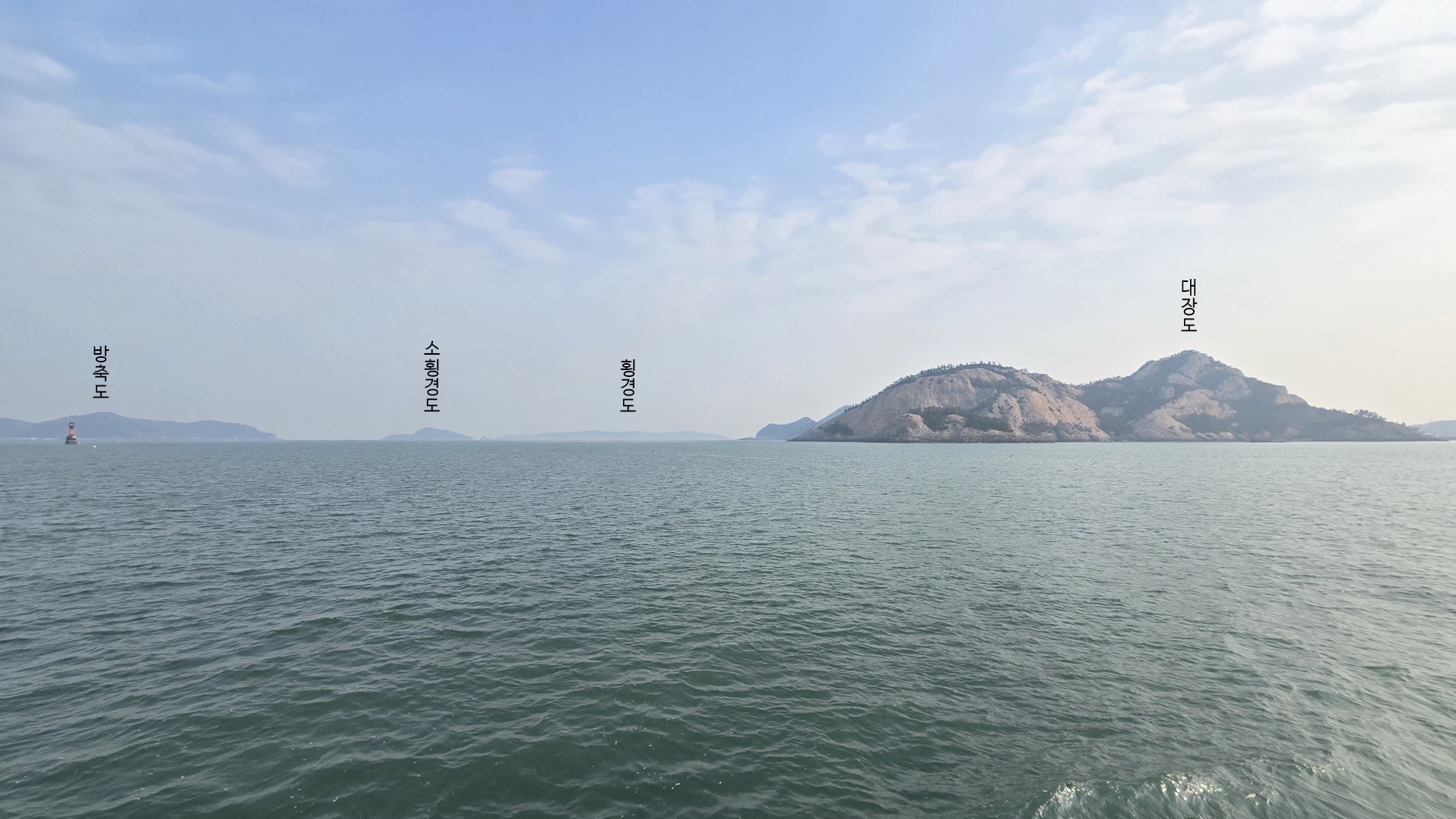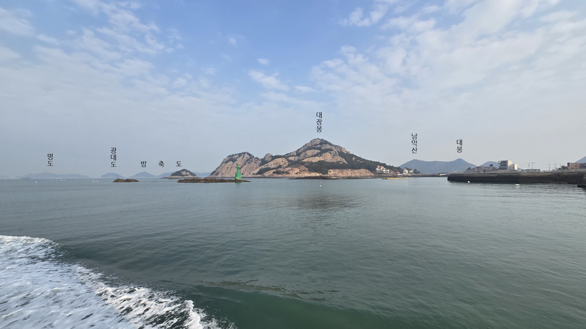 ▼ 여객선은 관리도항을 떠나 방축도로