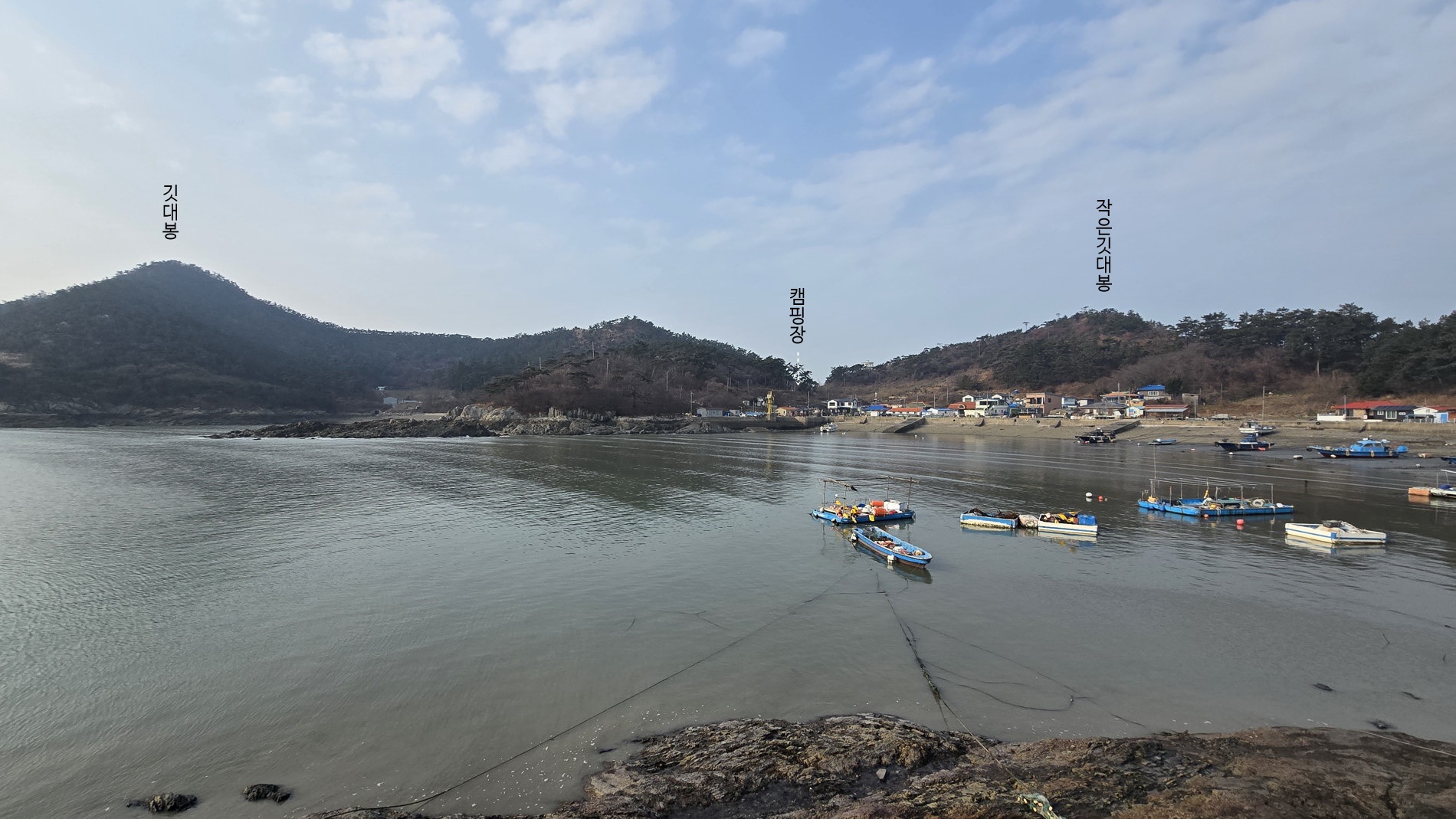 ▼ 장자도 선착장에 입항