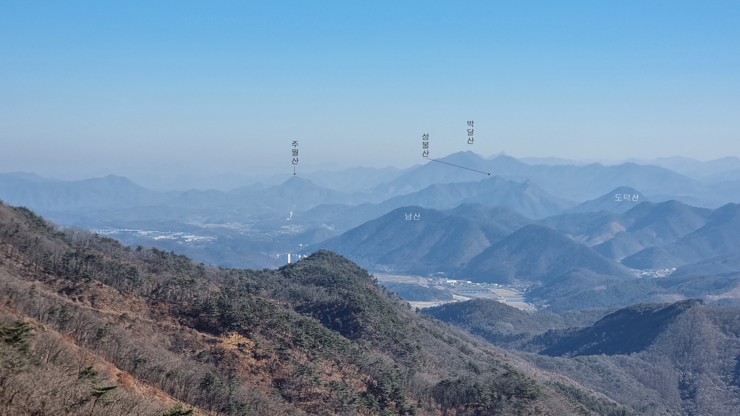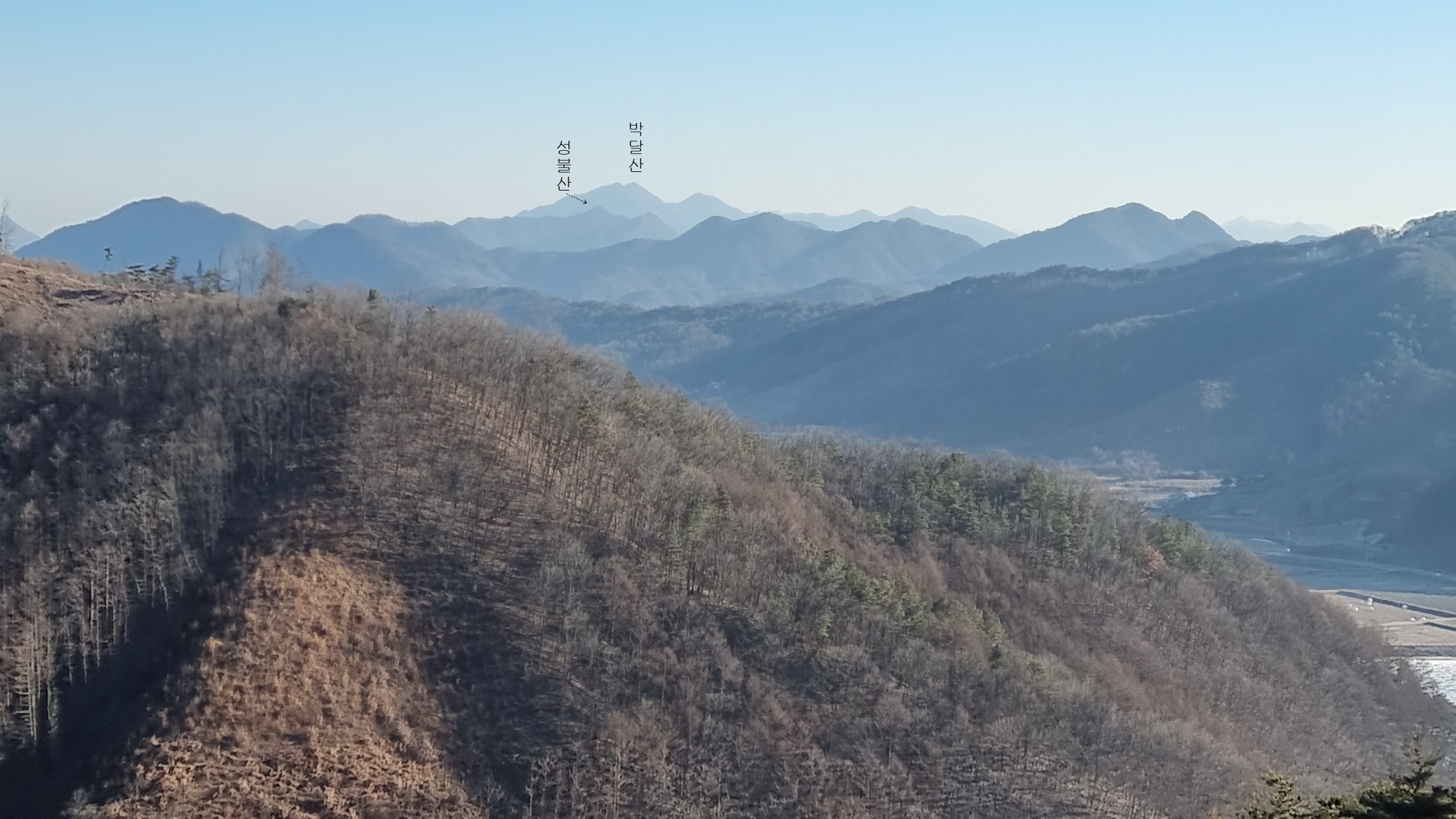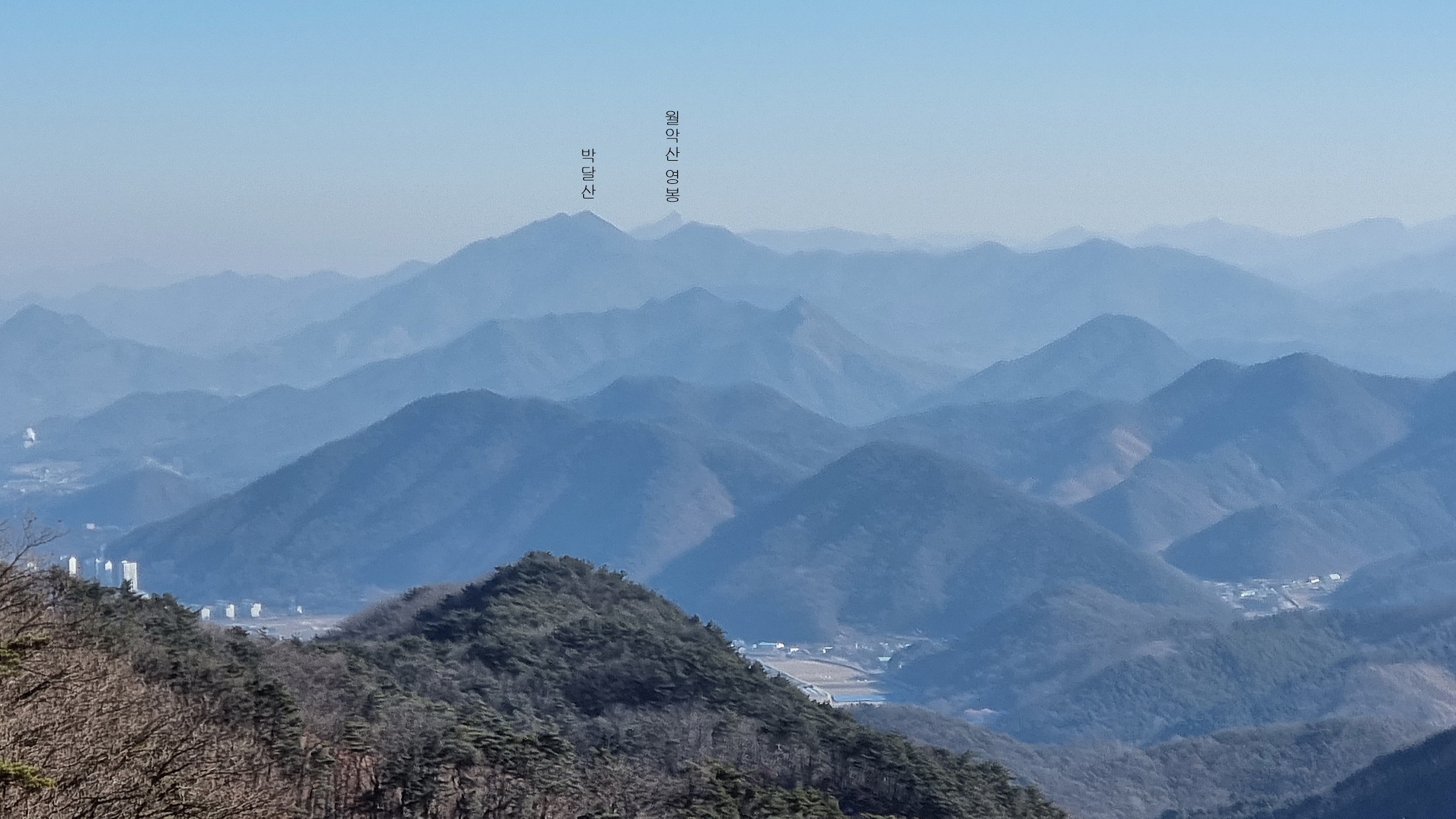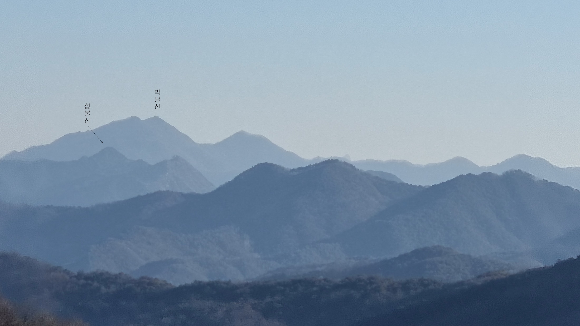 ▼ 고도를 높혀 먼 산을 당겨보니 박달산과 성불산이 식별되고