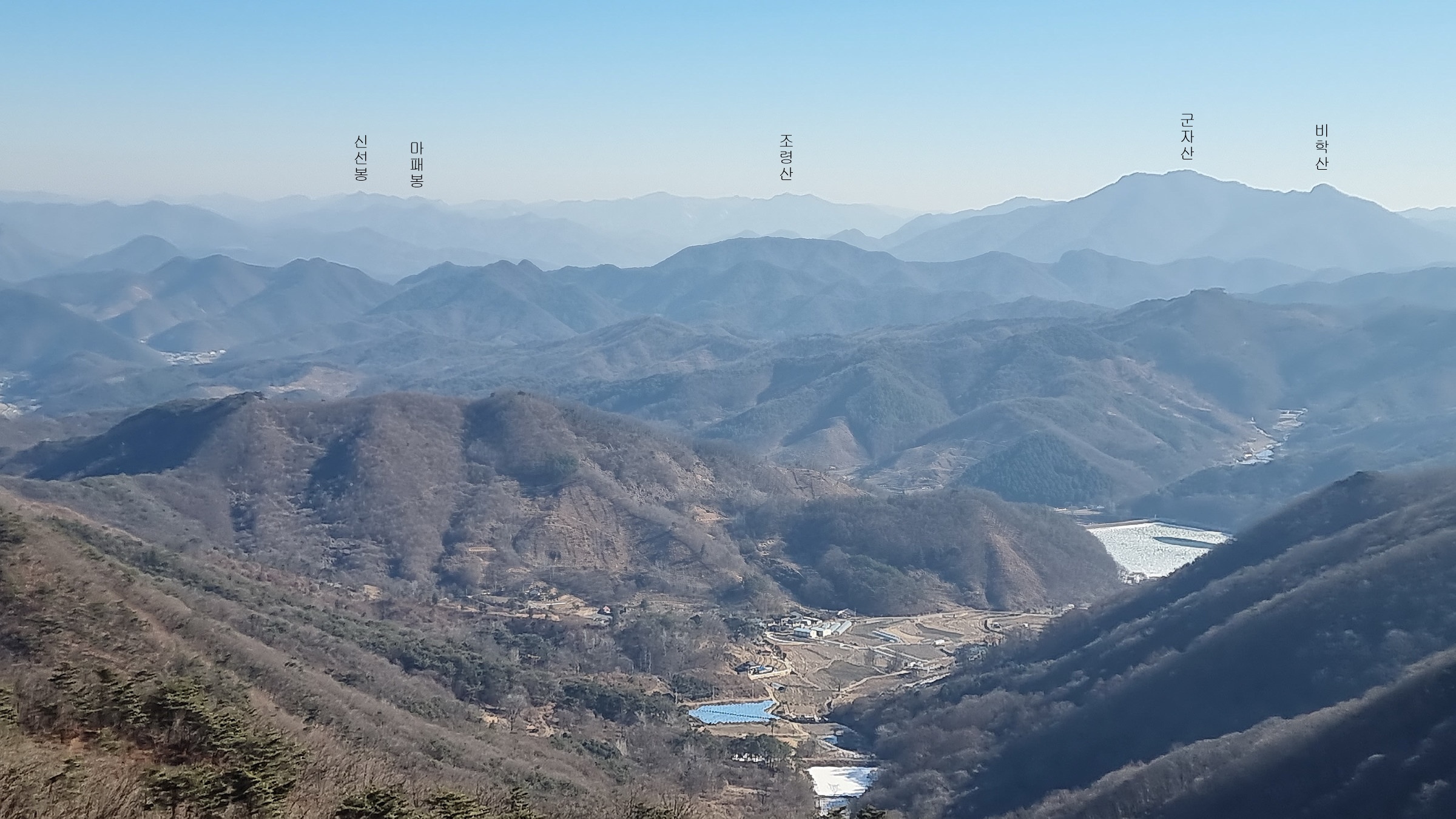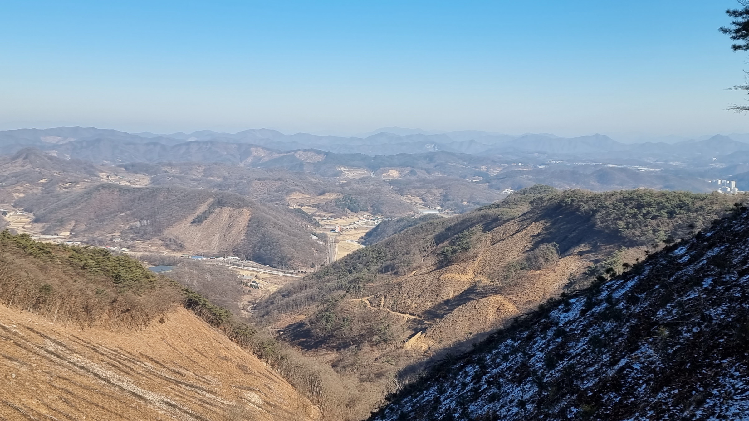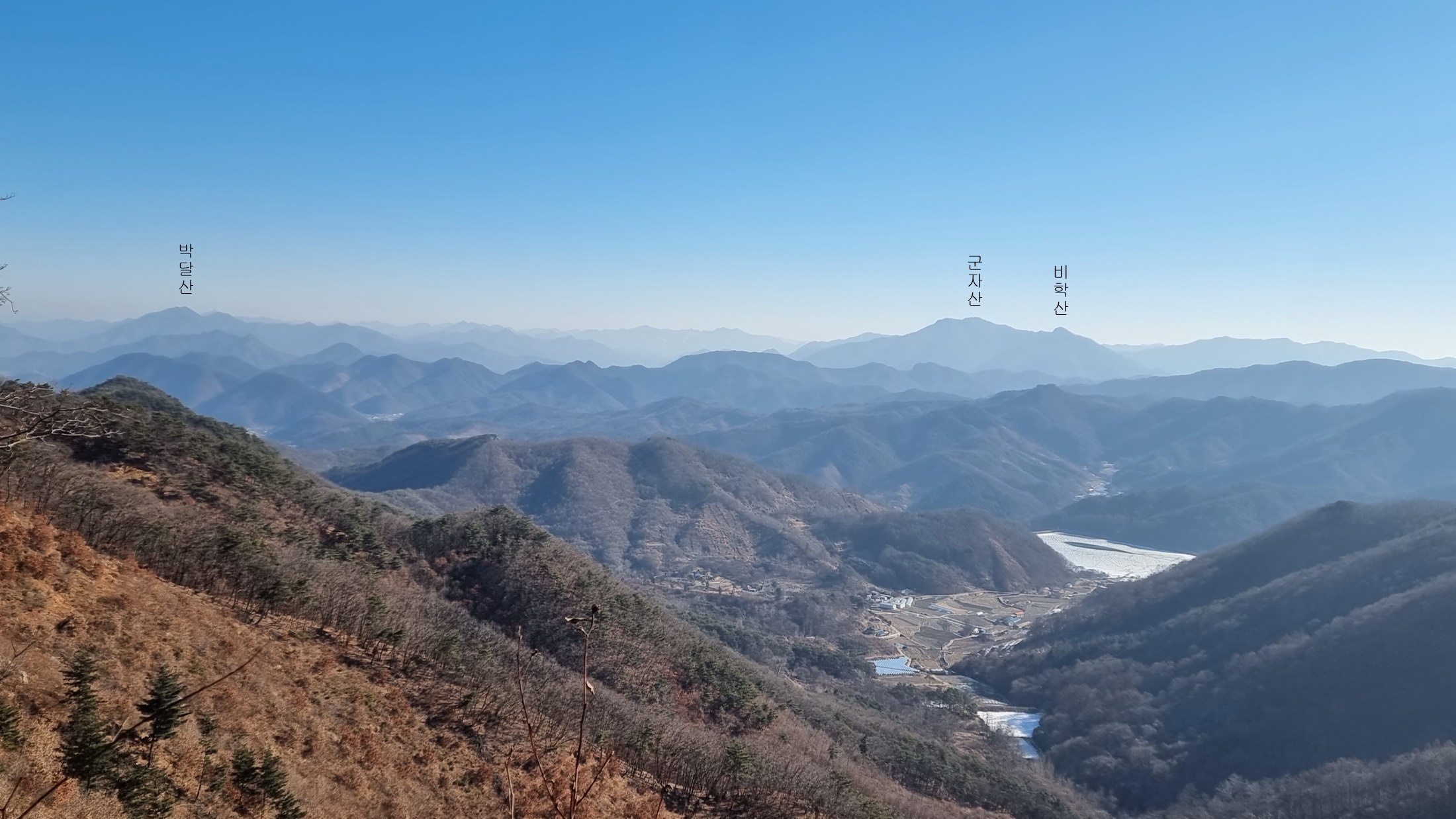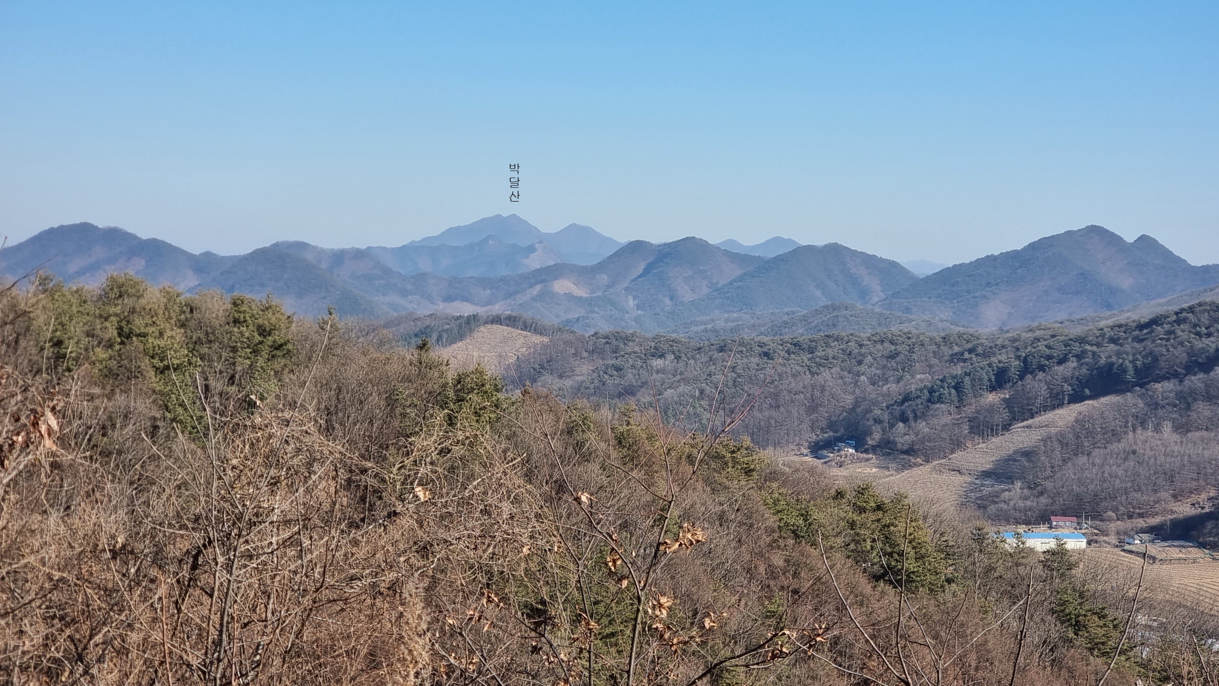 ▼ 고도를 높혀 먼 산을 당겨보니 박달산과 성불산이 식별되고