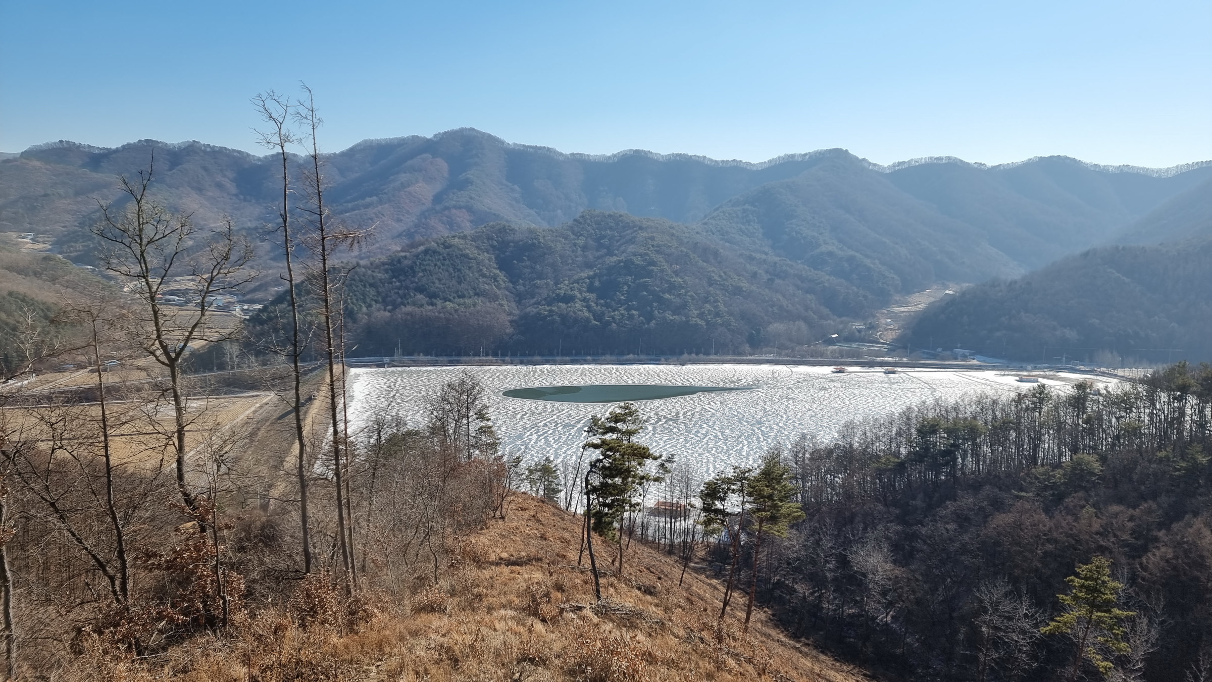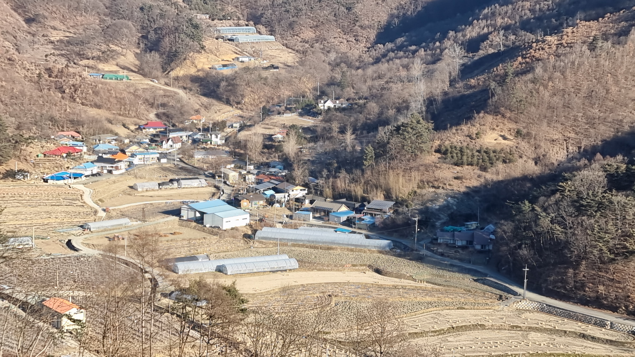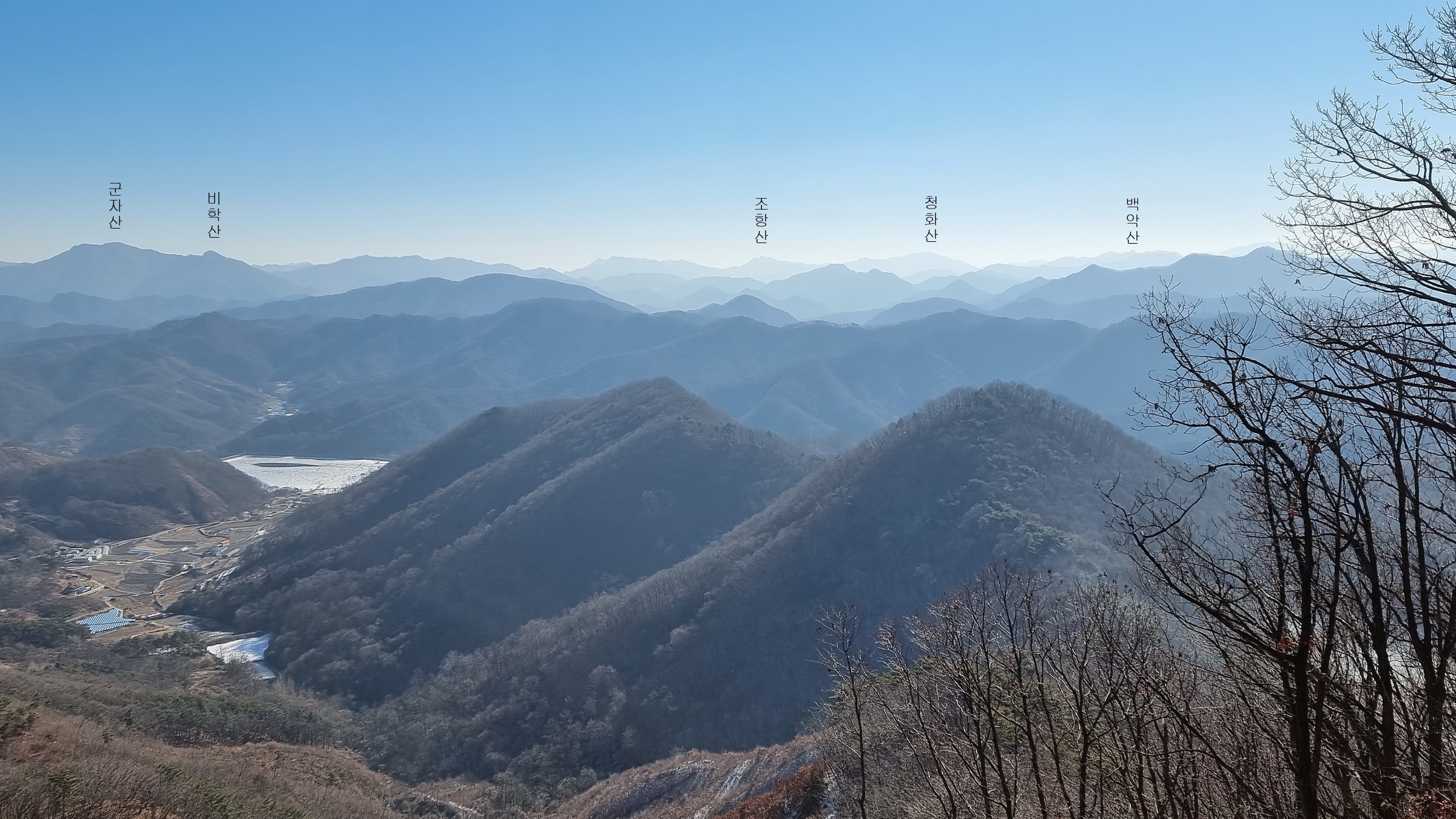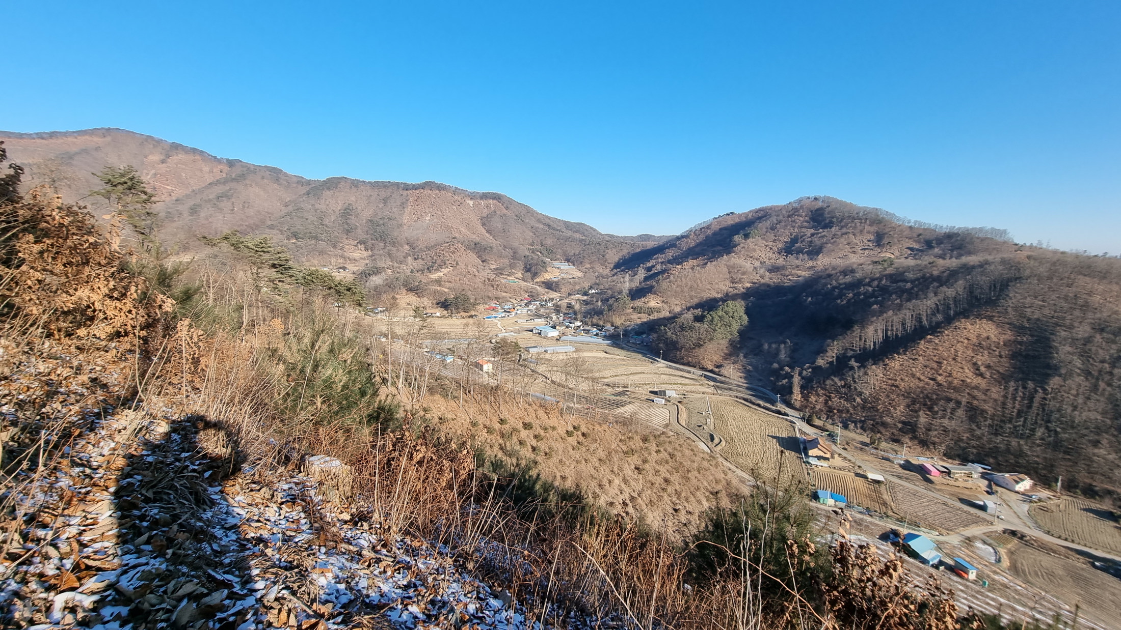▼ 고도를 높혀 먼 산을 당겨보니 박달산과 성불산이 식별되고