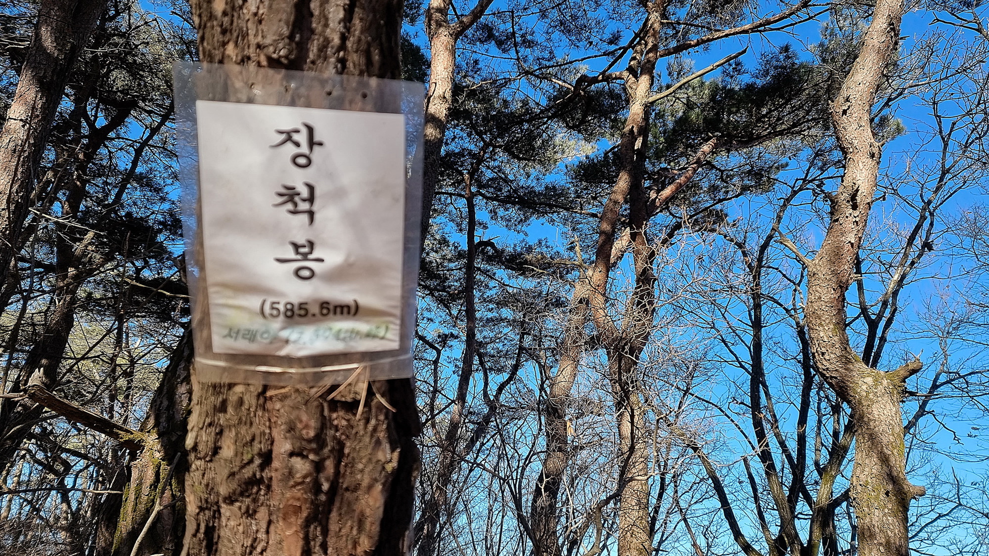 4. 코스 : 문광지주차장~장자봉(429.8)~안부~장척봉(585.6)왕복~장자봉(601.2)~상자봉(470.8)~갈림봉~376.7봉~양곡정~문광지 수변테크길~문광지주차장