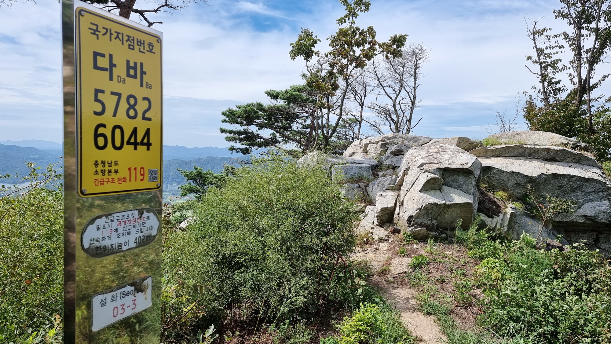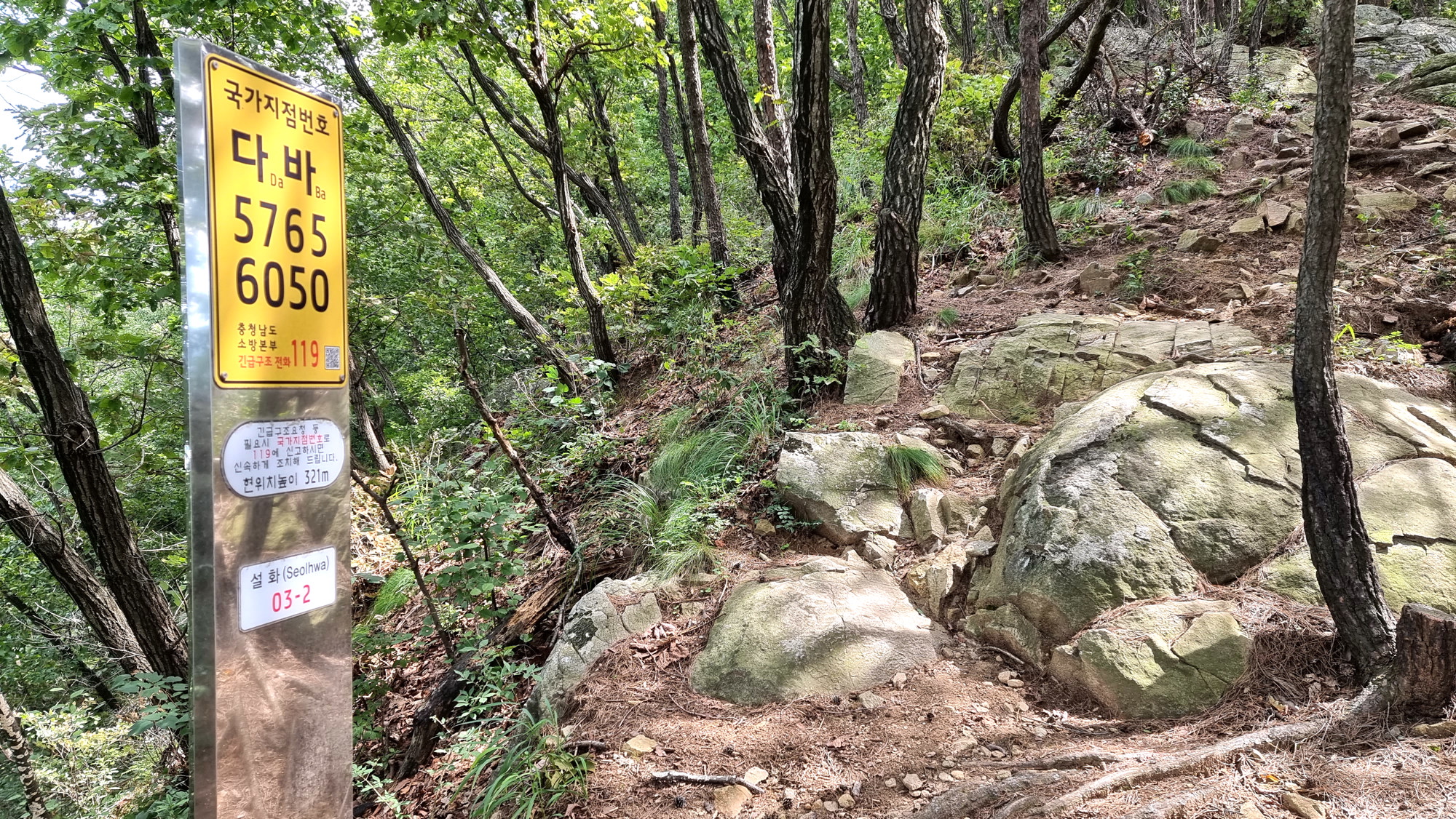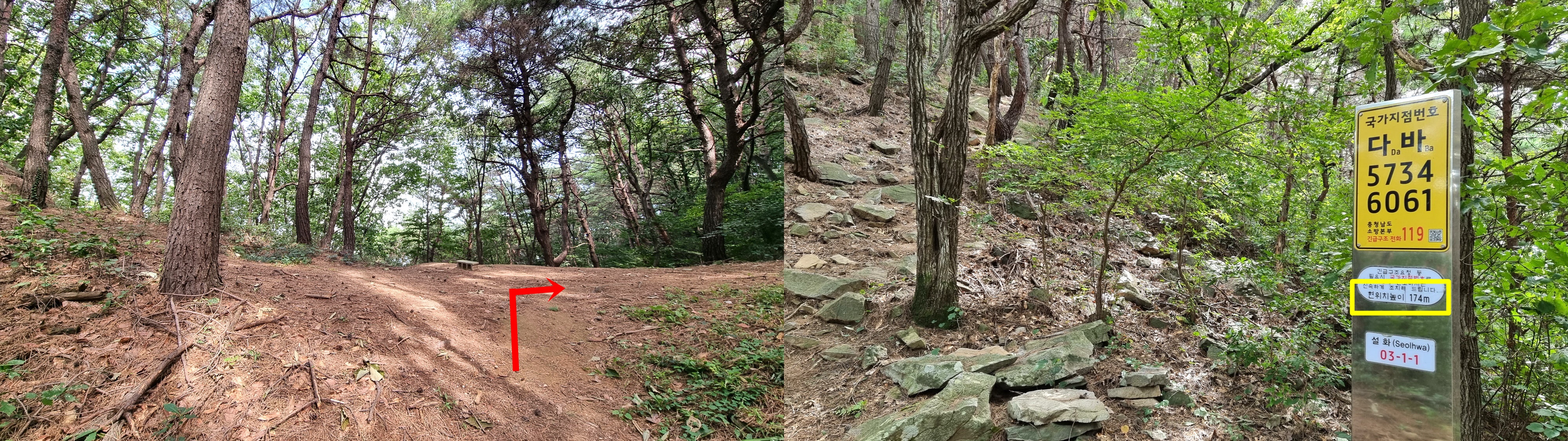 ▼ 안부에서 우틀, 국가지점표지에 현위치 고도가 적시되어 있어 참고가 되고 -----