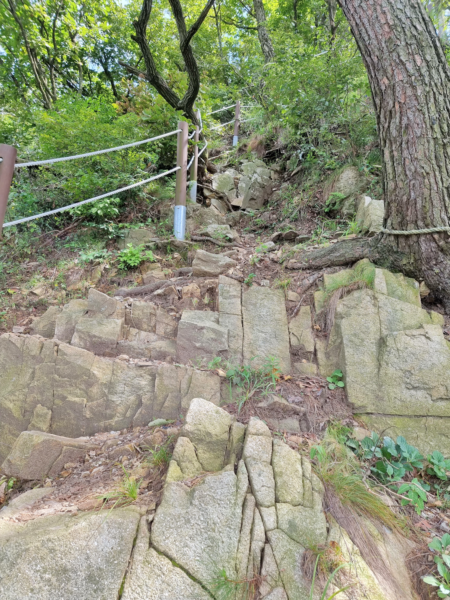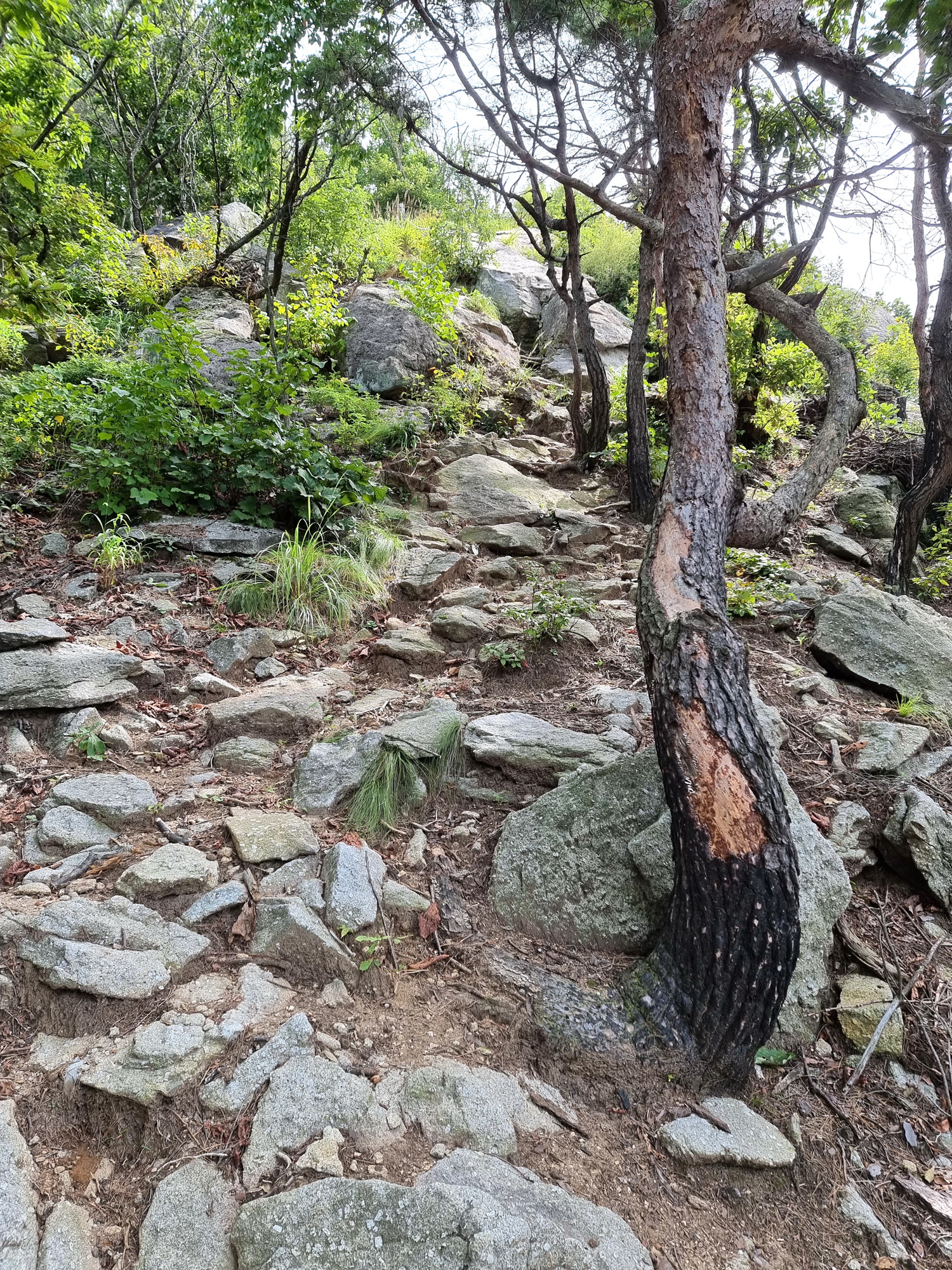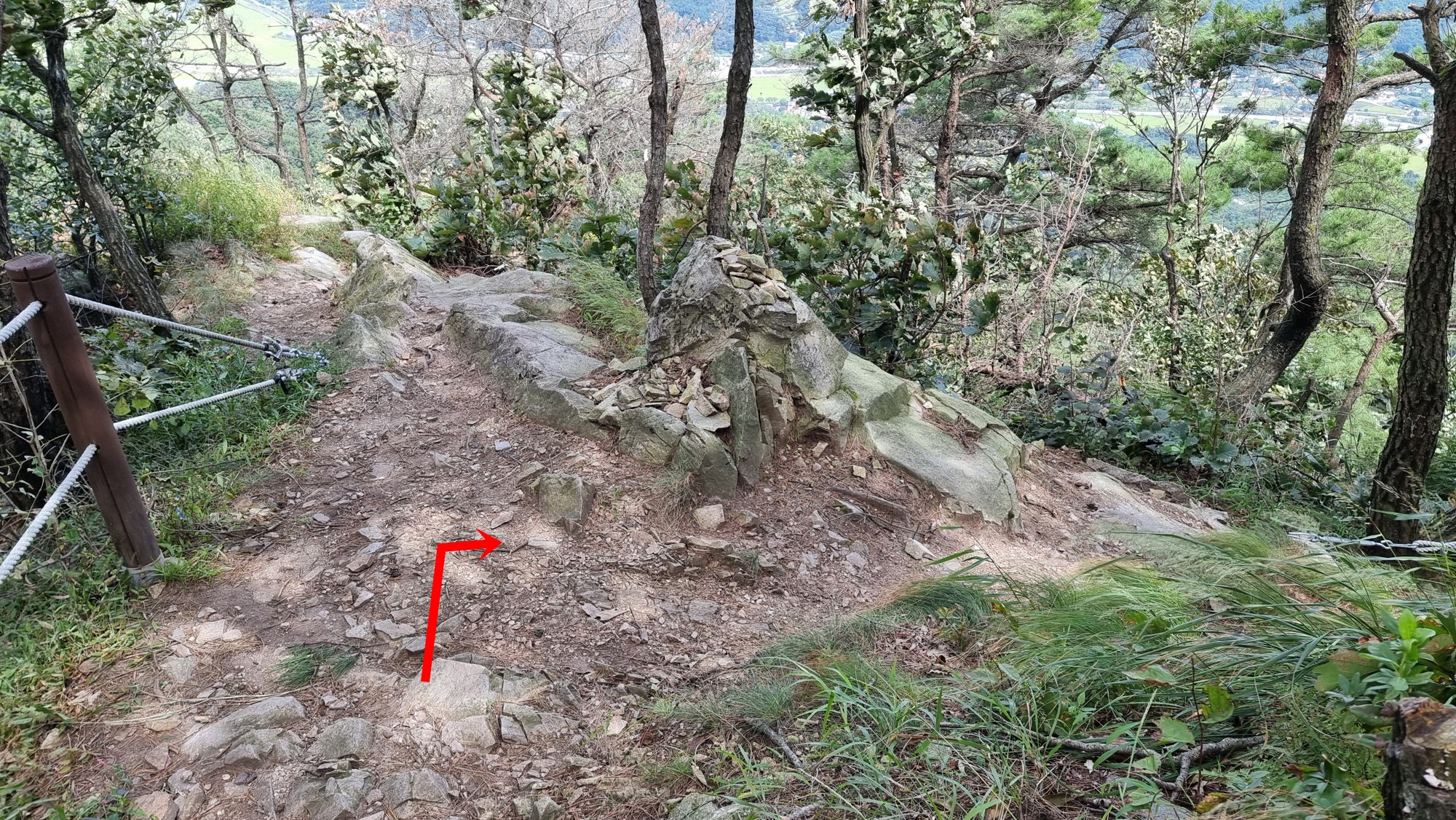 ▼ 안부에서 우틀, 국가지점표지에 현위치 고도가 적시되어 있어 참고가 되고 -----