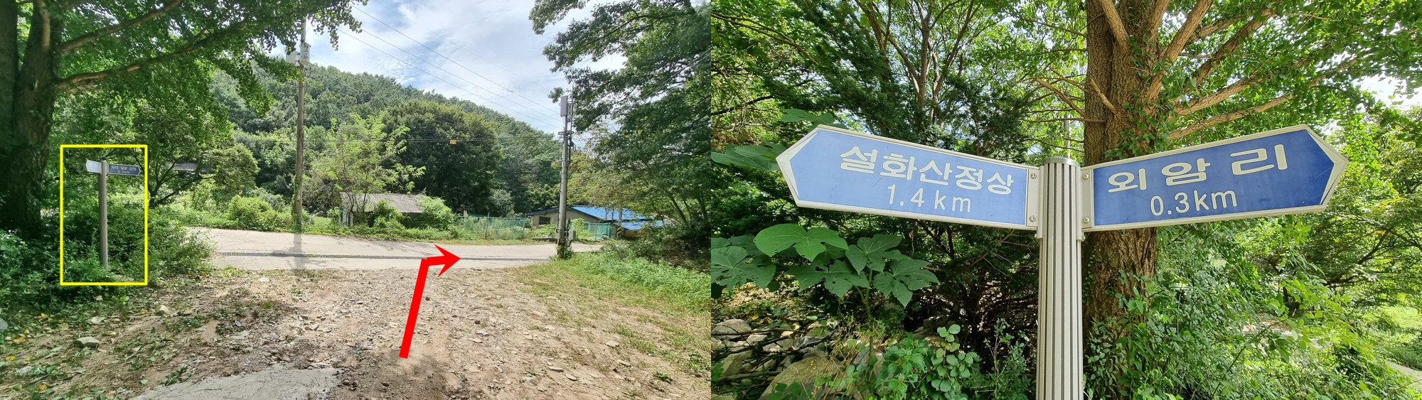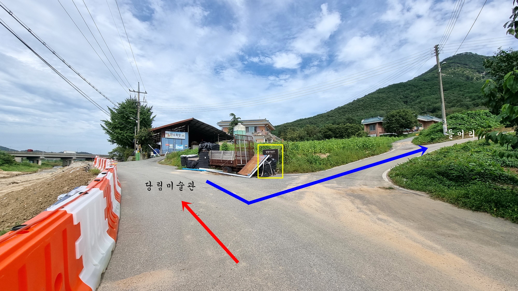 ▼ 처음에는 당림미술관 주차장 부근에서 입산하는 것으로 생각하고 있었는데 아무리 둘러보아도 들머리 표식이 보이지 않아 산행기를 검색해보니 외암리 산 6-1 지점에서 입산한 기록이 확인되어 네비를 켜고 들머리를 찾아가고 -----