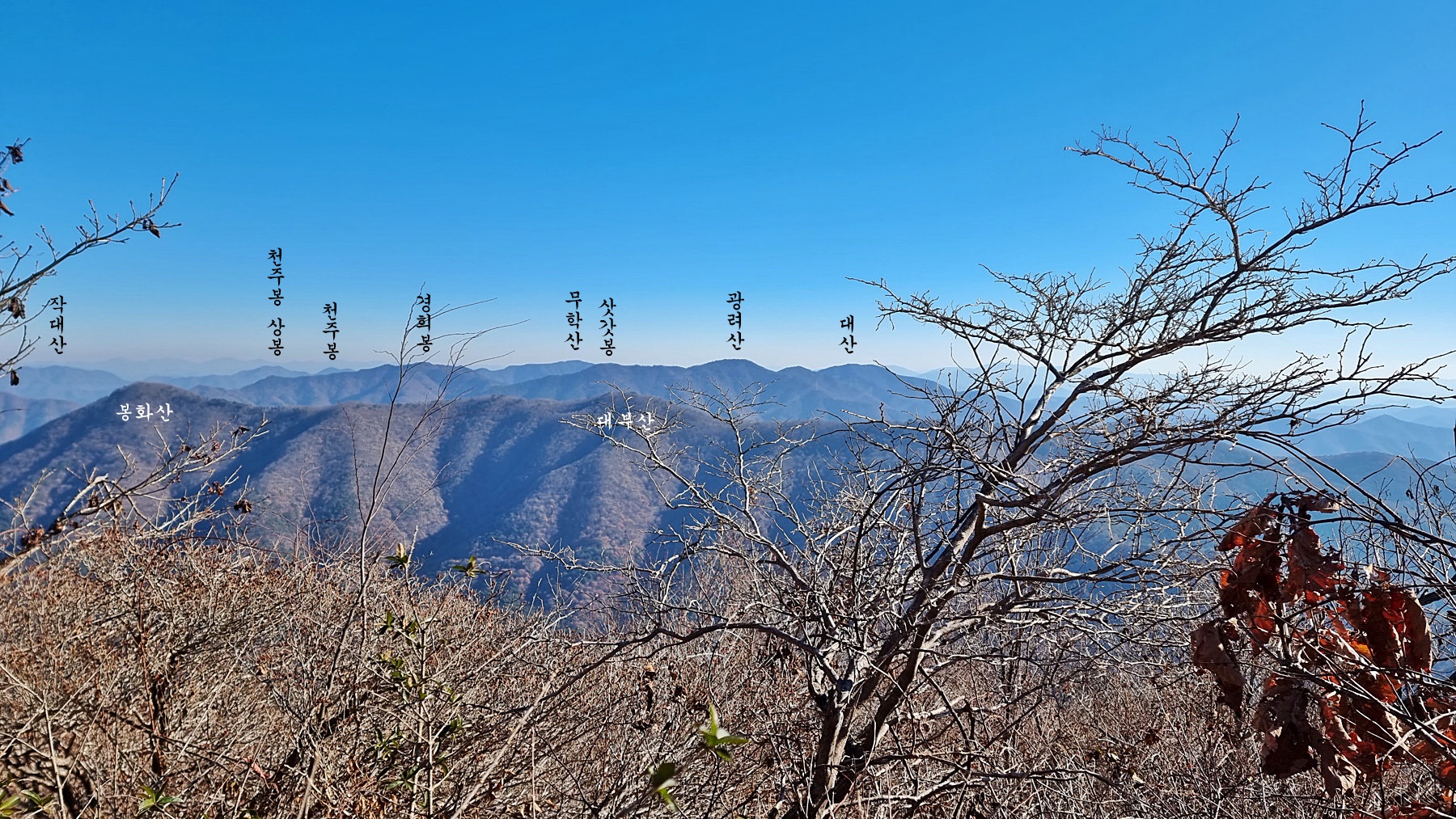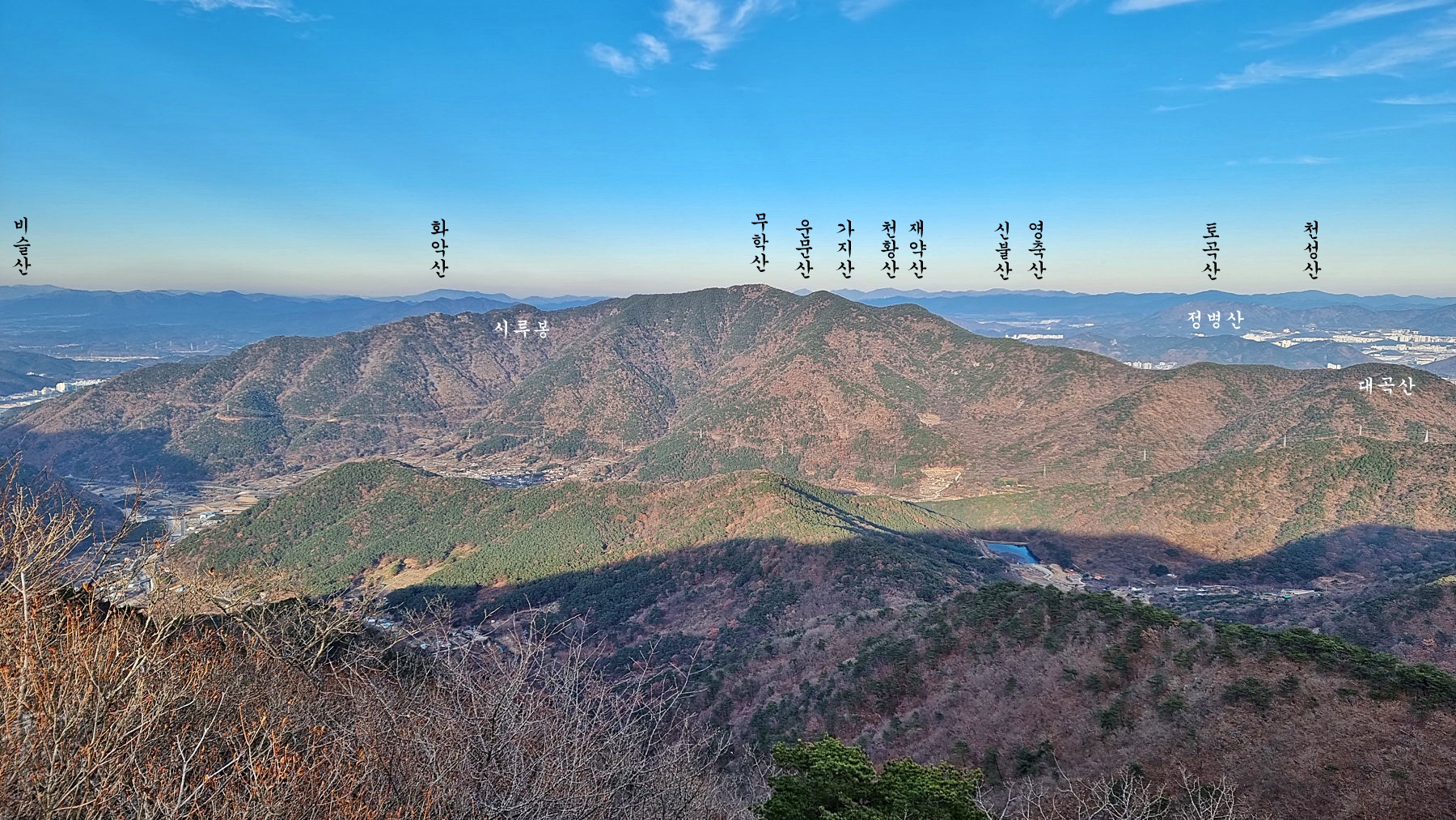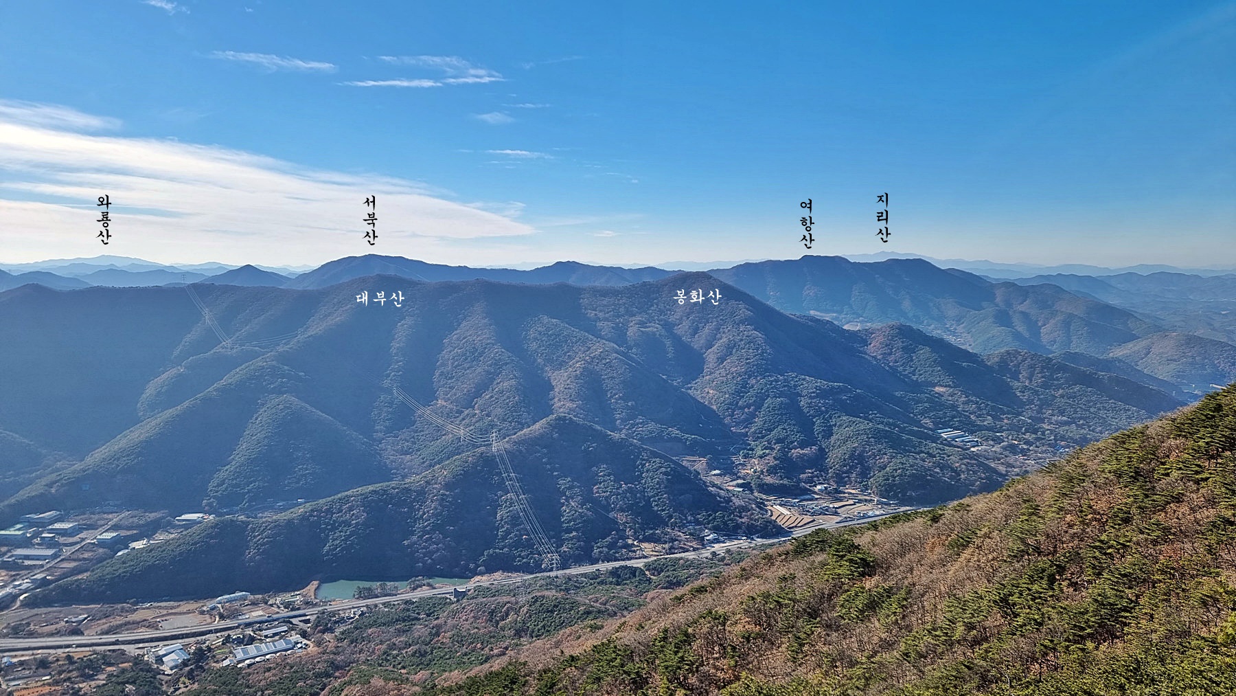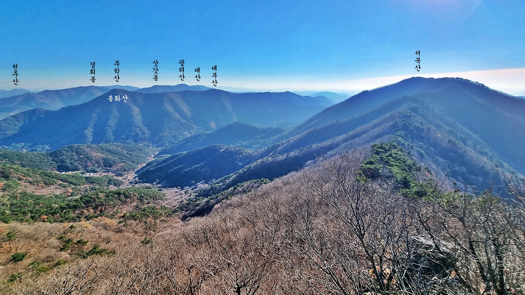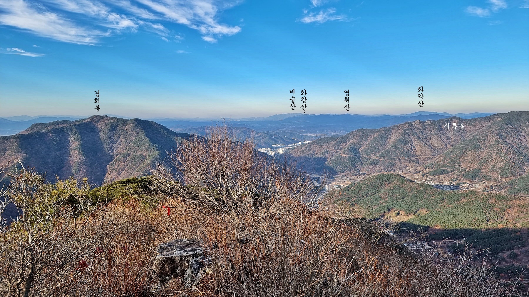 4. 코스 : 오곡재(비실재) ~ 미산령 ~ 미산봉 ~ 여항산 ~ 소무덤봉 ~ 서북산 ~ 감재고개 ~ 대부산 ~한치 ~ 삿갓봉 ~ 광려산 ~ 대산 ~ 윗바람재봉 ~ 바람재 ~ 쌀재고개
