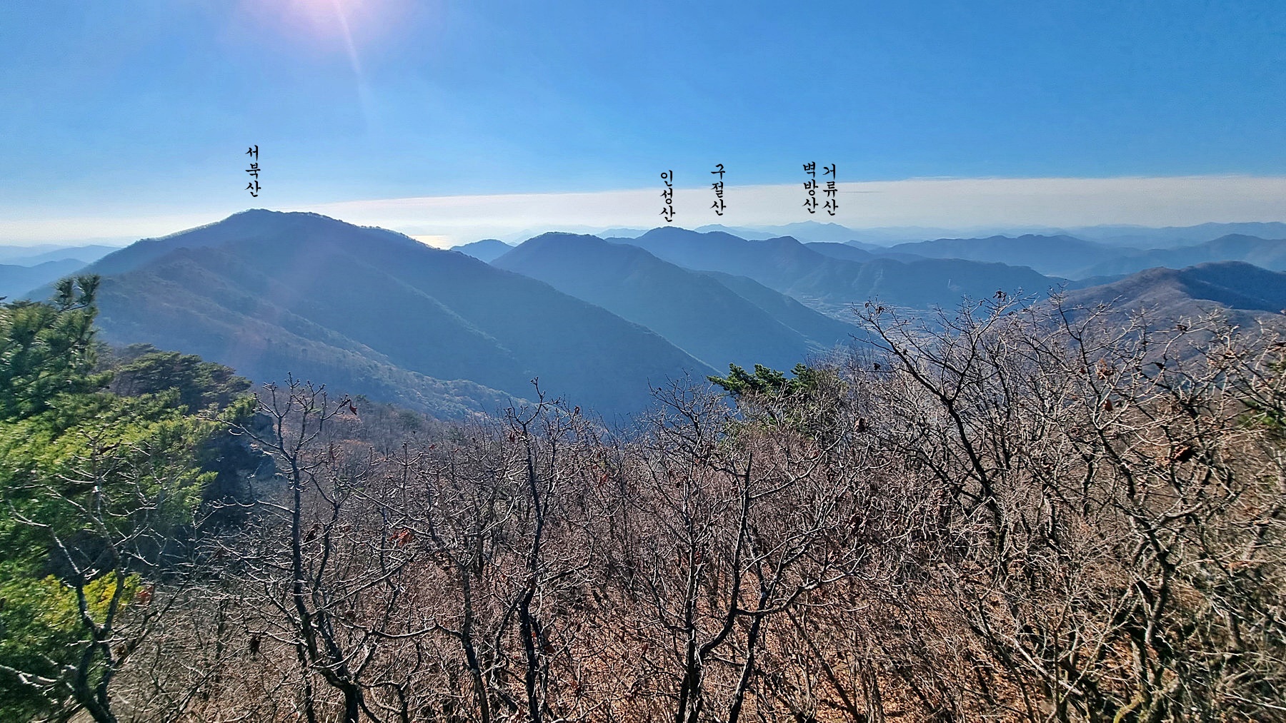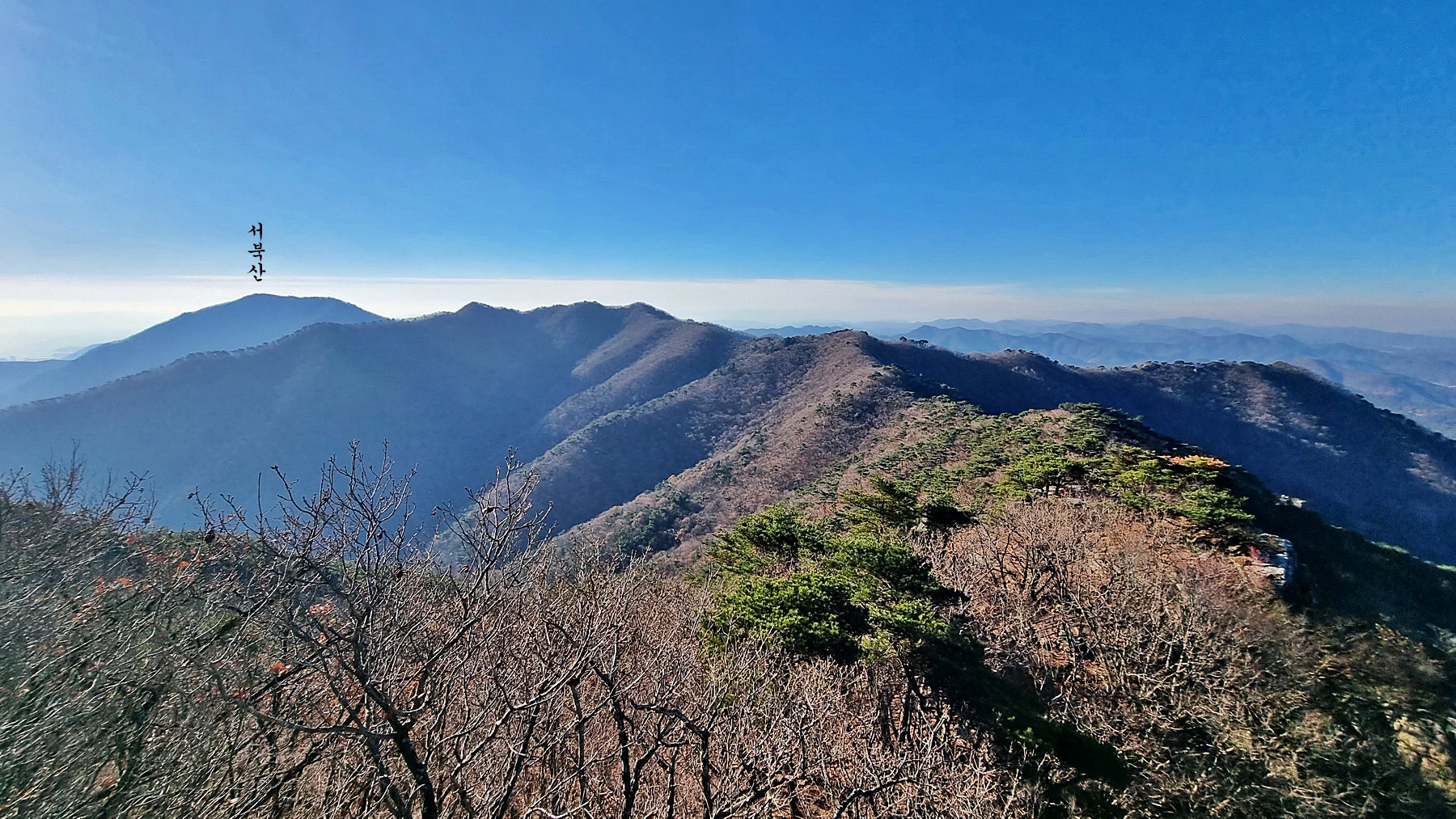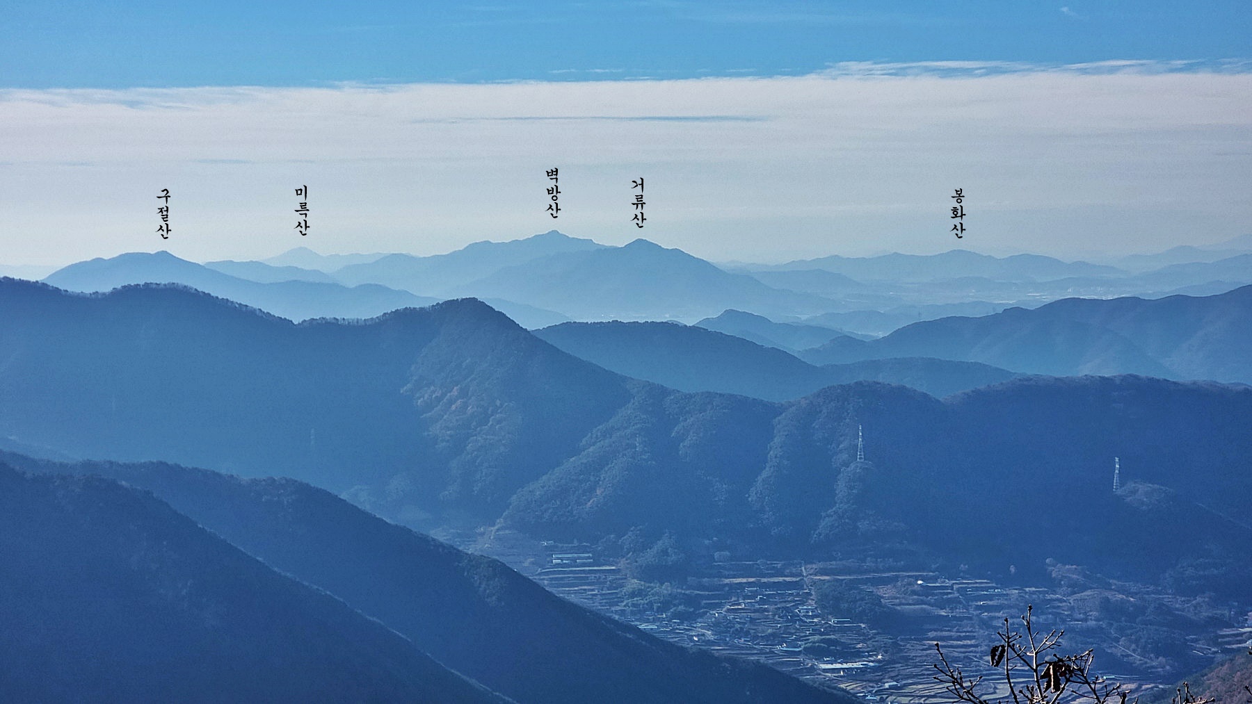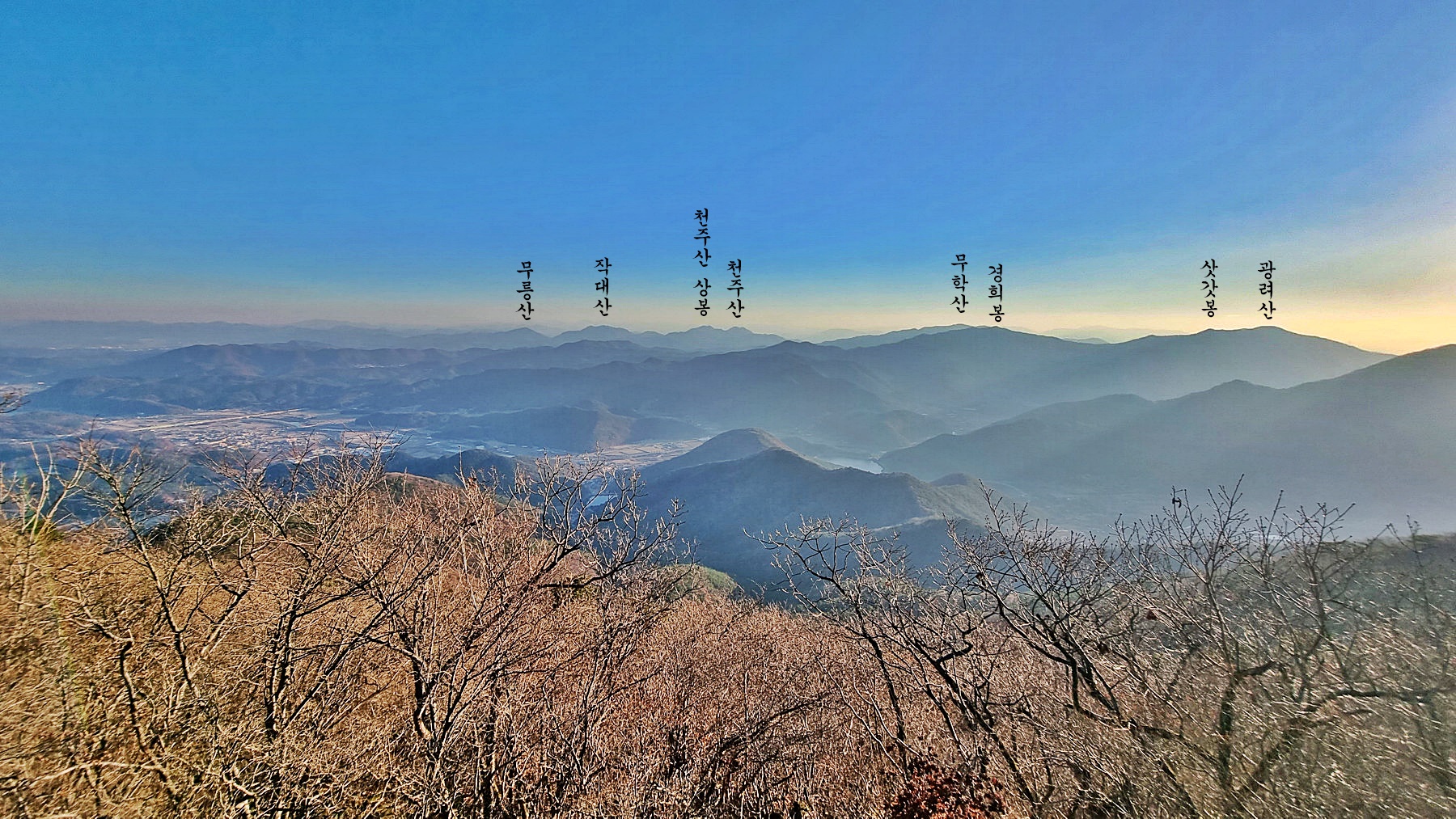 4. 코스 : 오곡재(비실재) ~ 미산령 ~ 미산봉 ~ 여항산 ~ 소무덤봉 ~ 서북산 ~ 감재고개 ~ 대부산 ~한치 ~ 삿갓봉 ~ 광려산 ~ 대산 ~ 윗바람재봉 ~ 바람재 ~ 쌀재고개