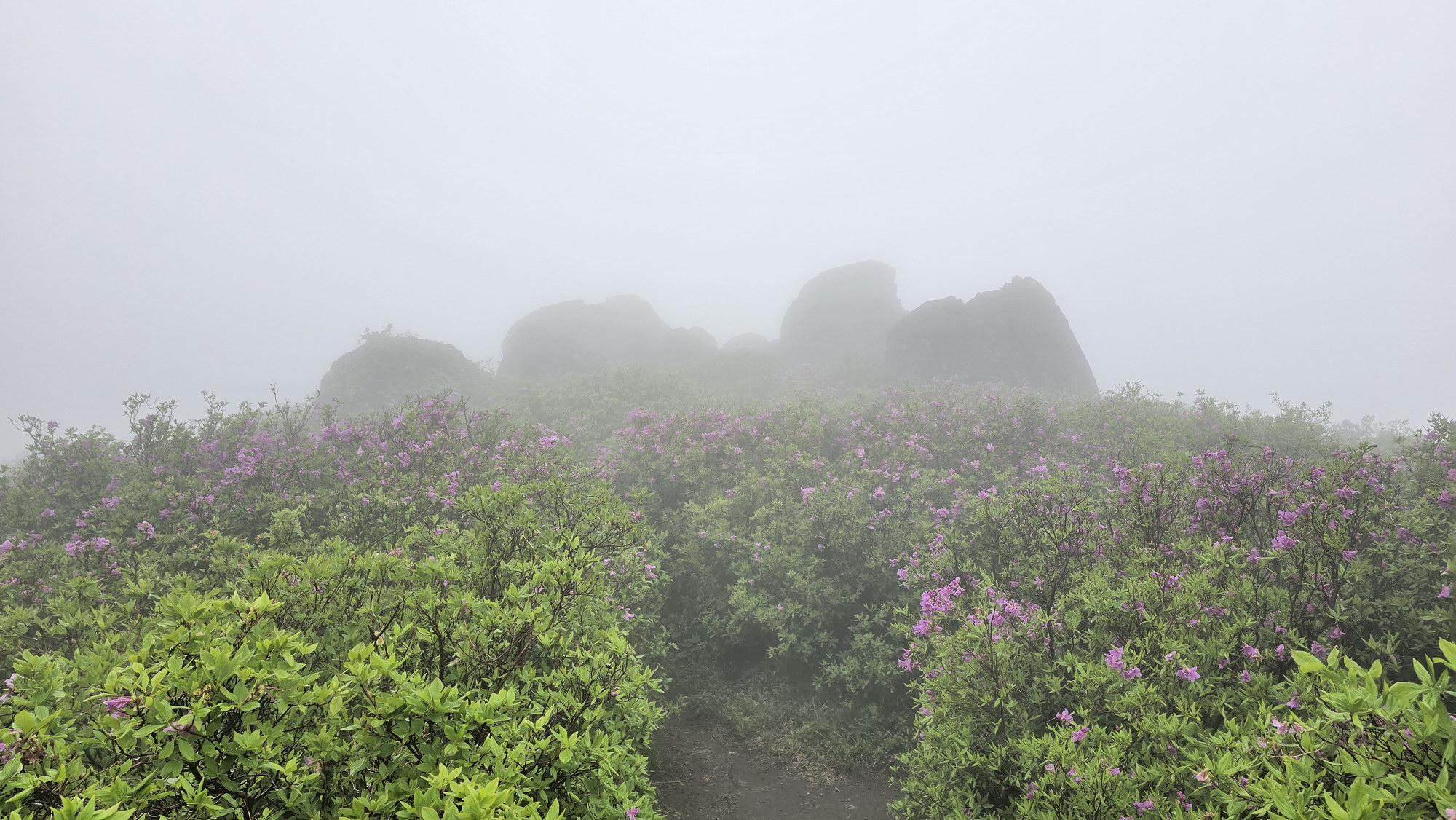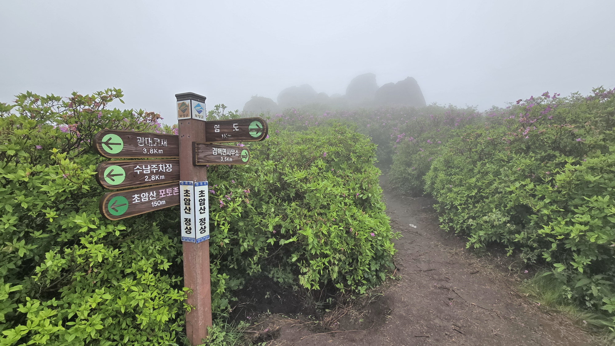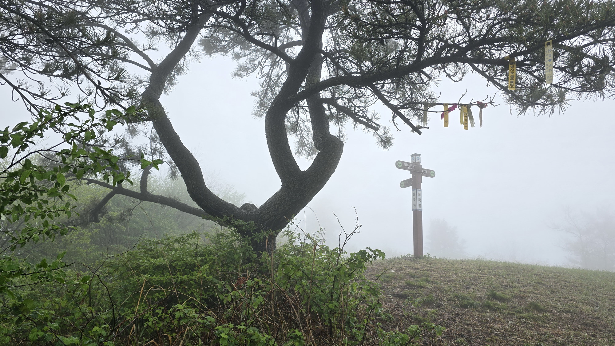 고운 자태의 철쭉꽃을 기대하고 먼길 마다 않고 한걸음에 달려갔건만 시기가 늦은 탓인지 기상조건 때문인지 정확히 알수 없지만 기대했던 철쭉은 없었고 아침 안개가 심하여 조망도 없었다. 한마디로 줄이자면 이번 산행은 망했다.