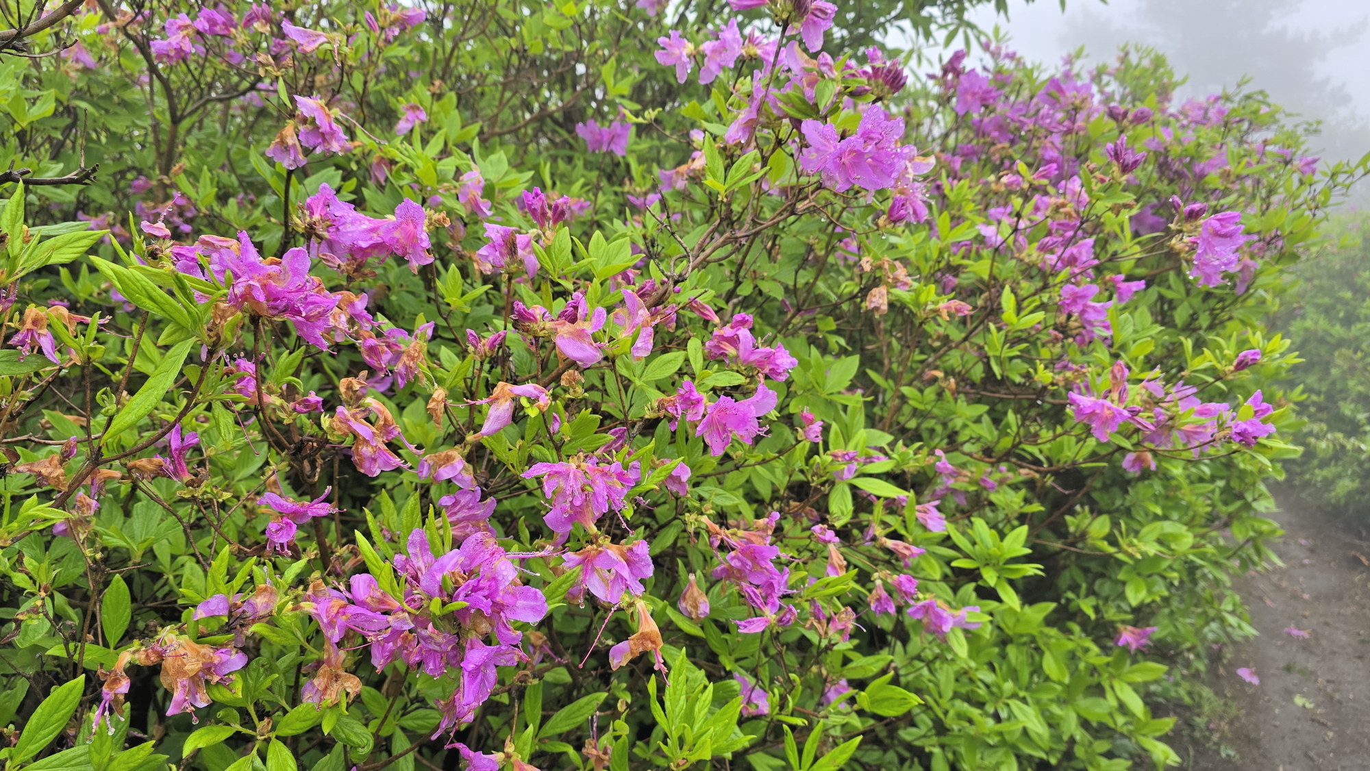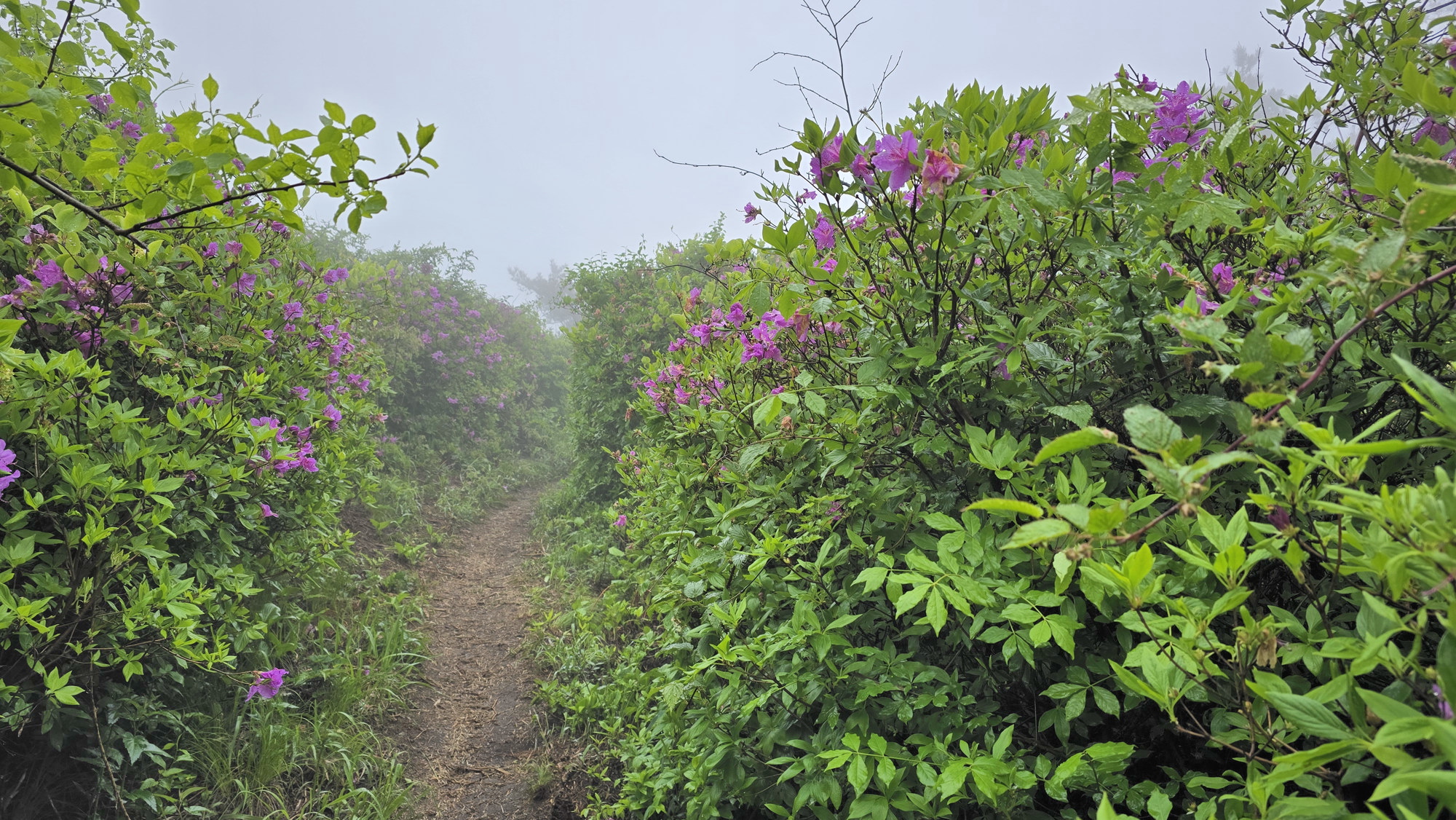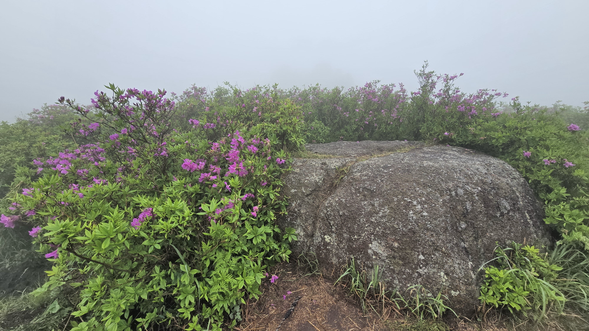 고운 자태의 철쭉꽃을 기대하고 먼길 마다 않고 한걸음에 달려갔건만 시기가 늦은 탓인지 기상조건 때문인지 정확히 알수 없지만 기대했던 철쭉은 없었고 아침 안개가 심하여 조망도 없었다. 한마디로 줄이자면 이번 산행은 망했다.
