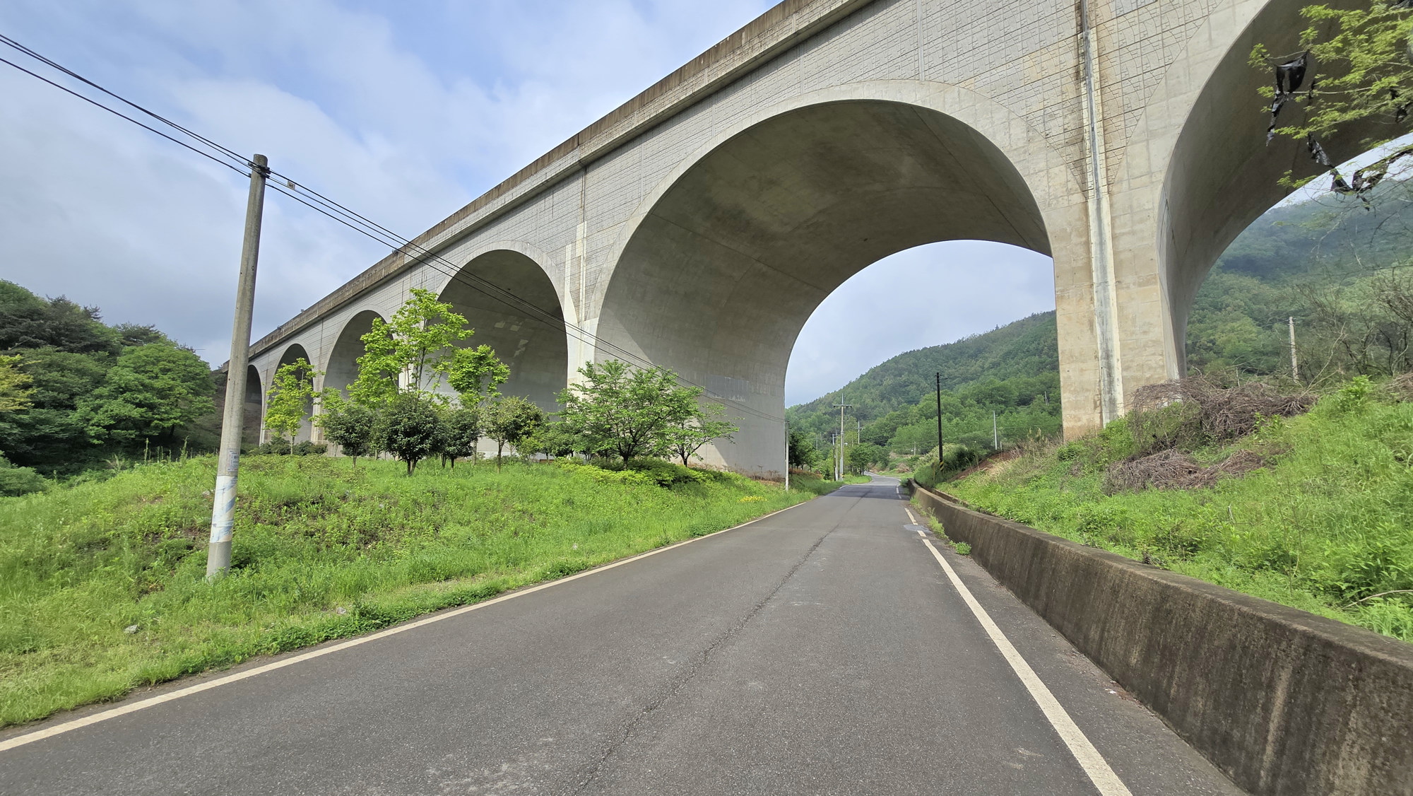 ▼ 남해고속도로 교각 아래를 통과하고