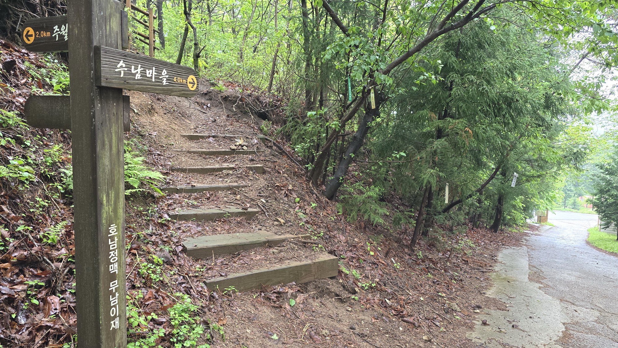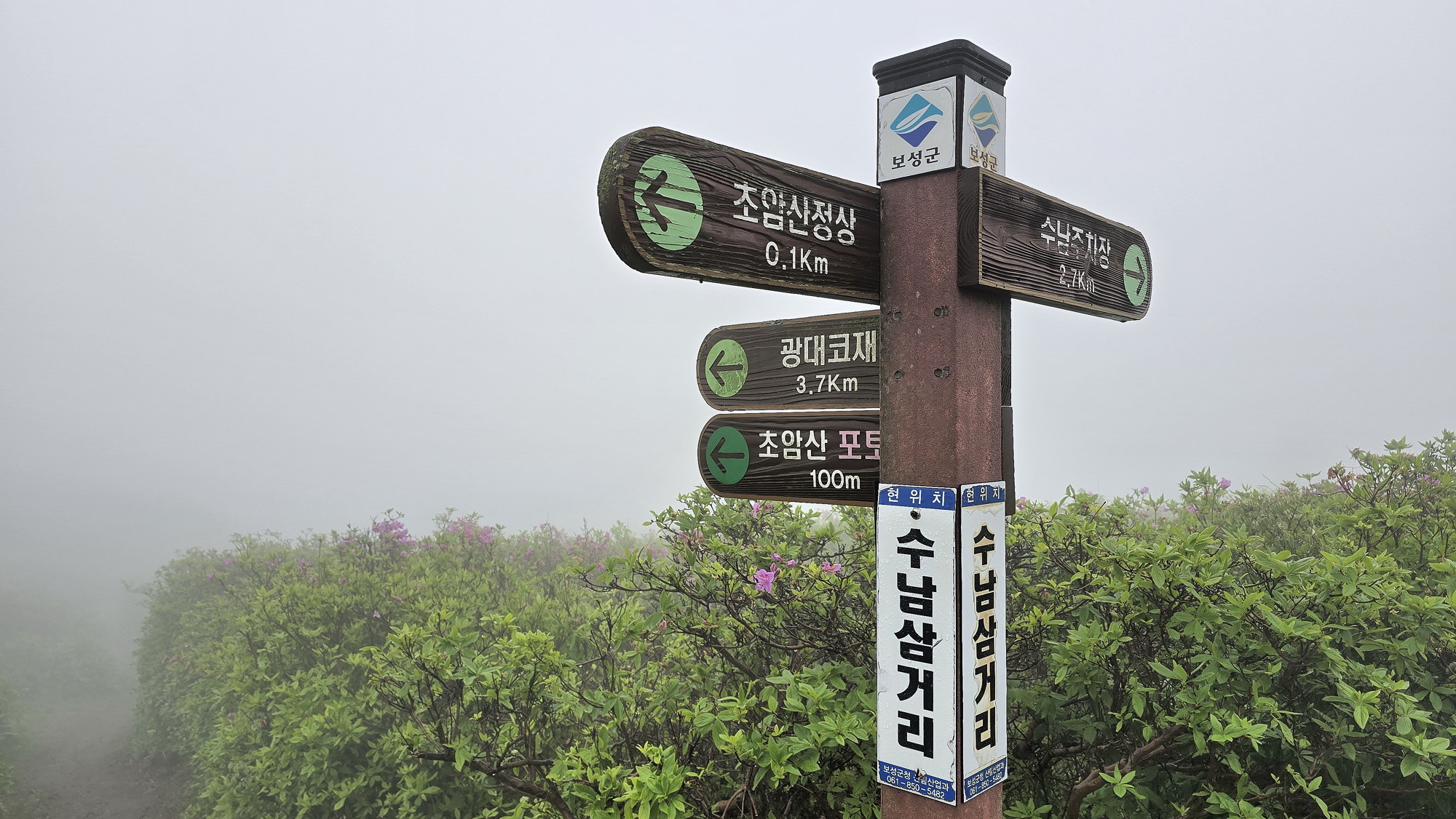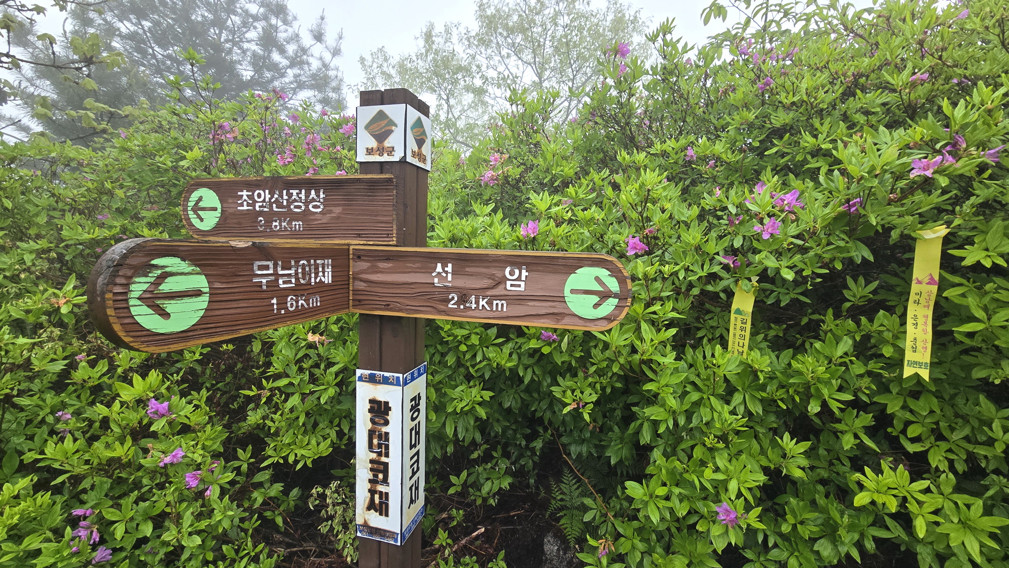 4. 코스 : 수남주차장~금화사지 갈림~수남삼거리~초암산 왕복~포토존~원수남삼거리~밤골재삼거리~철쭉봉~제3쉼터~광대코재~무남이재~윤제림~도로~수남주차장