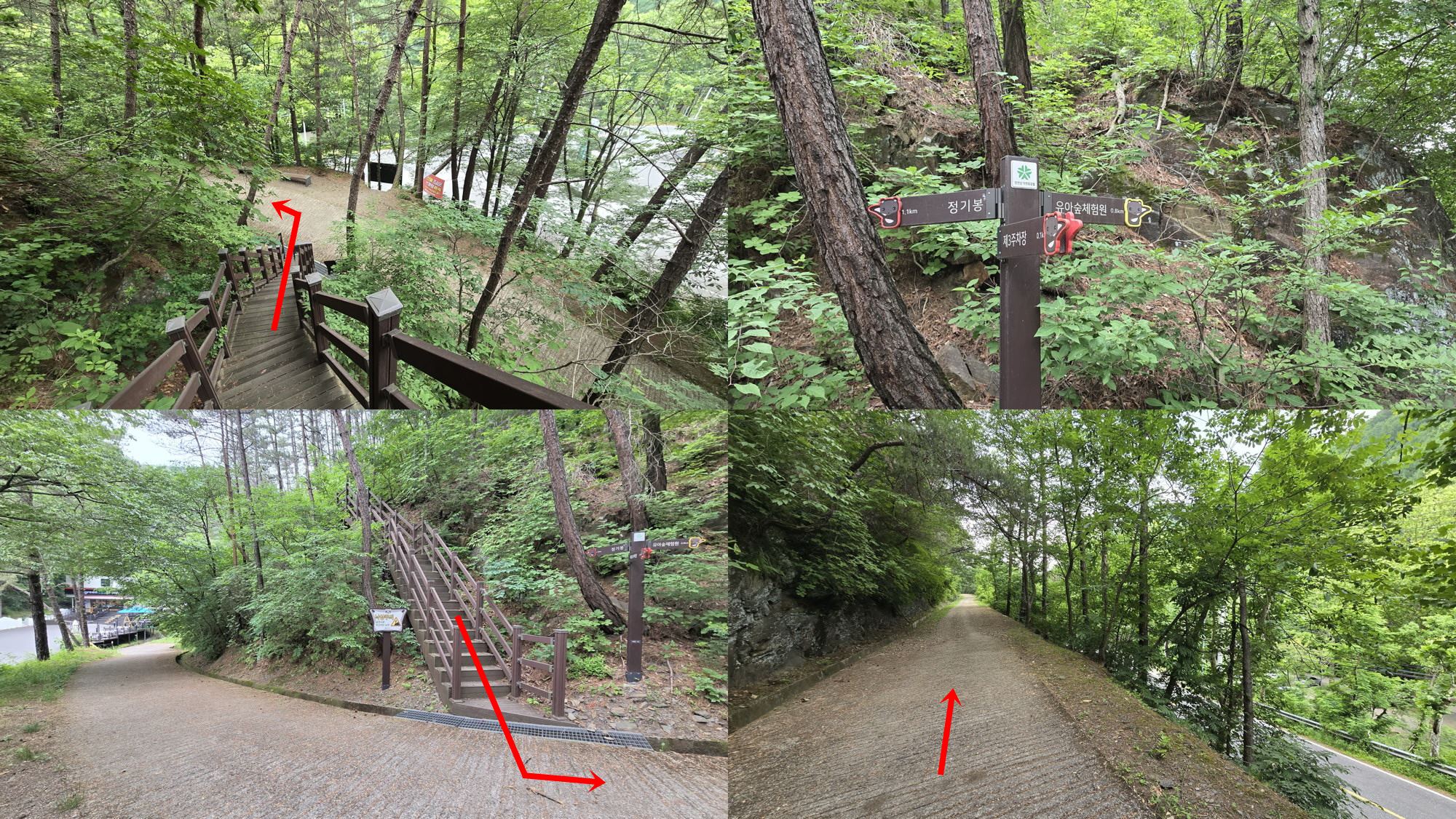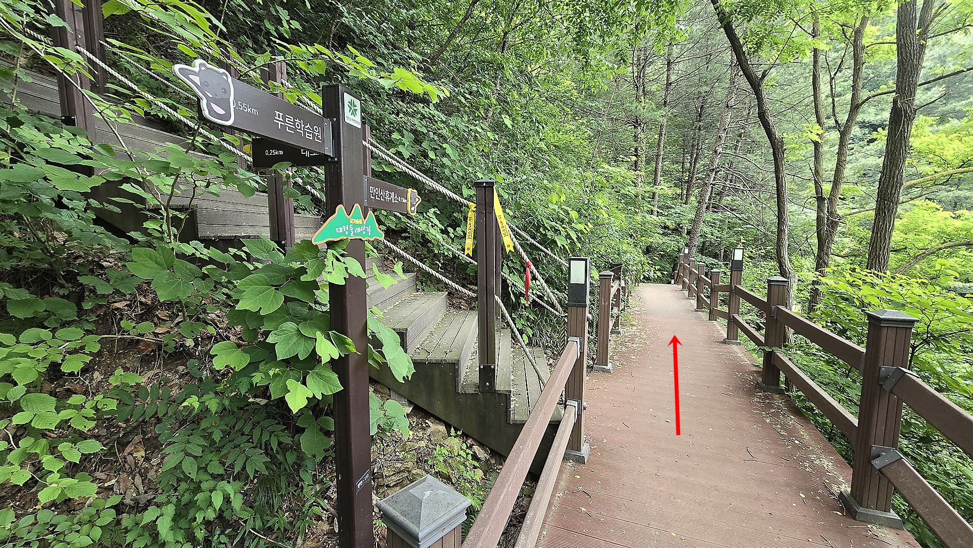 ▼ 사방댐 지점에서 무장애데크로드와 합류 후 숲길 진입