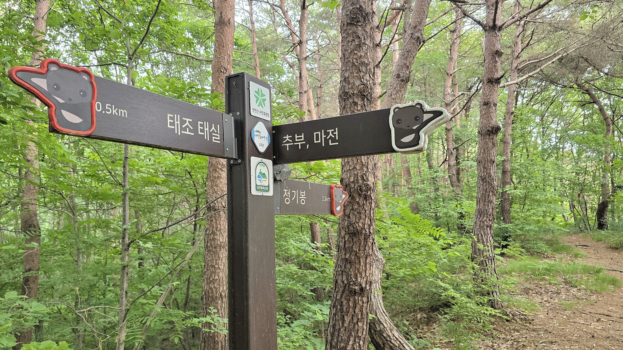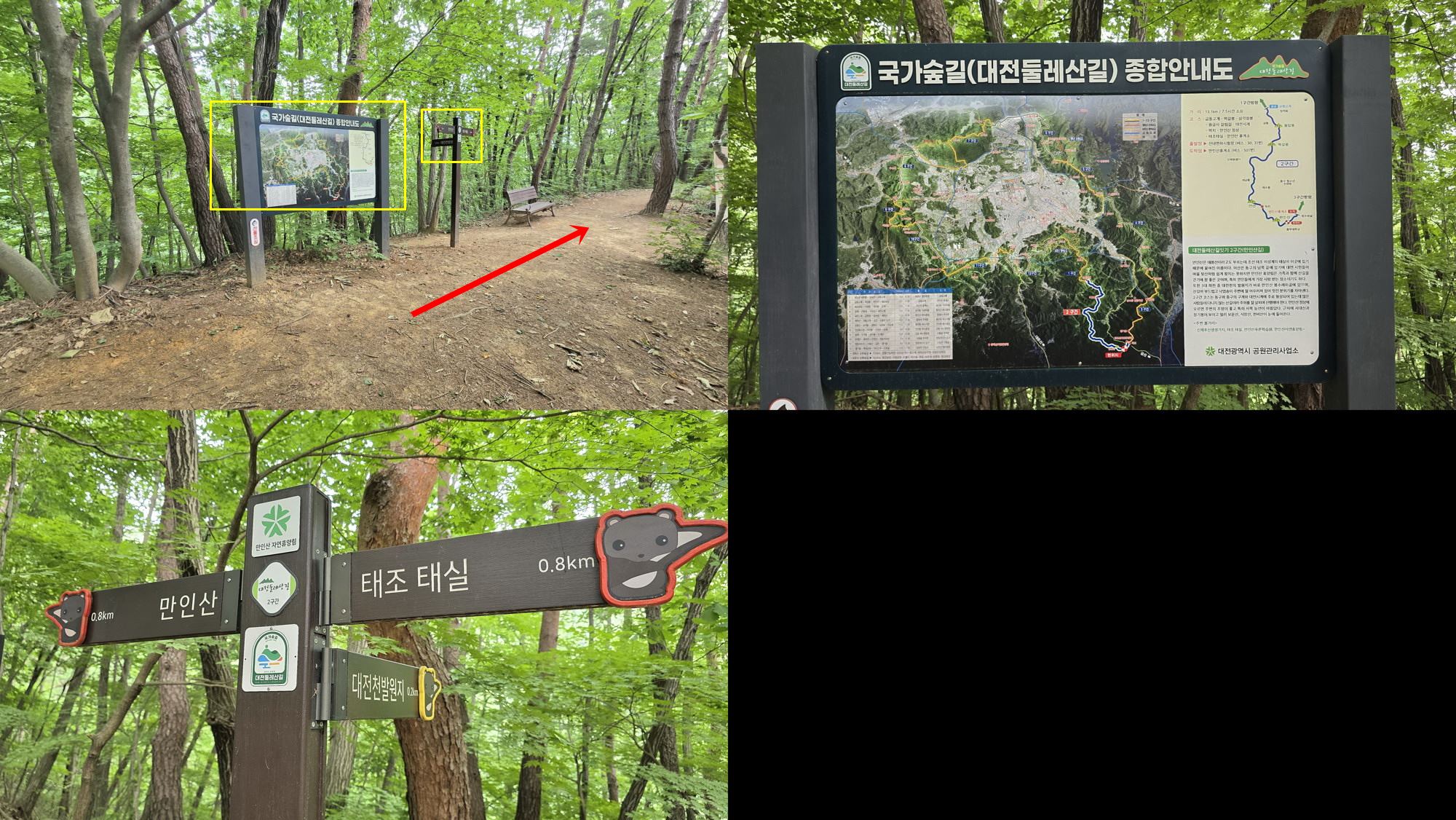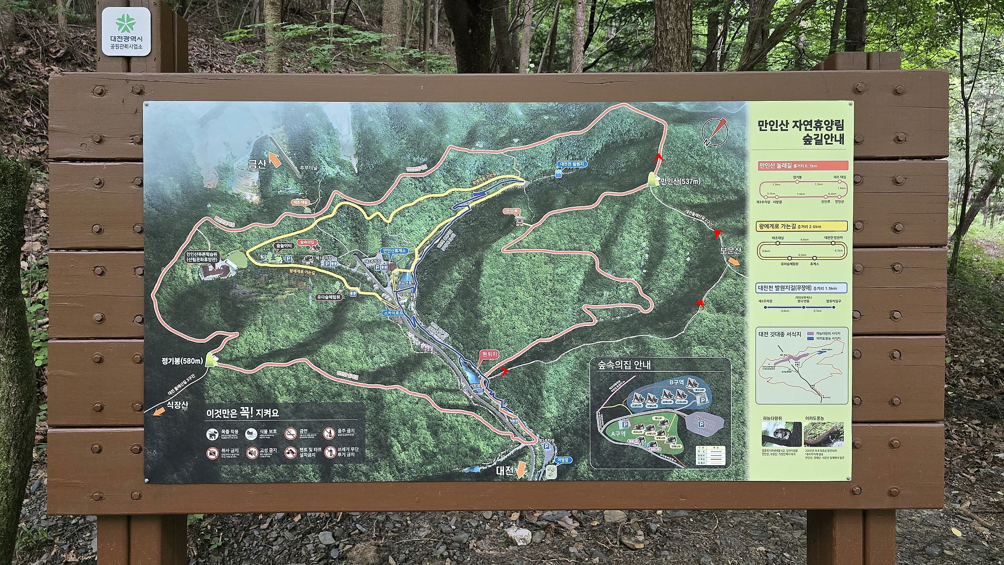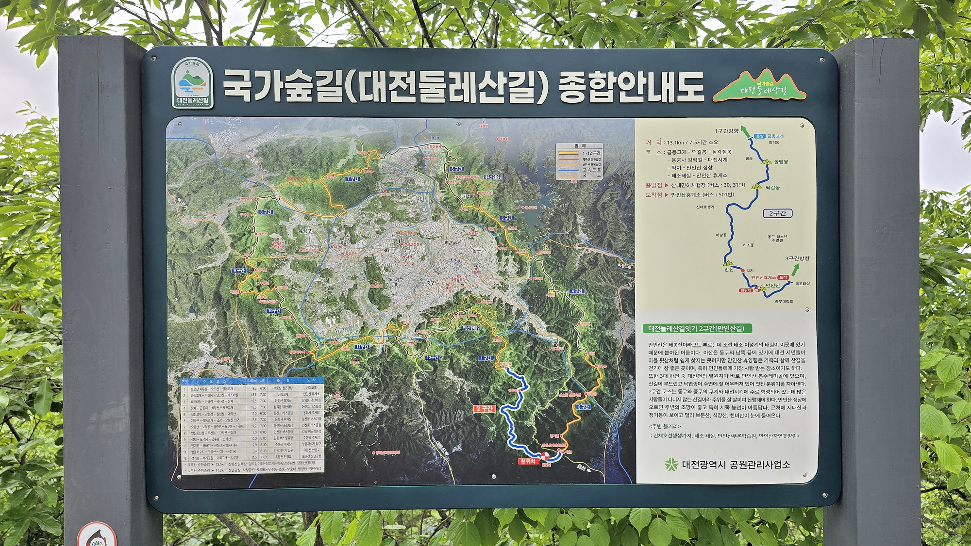 4. 코스 : 제2주차장(만인산휴게소)~대전천발원지길~사방댐~등산로입구~보문산갈림~만인산~태실~정기봉~제3주차장~제1주차장~제2주차장