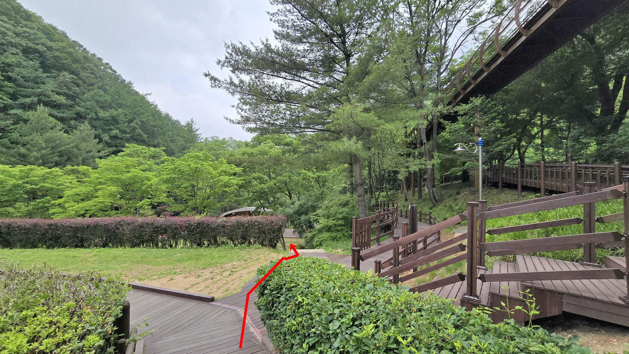 ▼ 무장애데크로드가 아닌 비포장포로를 따르고(나중에 합류)