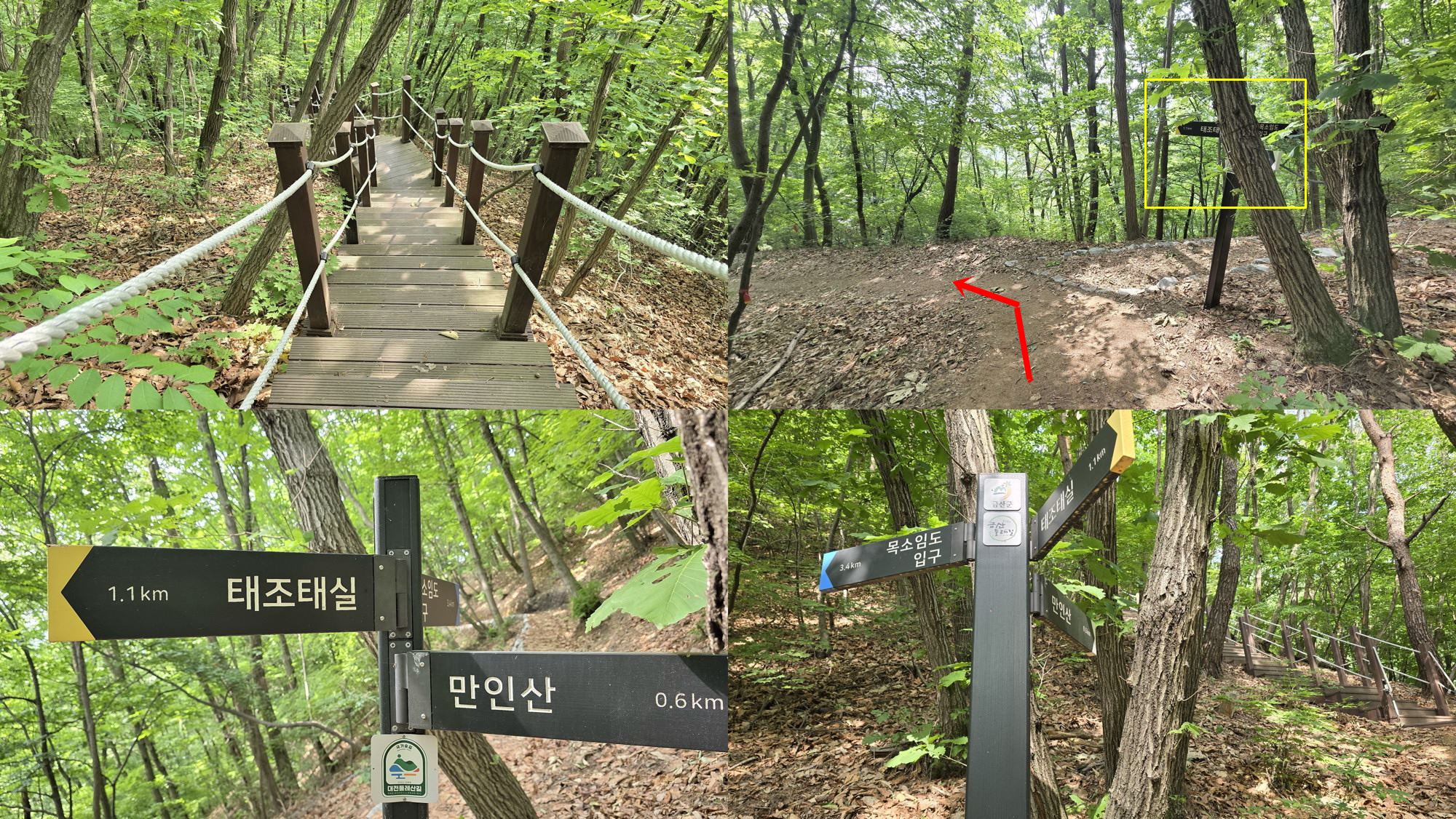 ▼ 데크로드로 진행하여 만인산휴게소로 갈 수도 있지만 유아숲체험원 방향으로