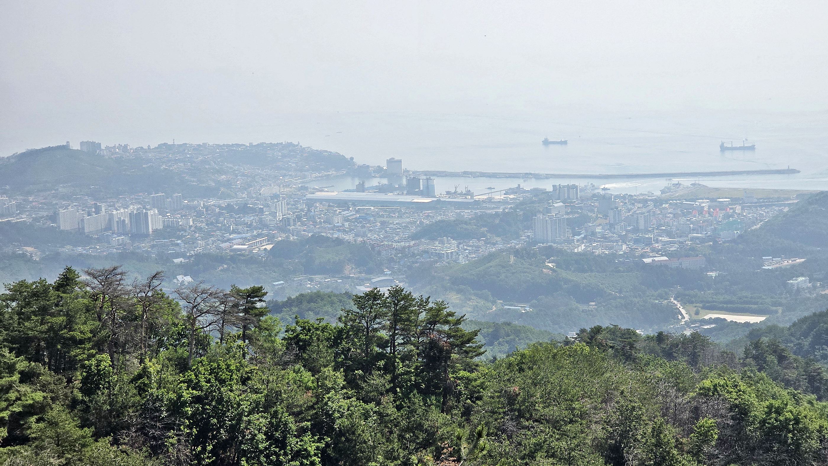 ▼ 어제 해파랑길 33코스 중 한섬해변부터 묵호항까지 트레킹한 시발점 김추산을 가늠해보고