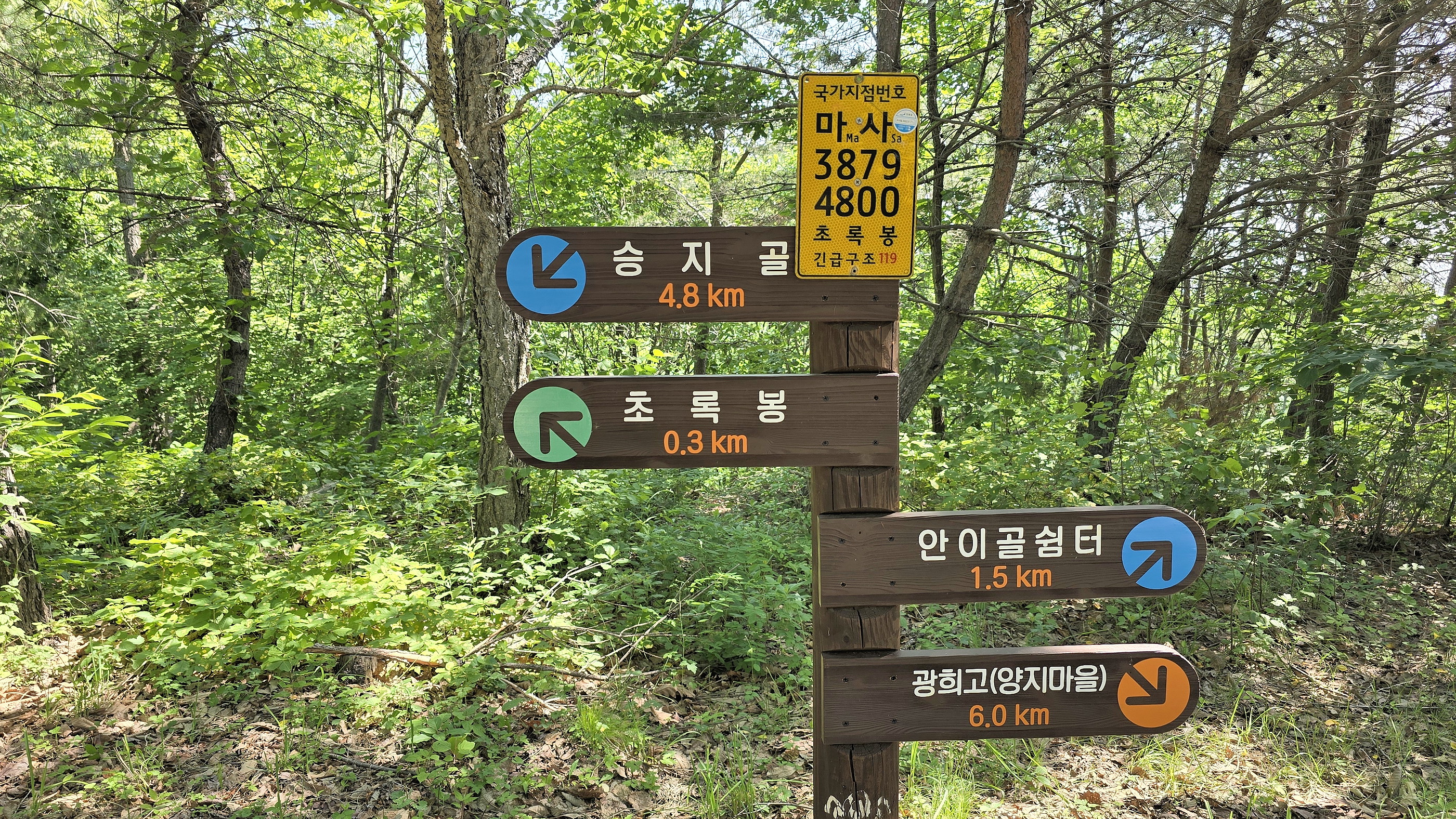 ▼ 일출감상 후 망상해수욕장 내 베이커리카페 '클램'에서 커피와 빵으로 간단히 아침요기 후 초록봉송신소까지 자차로 이동하여 약 300미터 거리인 초록봉 봉찍기에 나서고