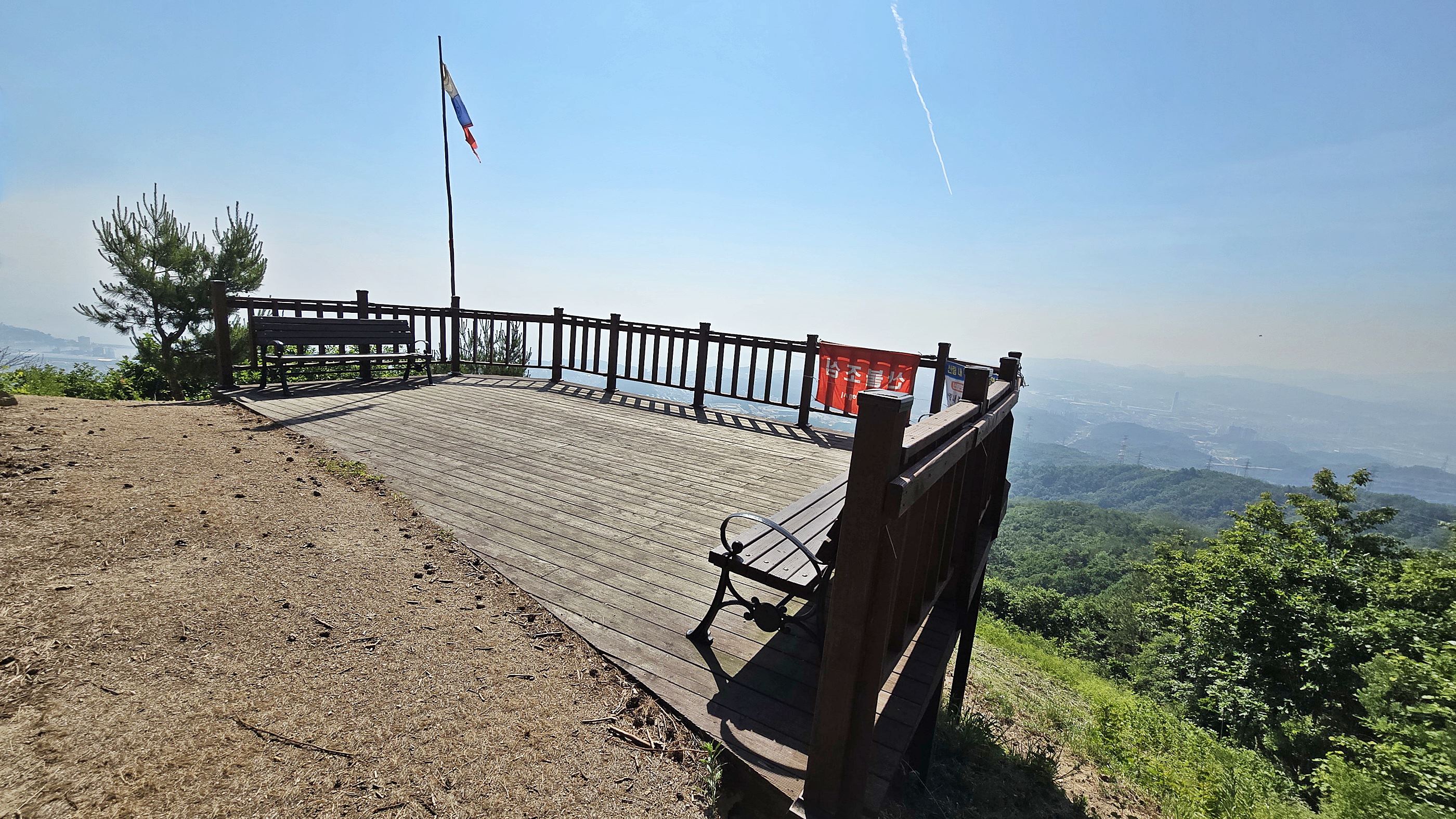 ▼ 전망대에 이르러 조망을 살피나 날씨가 도와주지 않고