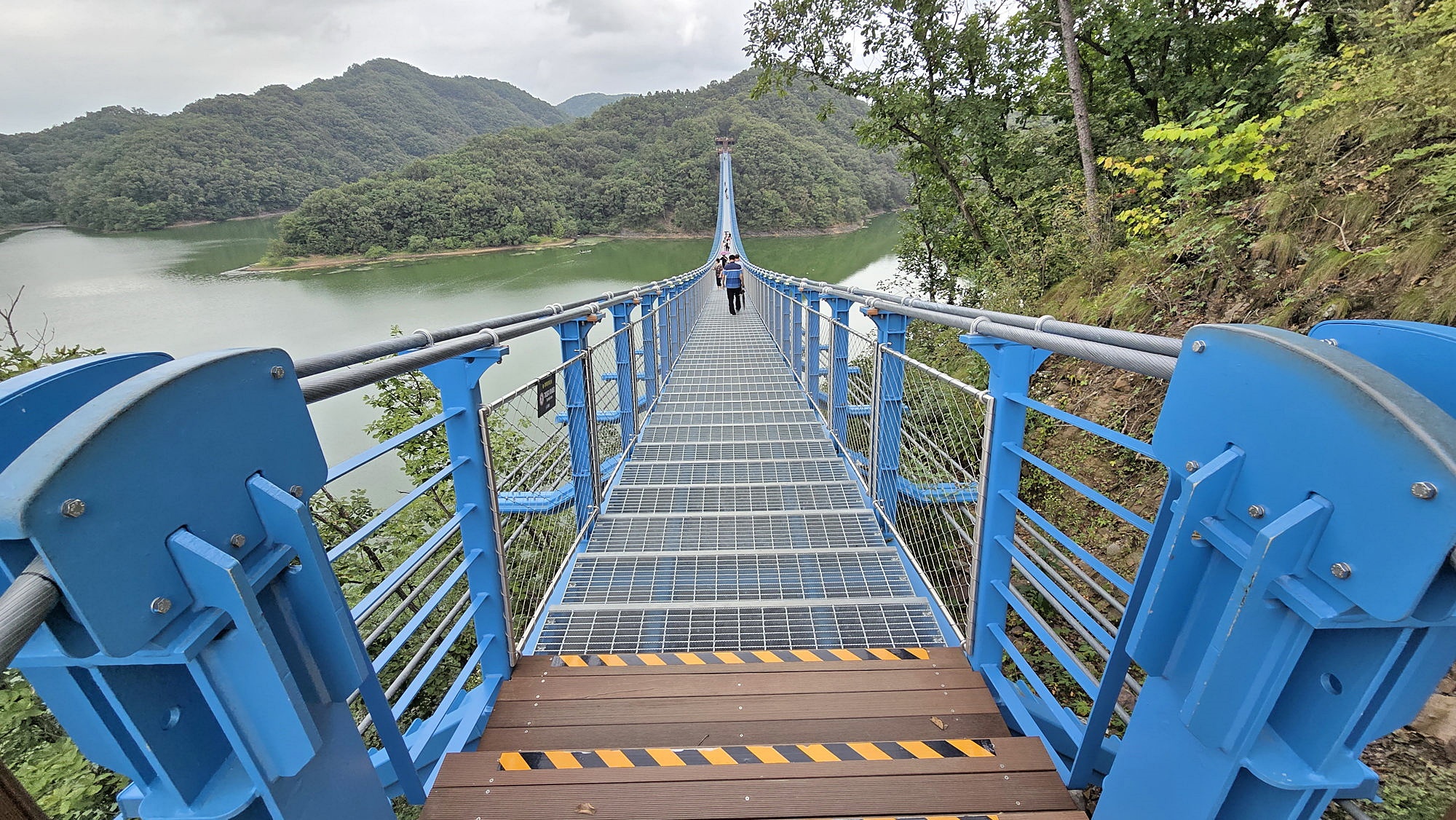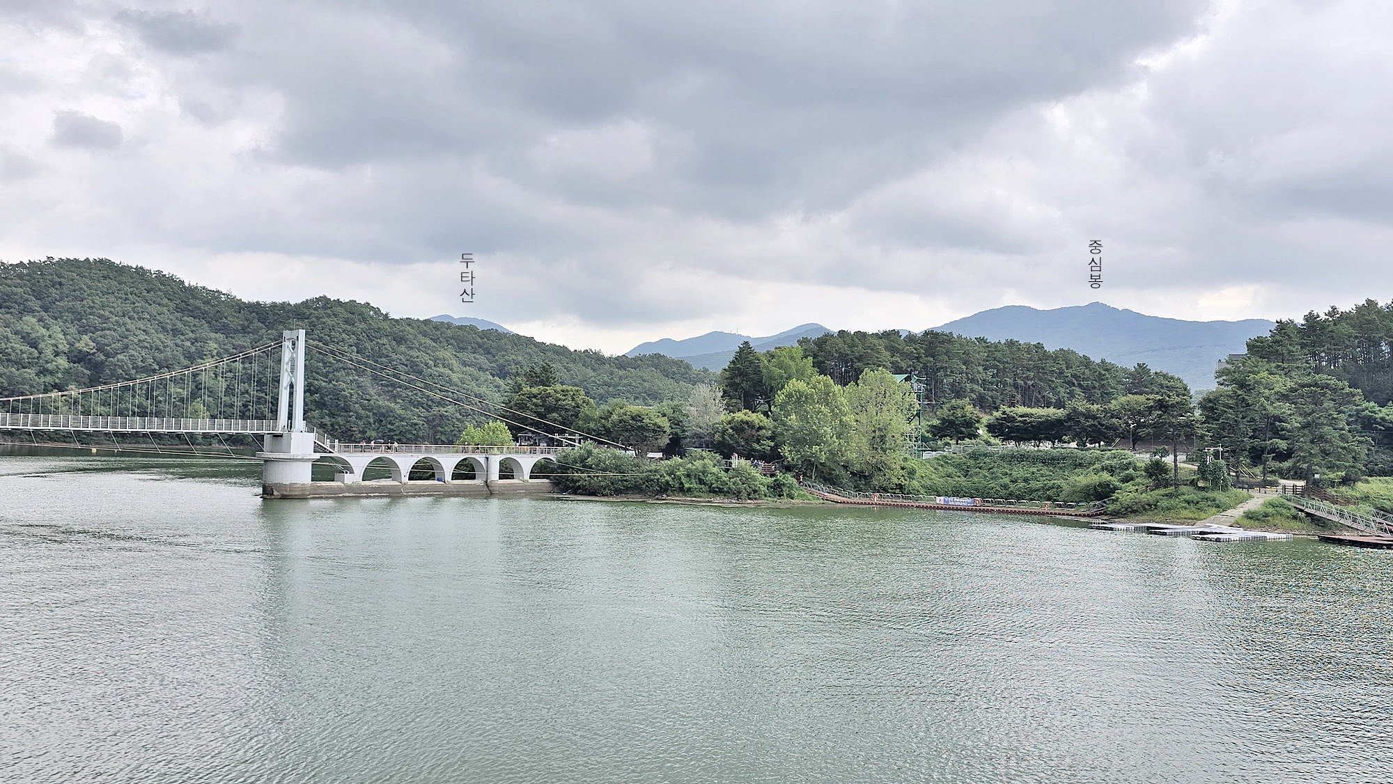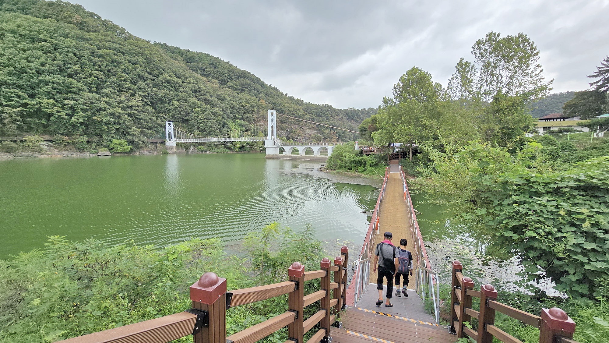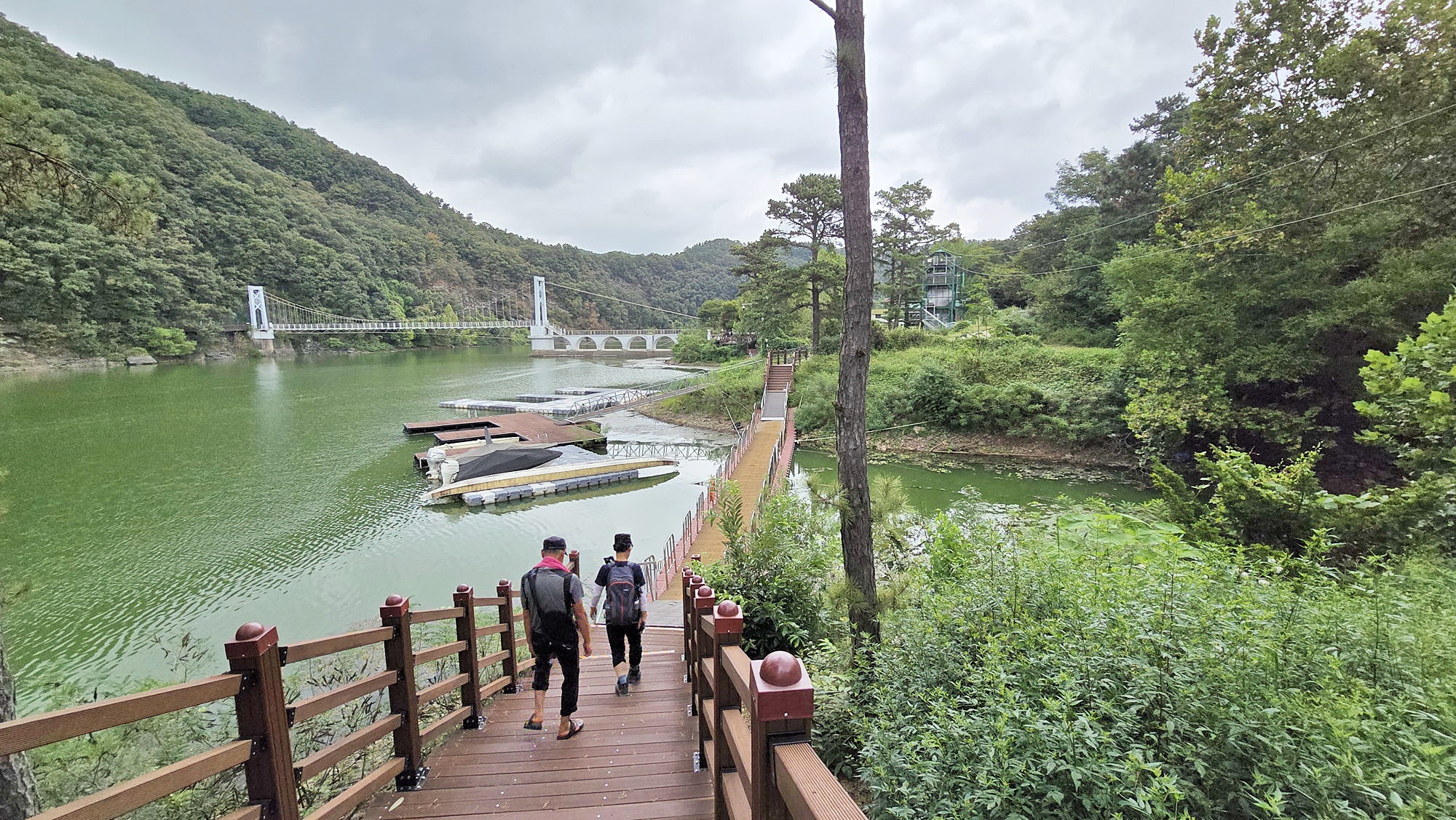 4. 코스 : 주차장~농다리~천년정~성황당~미르숲길~미르전망대~정자~황토맨발숲길~미르309~수변둘레길~하늘다리~초롱길~야외음악당~성황당~부교~주차장