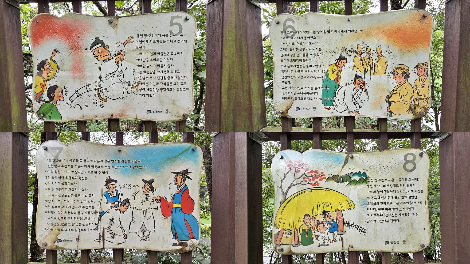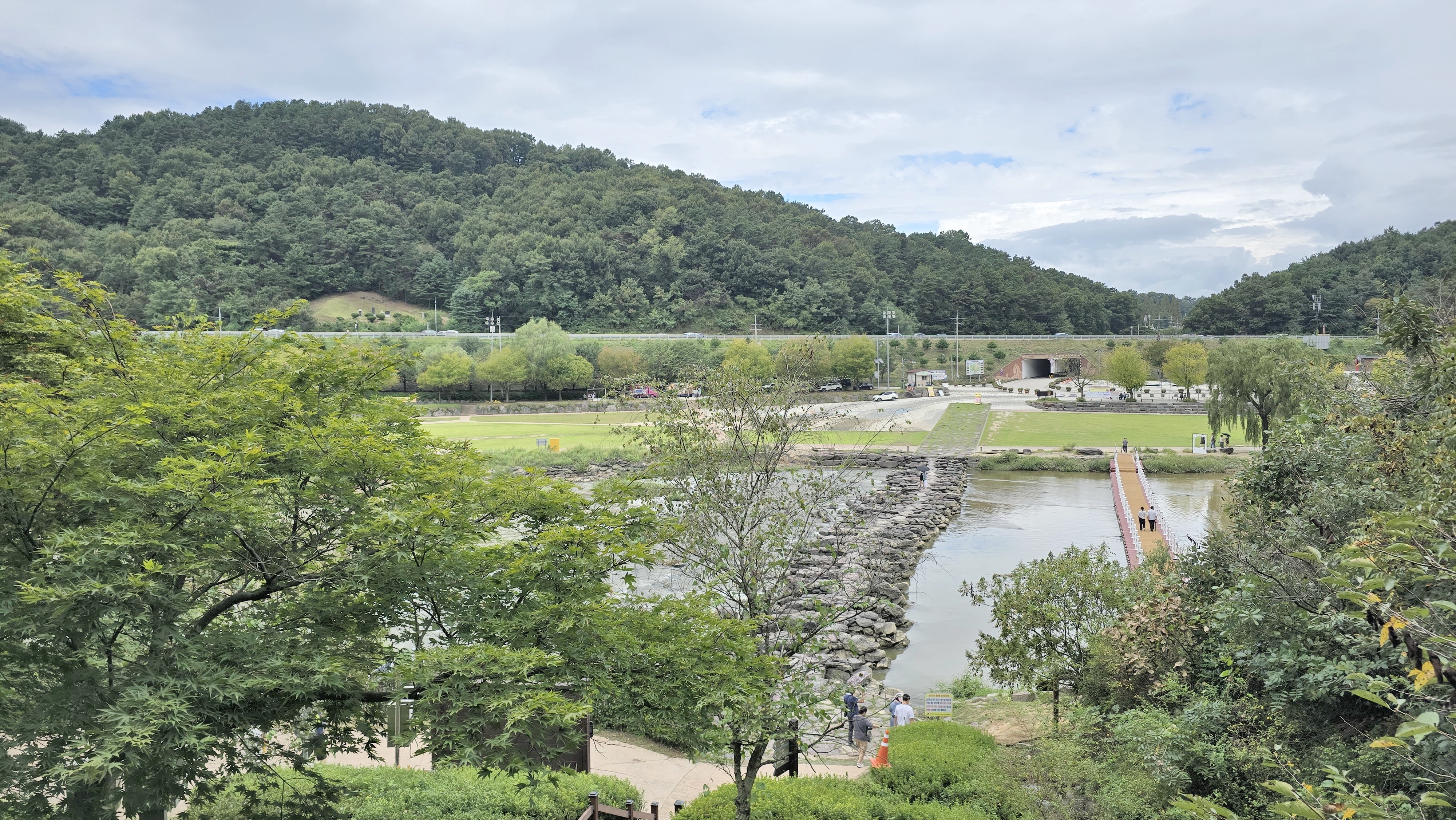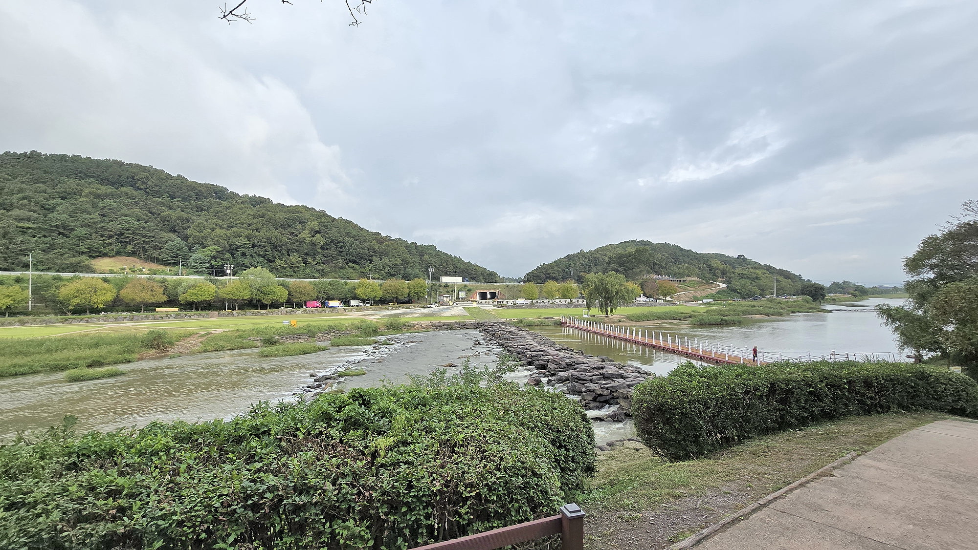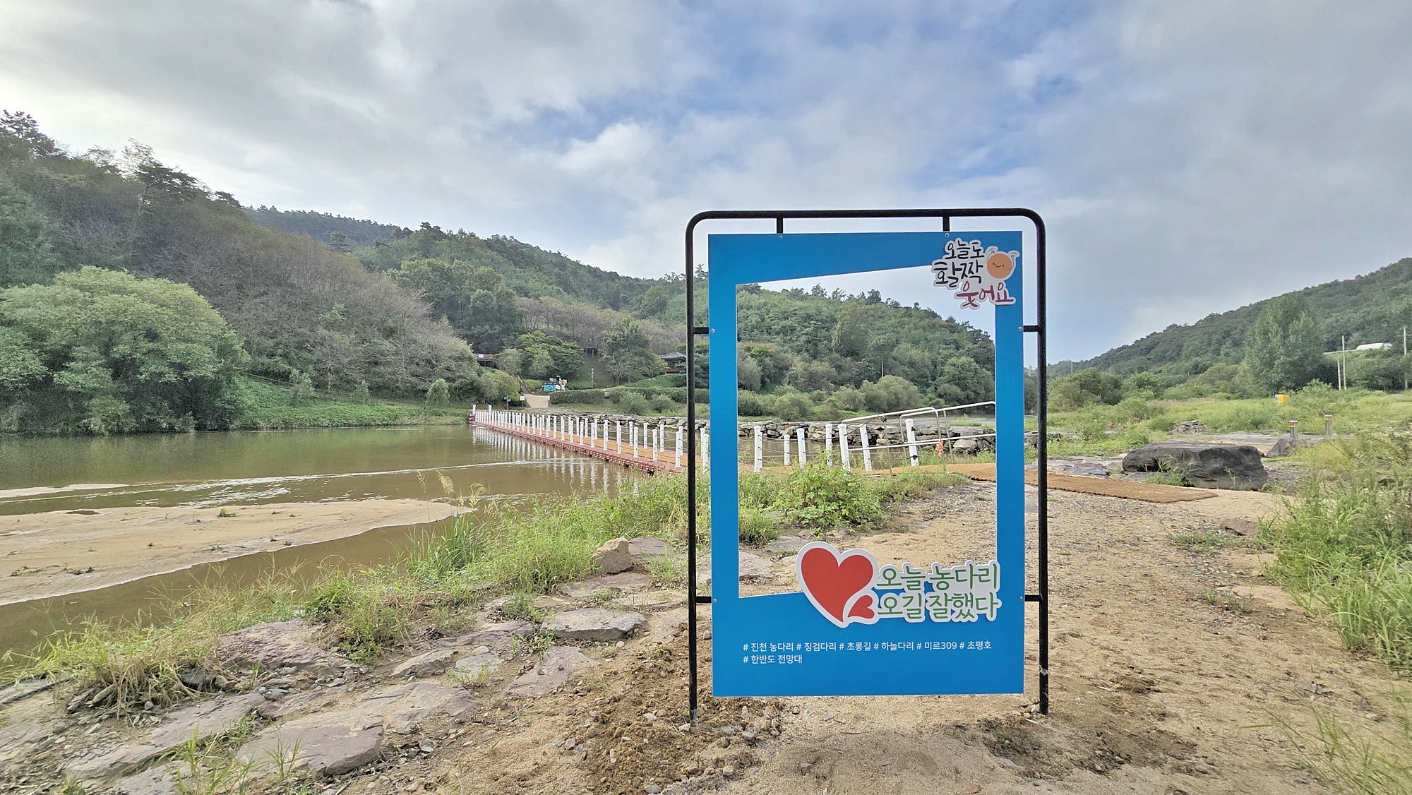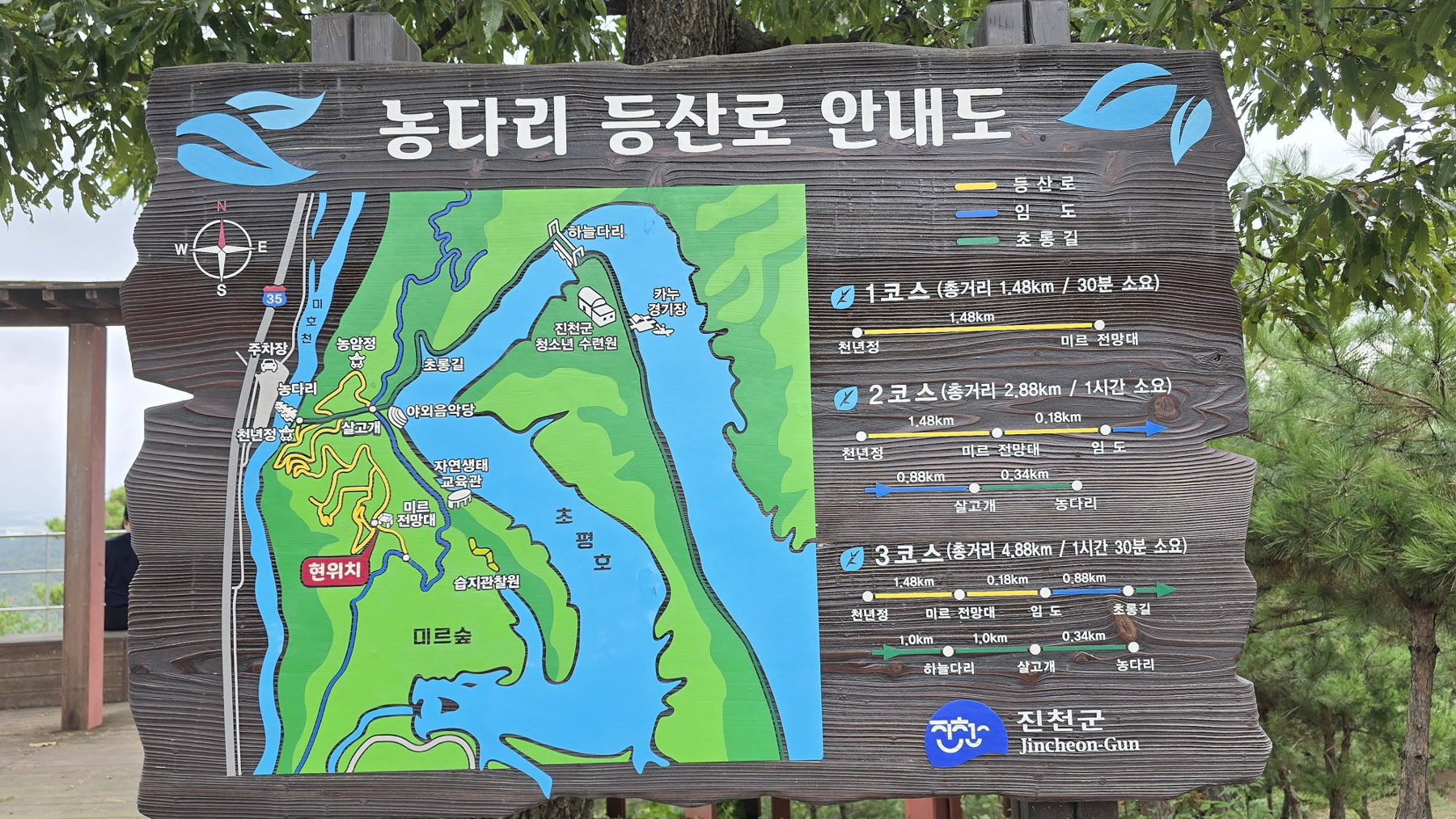 4. 코스 : 주차장~농다리~천년정~성황당~미르숲길~미르전망대~정자~황토맨발숲길~미르309~수변둘레길~하늘다리~초롱길~야외음악당~성황당~부교~주차장