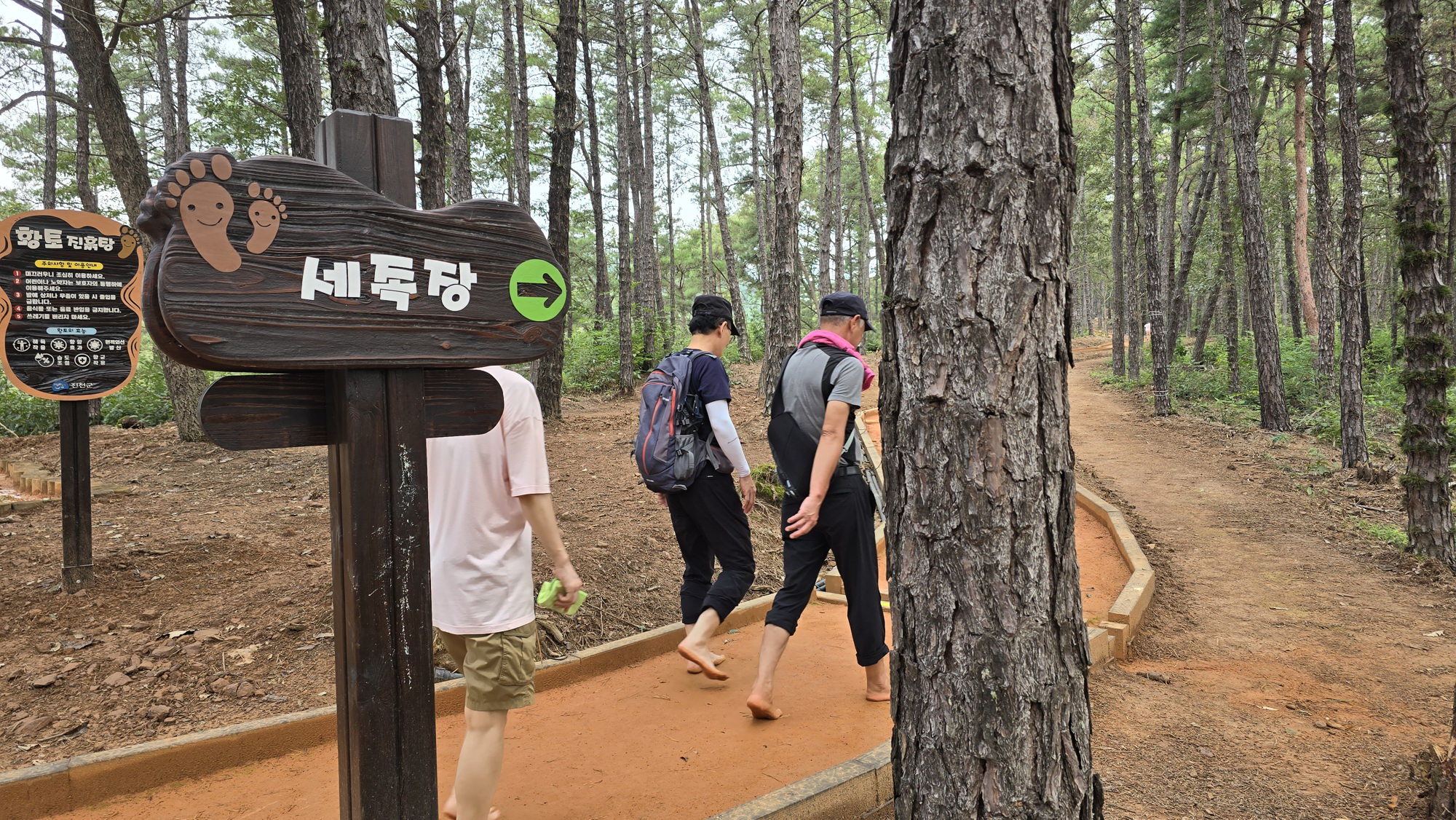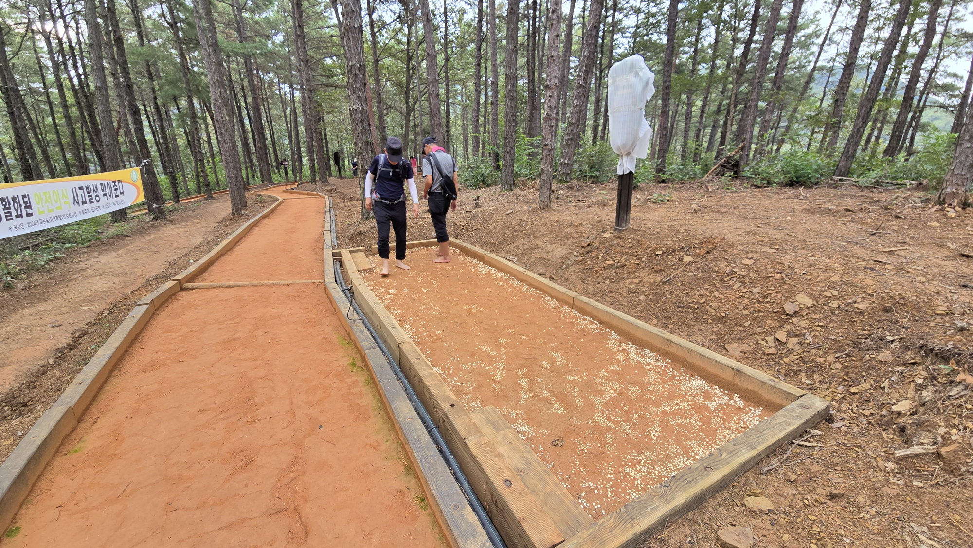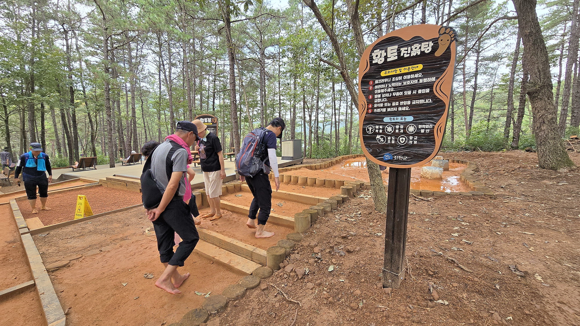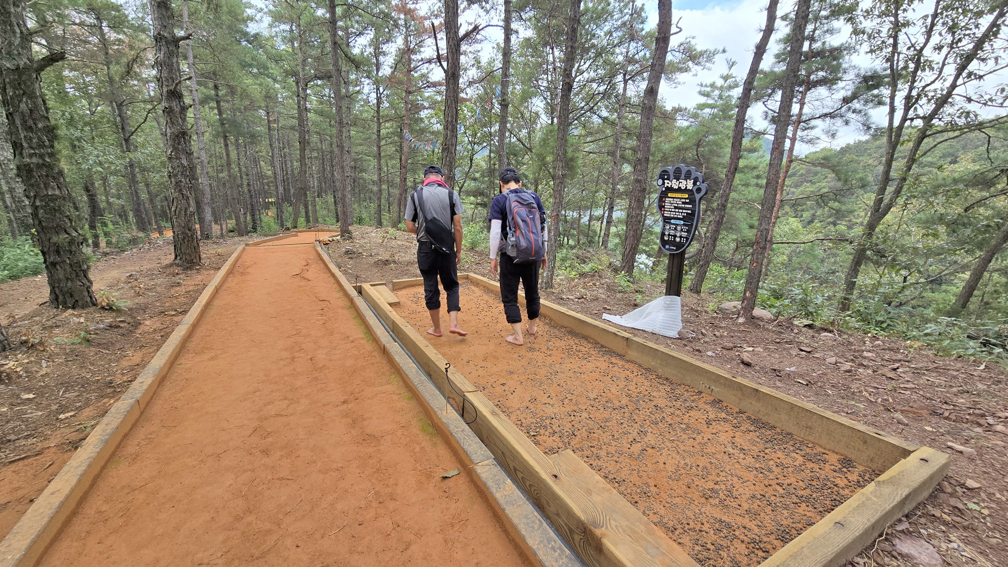 ▼ 정자를 끼고 돌아 하산하여 황토맨발숲길 입구로