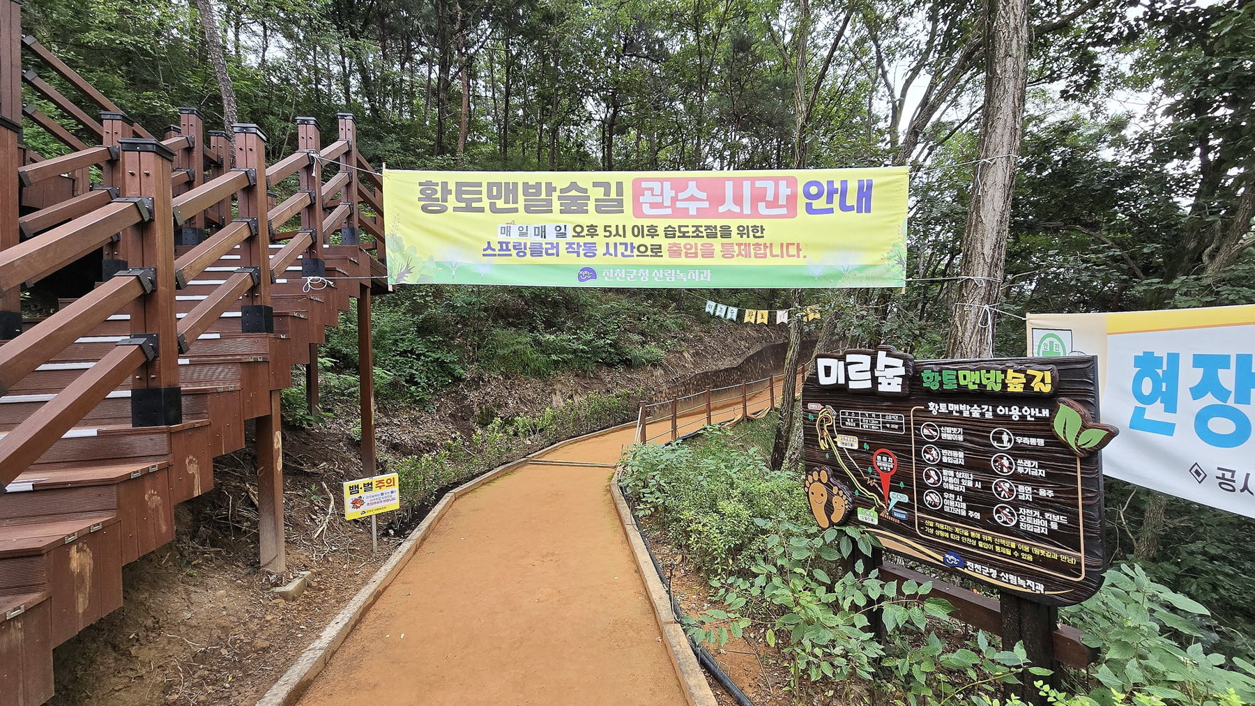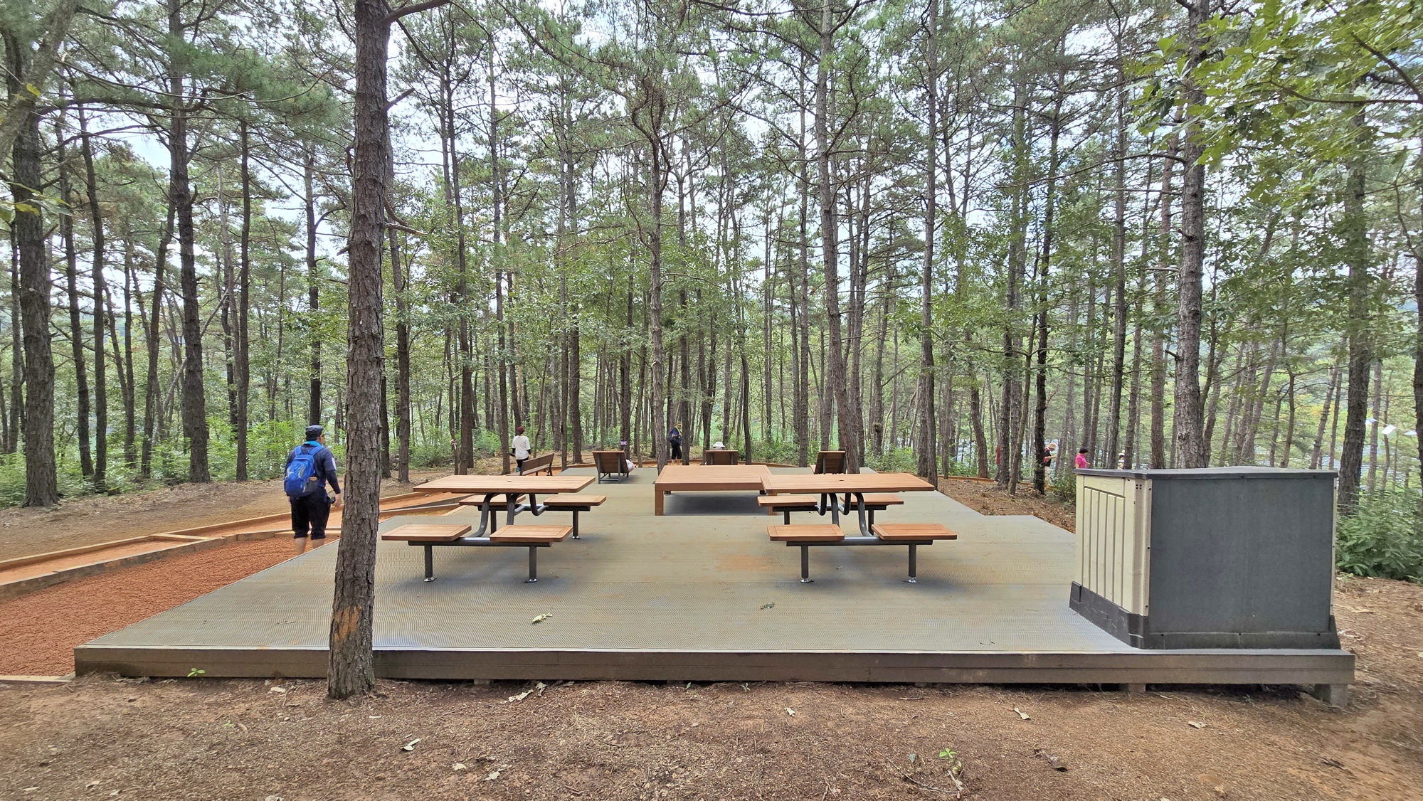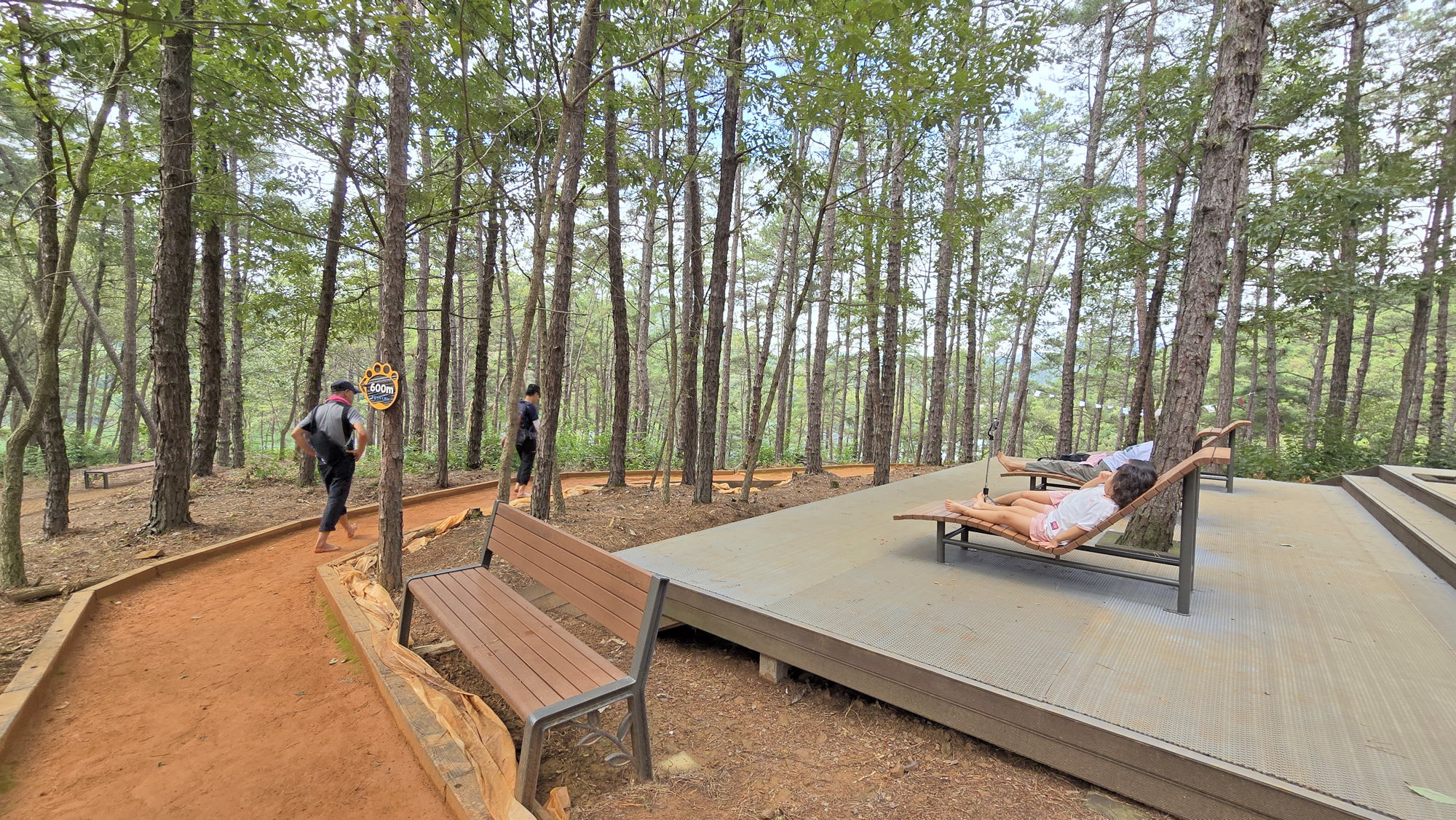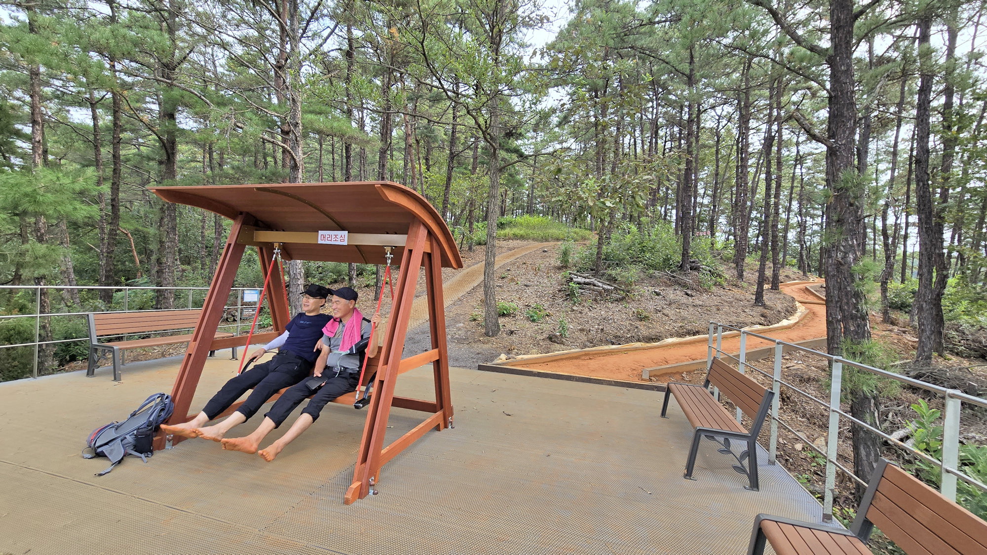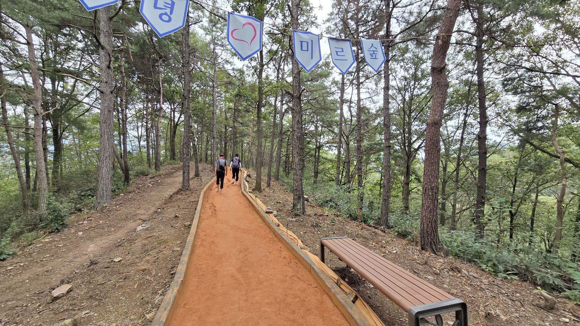 ▼ 정자를 끼고 돌아 하산하여 황토맨발숲길 입구로