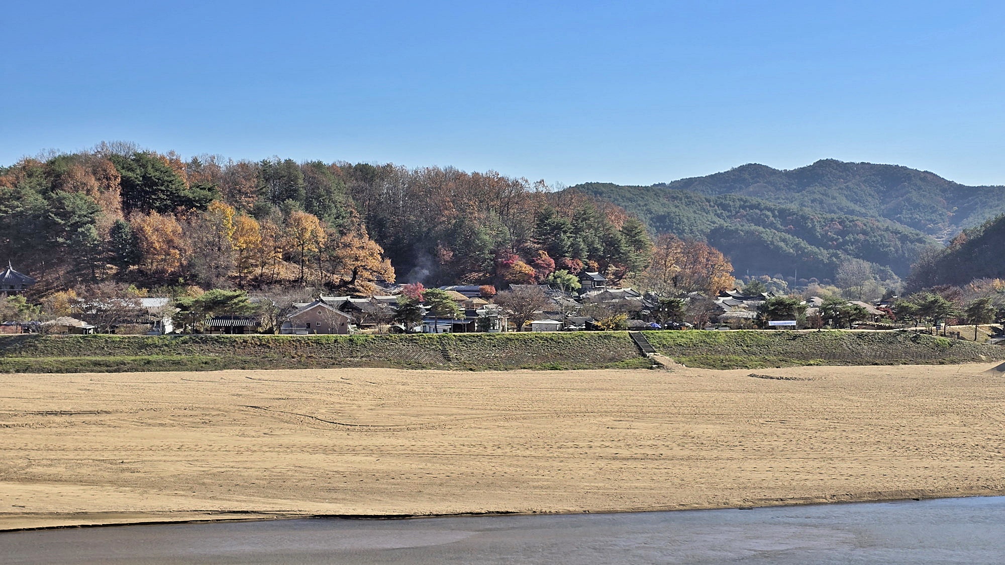 ▼ 내성천 건너편에서 바라본 무섬마을